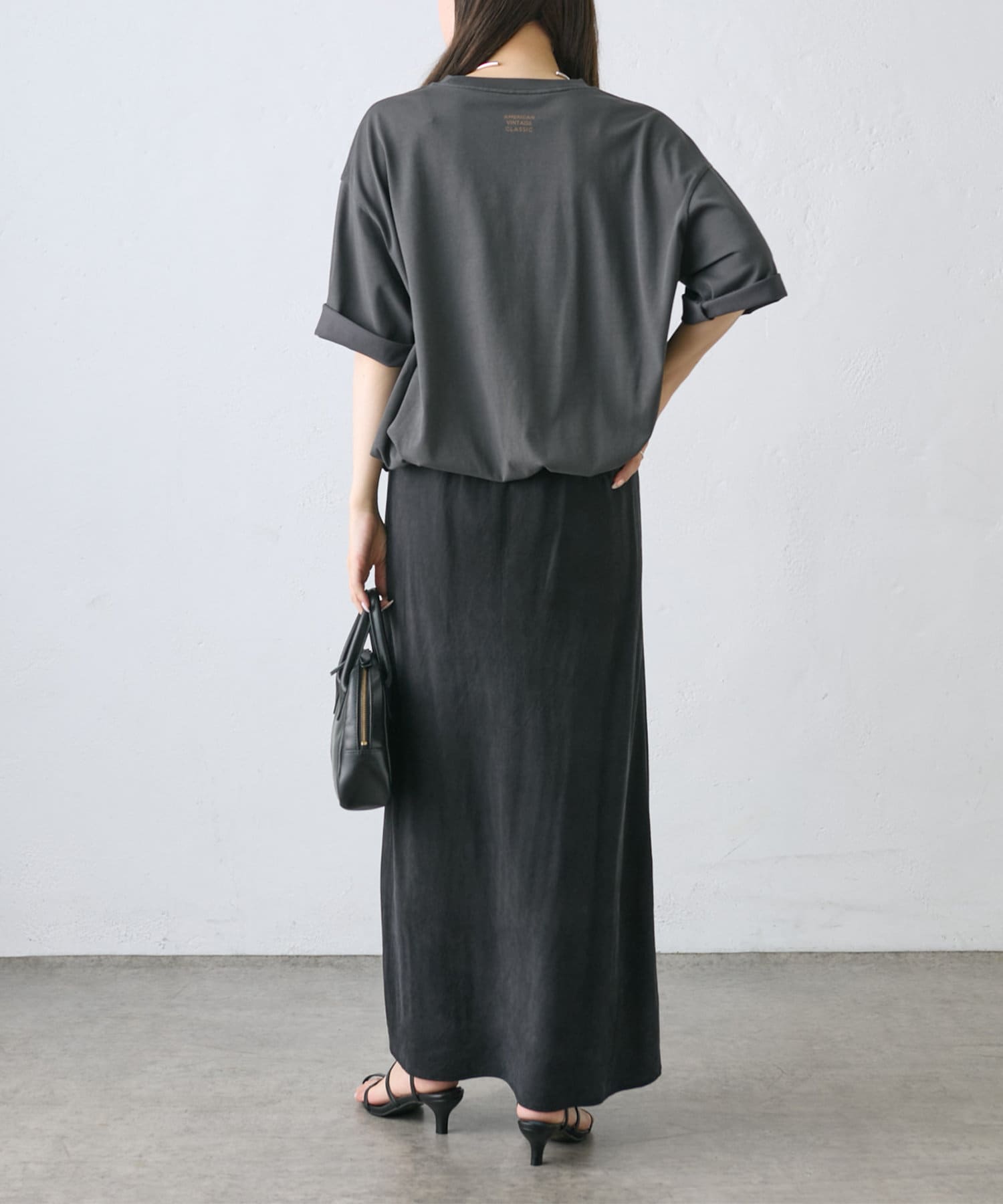 腰辺りまで着丈があるので、人気のナロースカートとも好相性。