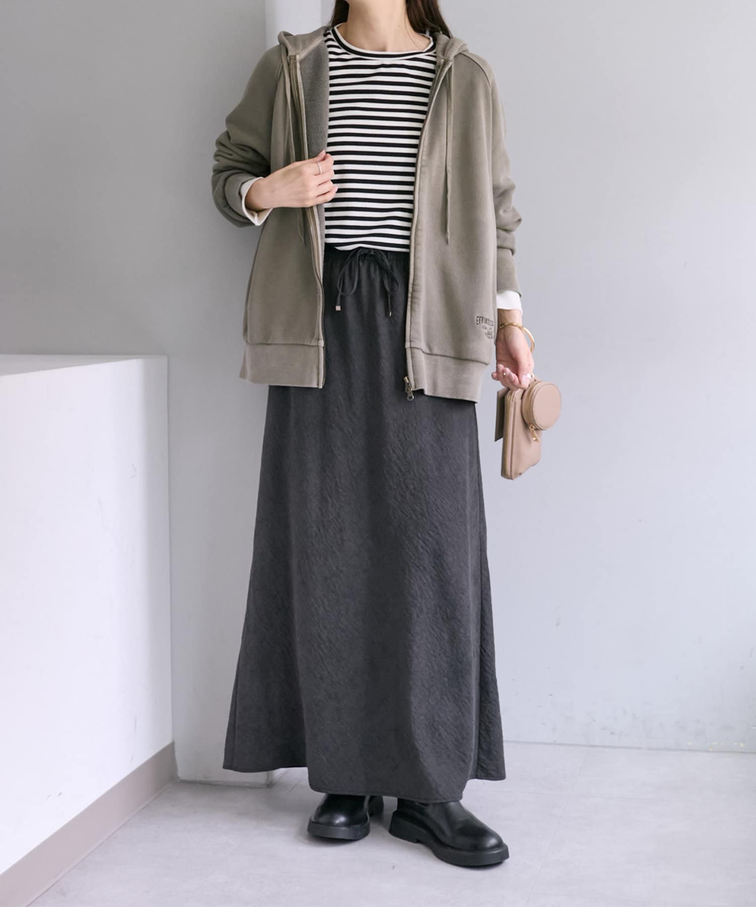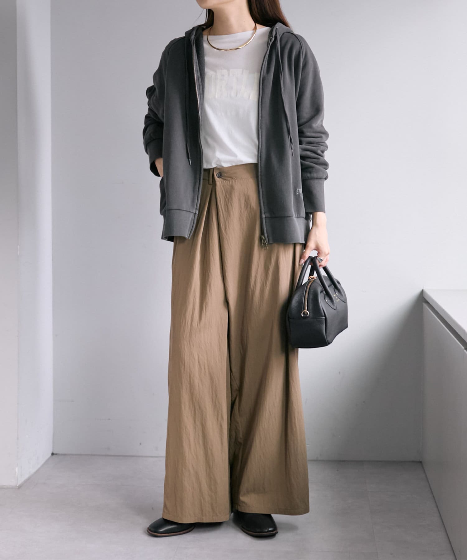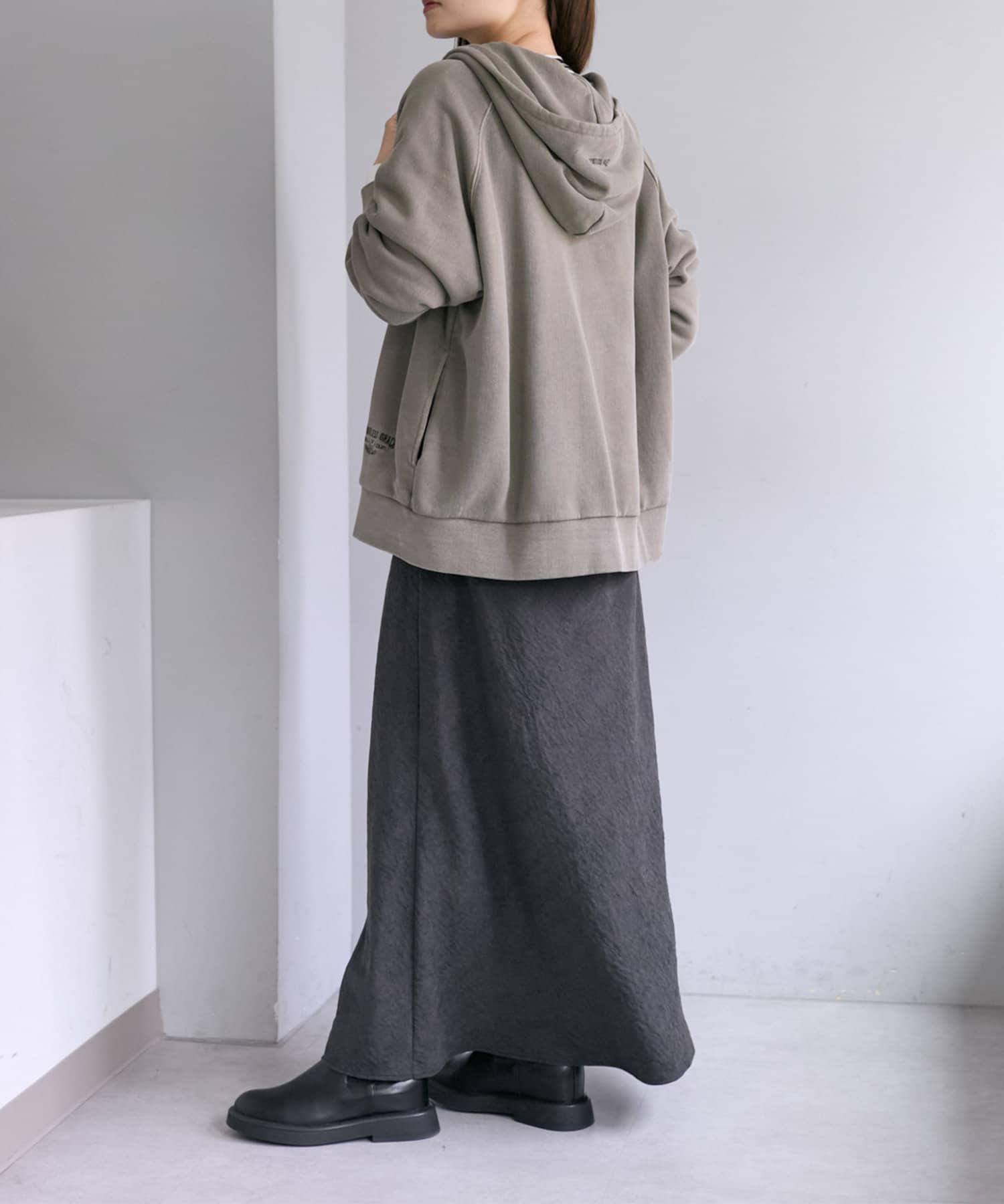 ふっくらとした4段裏毛ならではの素材感が引き立ち、こなれた雰囲気を演出。