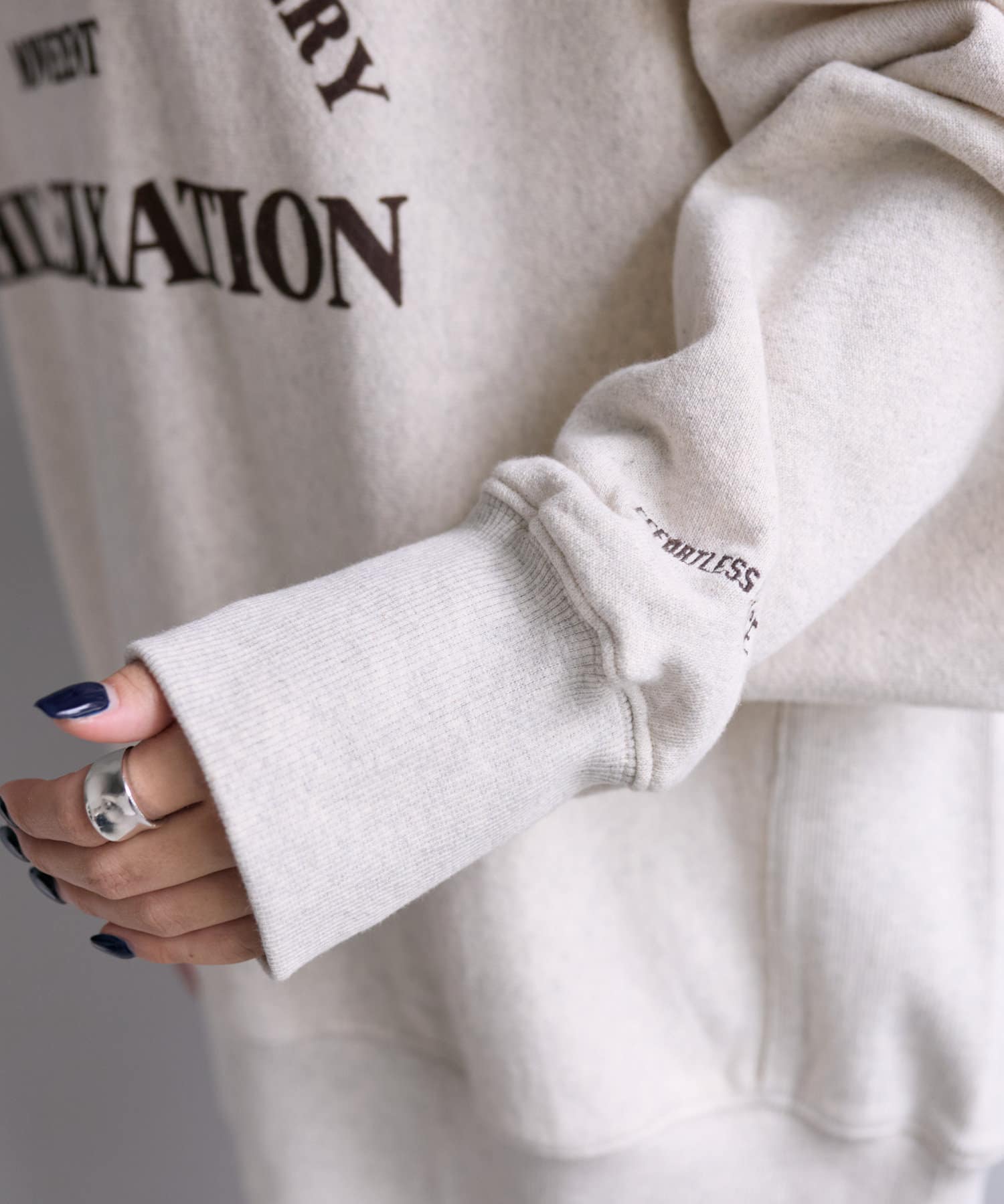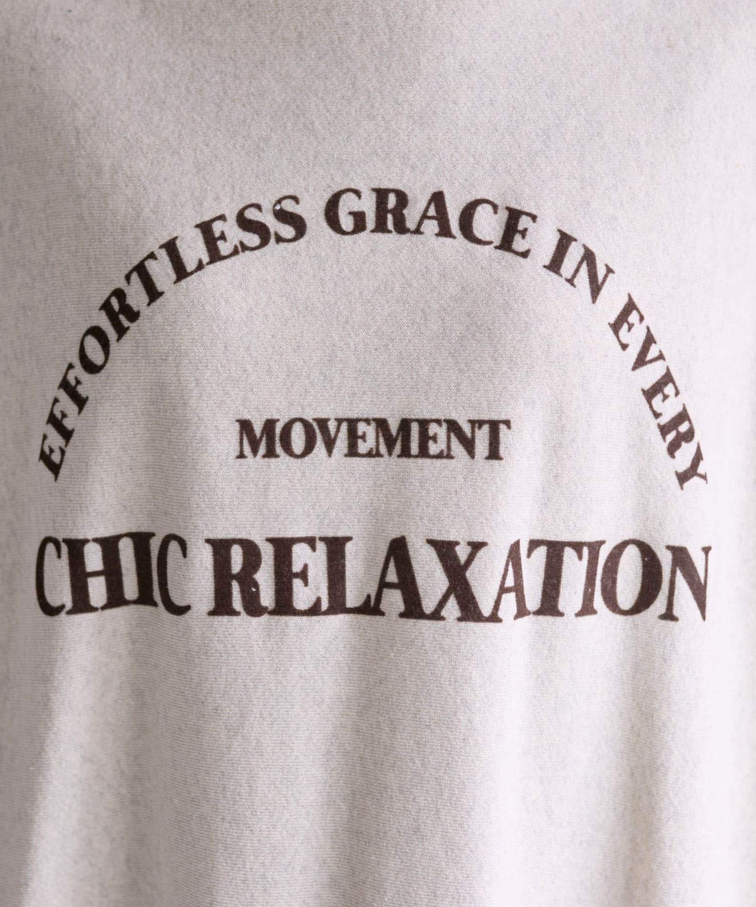フロントにはアーチ状のフロッキーロゴプリントを配置し、