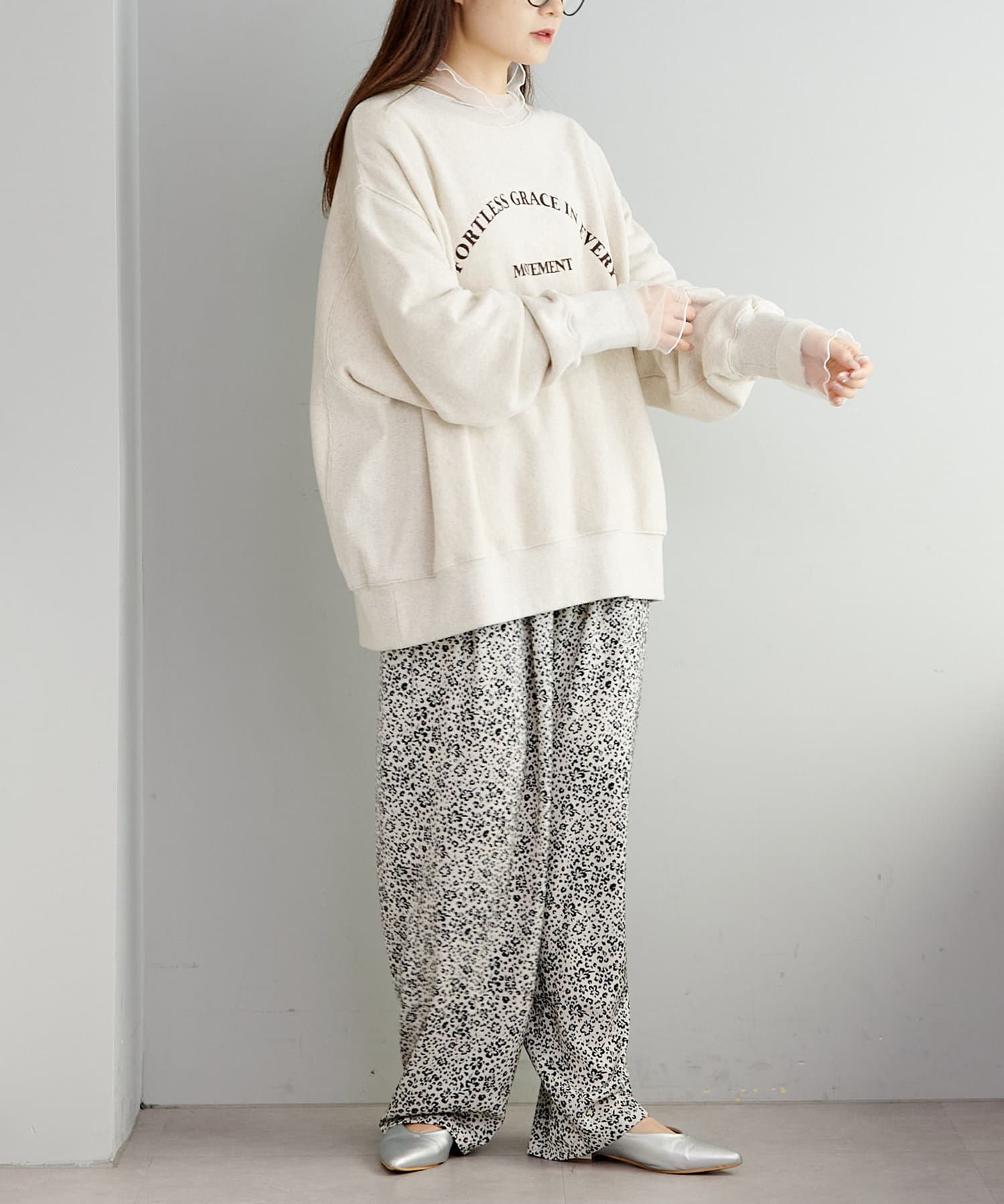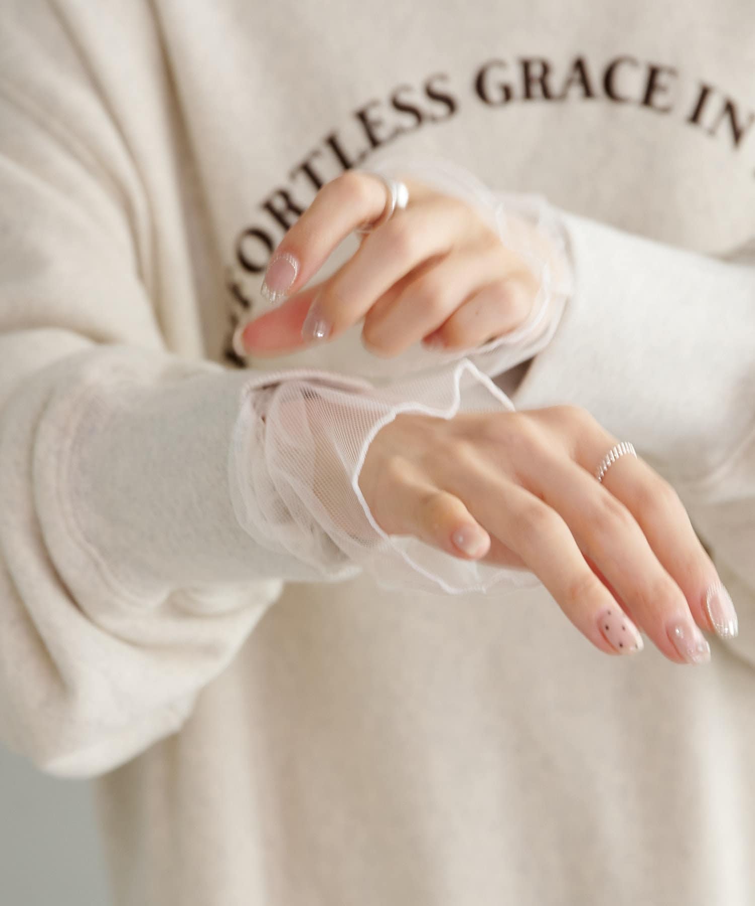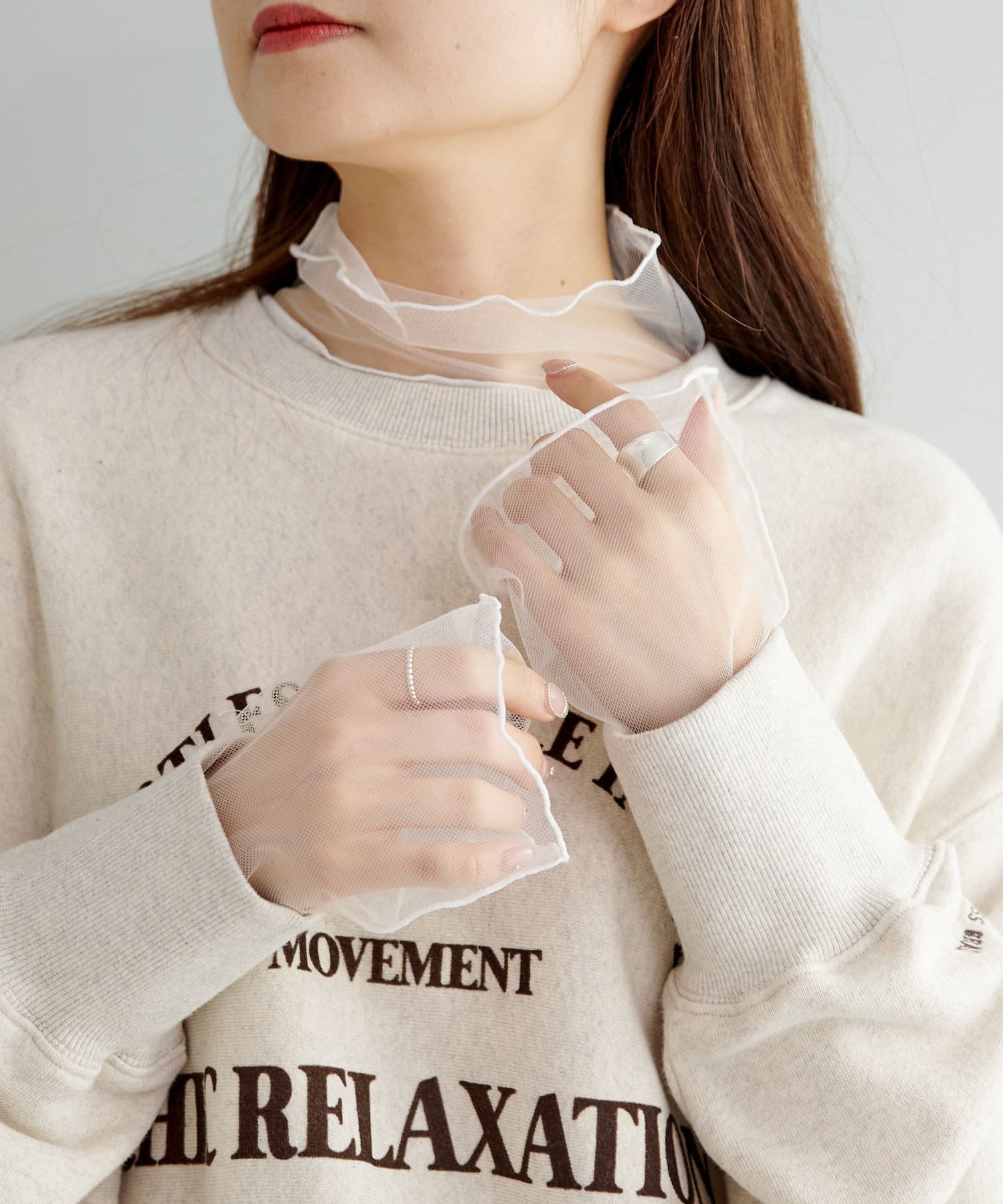 スウェットやニットを重ねれば首元、袖口からチュールが覗き、コーデを華やかに仕上げてくれます。