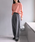 スラックスやスカートなどカジュアル過ぎないボトムを合わせると一層こなれ感のあるスタイルに。