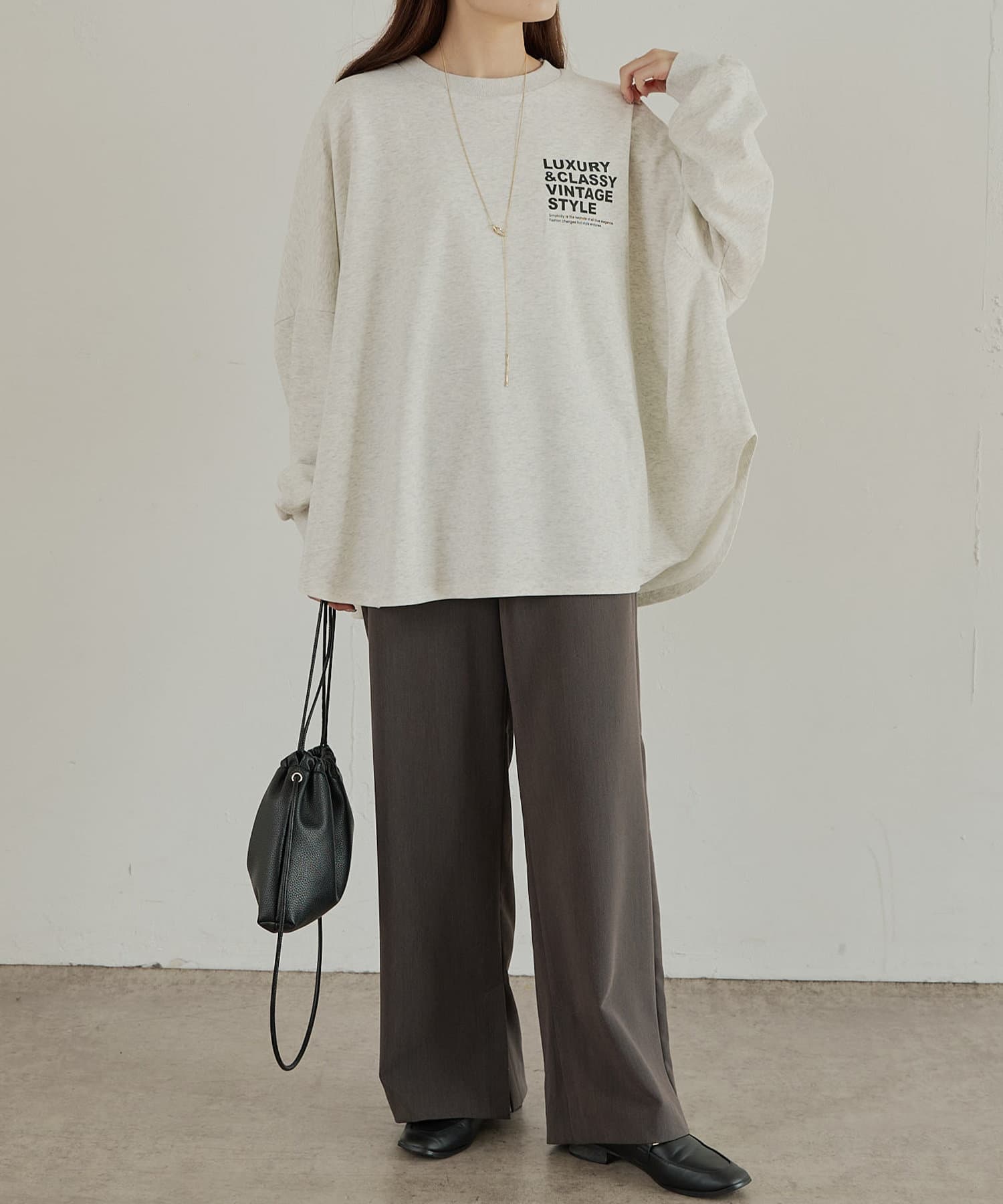 カジュアルに着こなせる、ゆったりめのロングスリーブTシャツ。