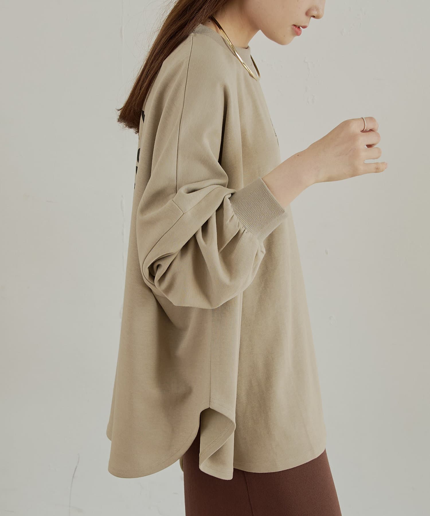 胸元と後ろのロゴプリントがアクセントになり1枚着はもちろん
