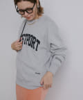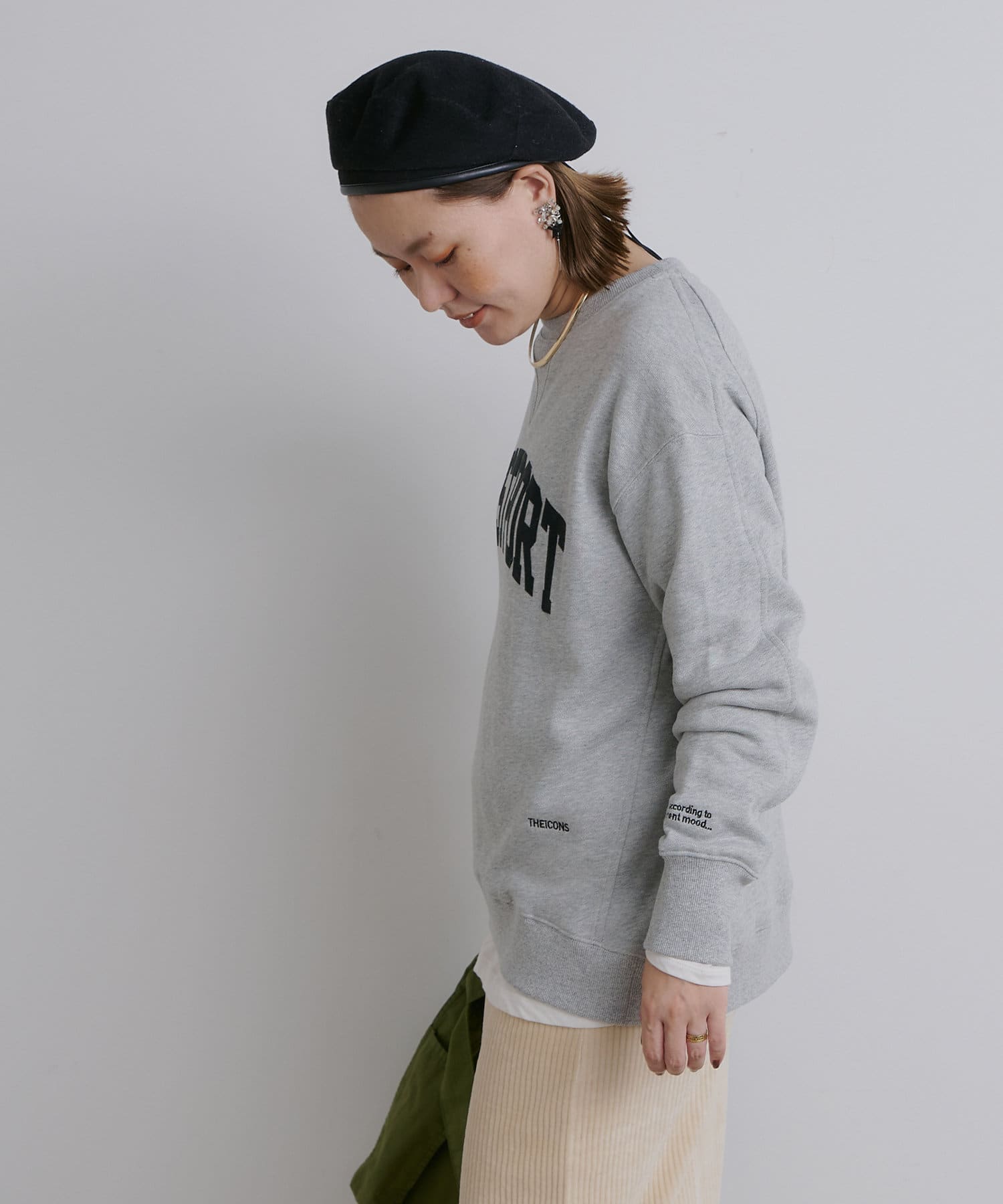 表面感のあるフロッキーロゴプリントがアクセントになった大人スウェット。