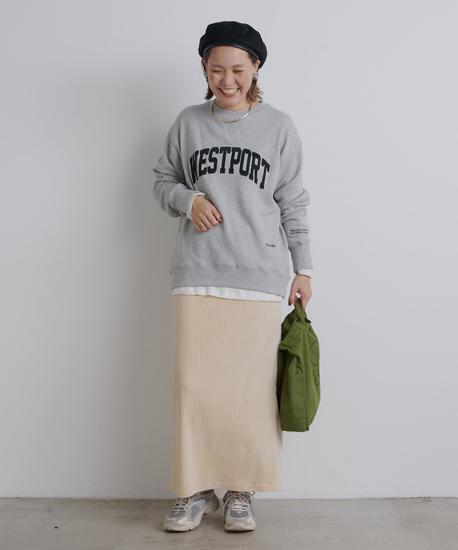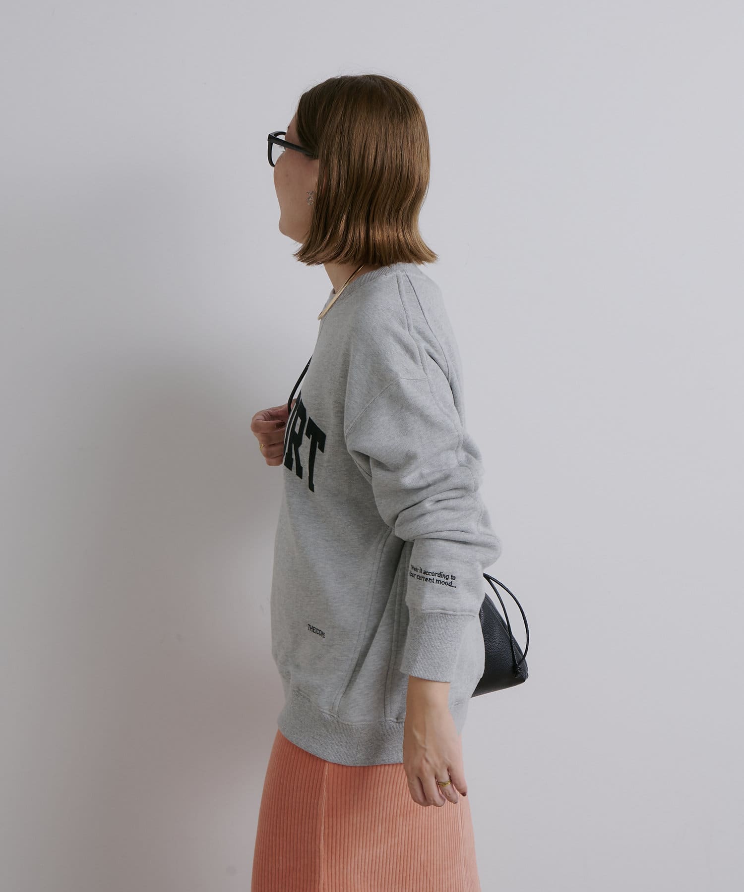 1枚で存在感を放つロゴスウェットはデニムやスラックス、ナロースカートにサッと合わせるだけで