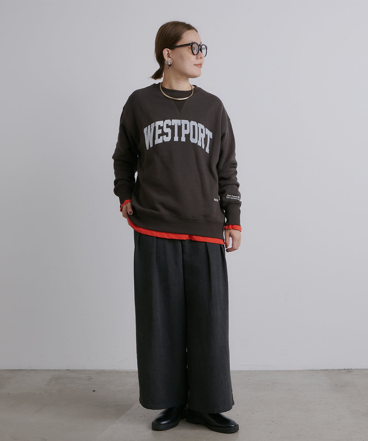 ゆるっとオーバーサイズ感ですが上からアウターを羽織ってもごわつきにくい柔らかな着心地です。