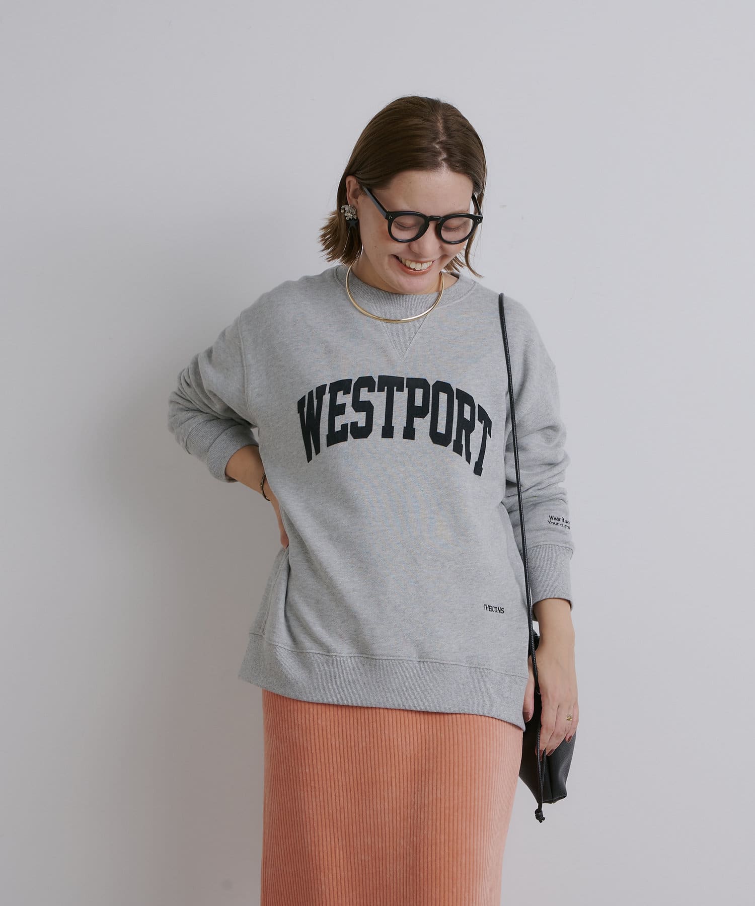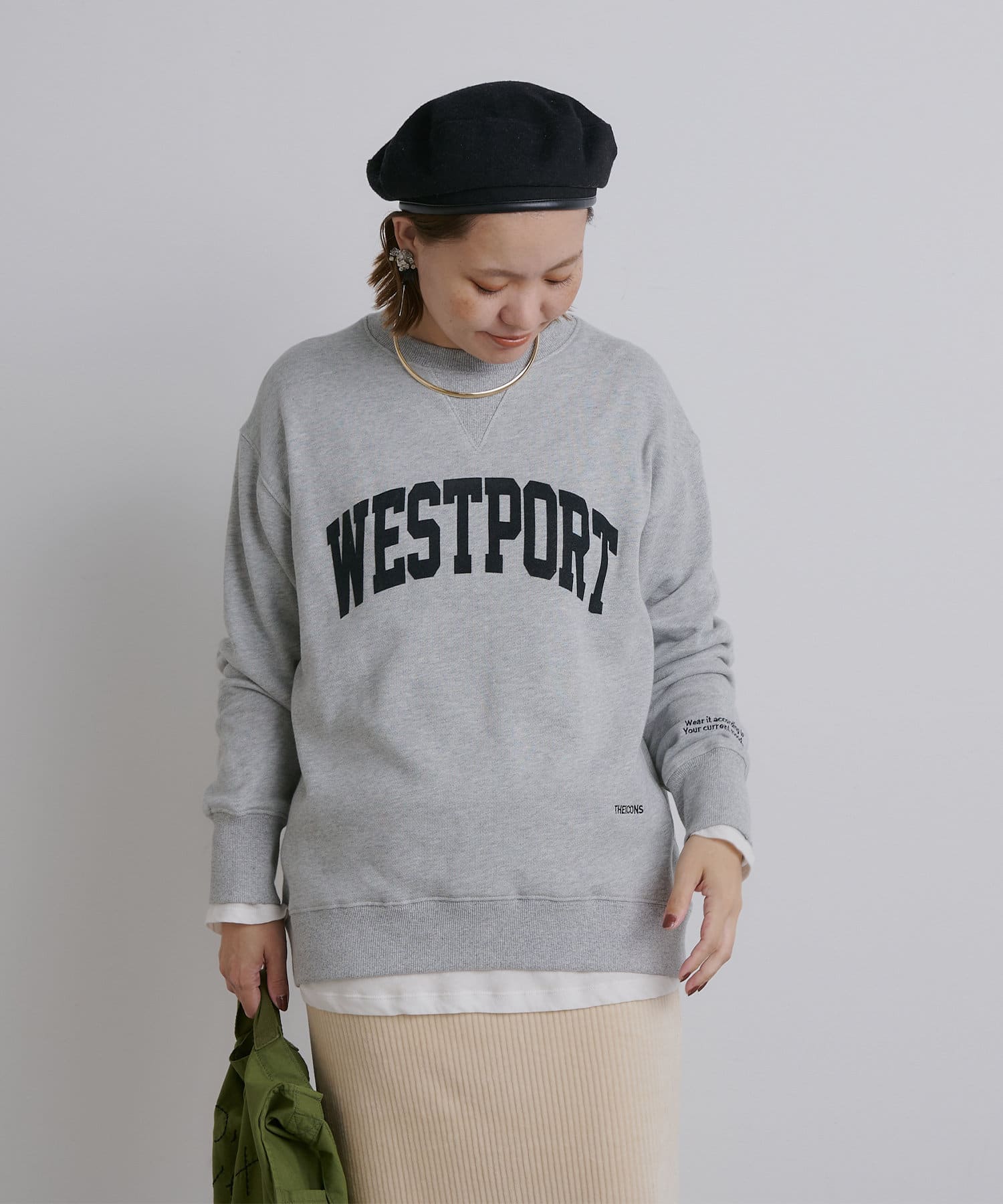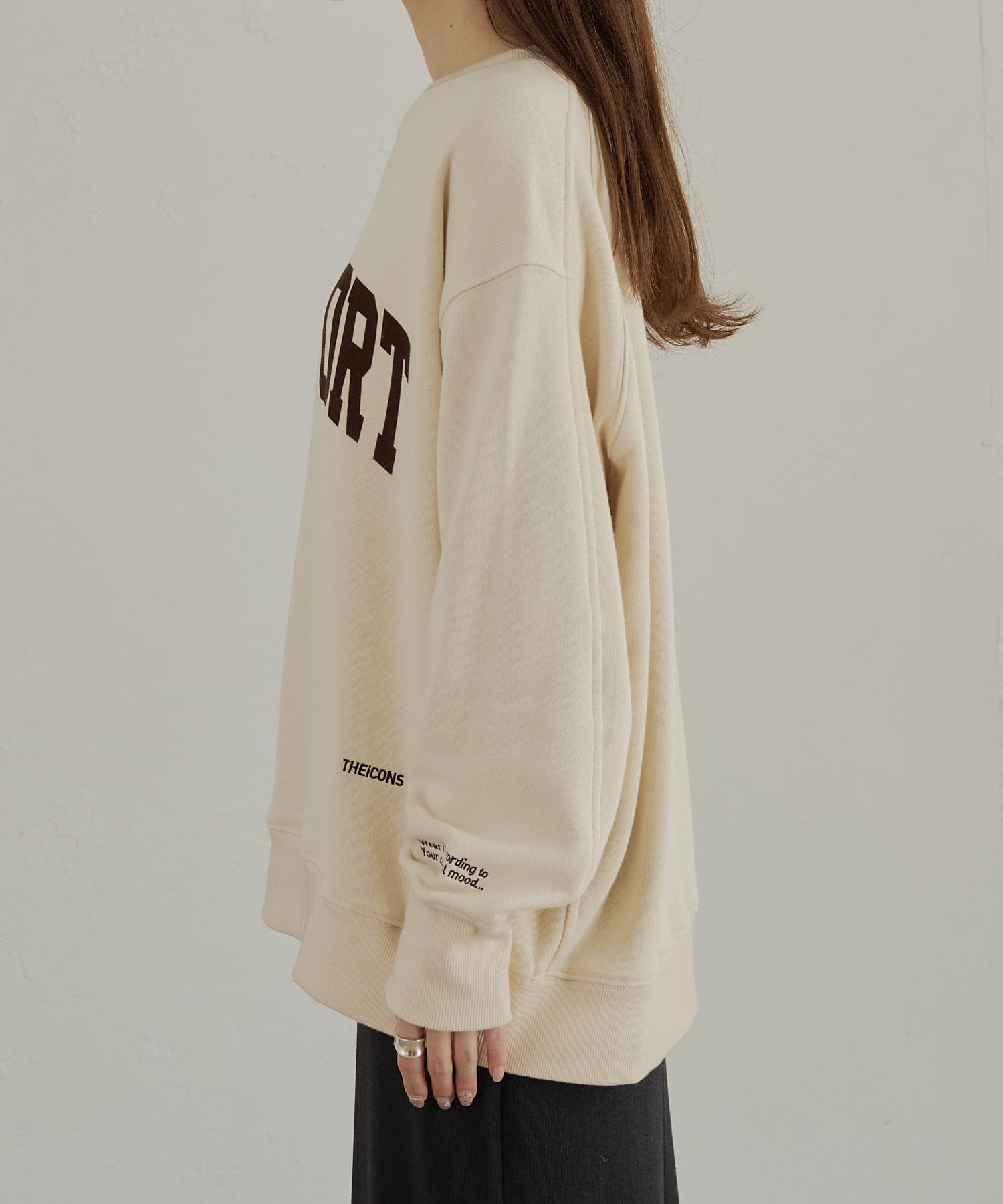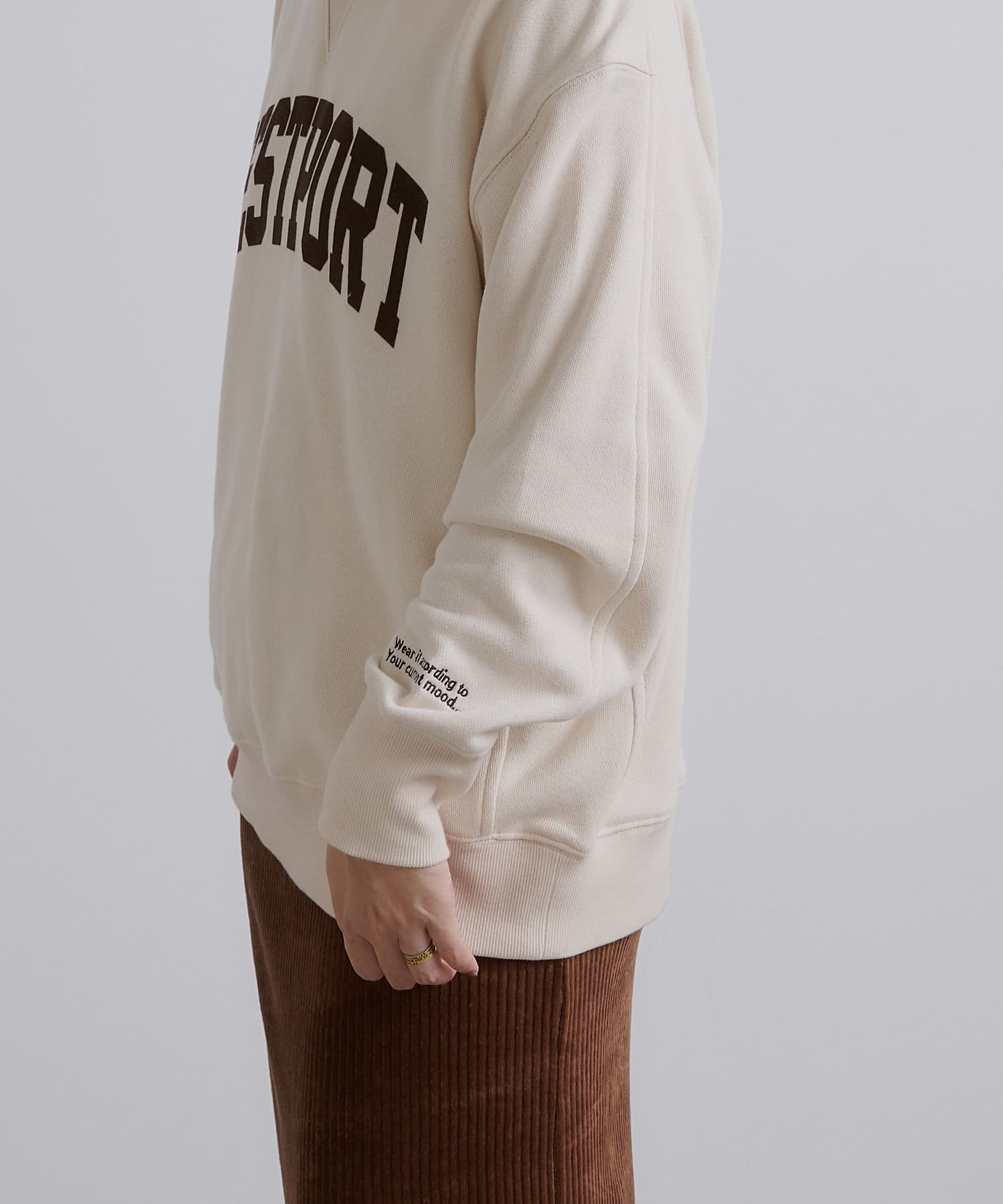 表面感のあるフロッキーロゴプリントがアクセントになった大人スウェット。