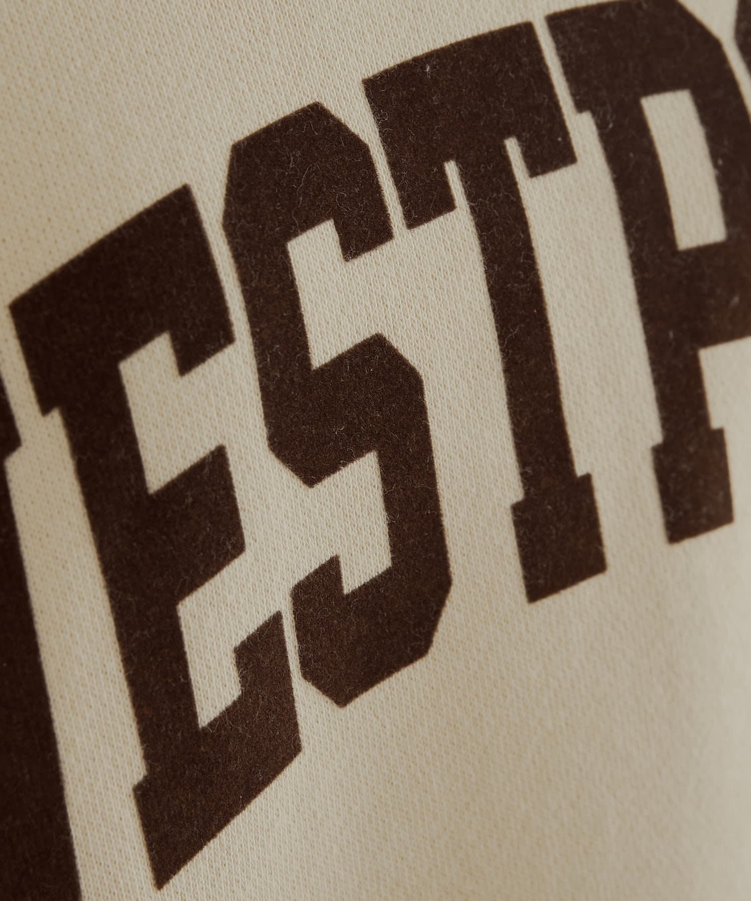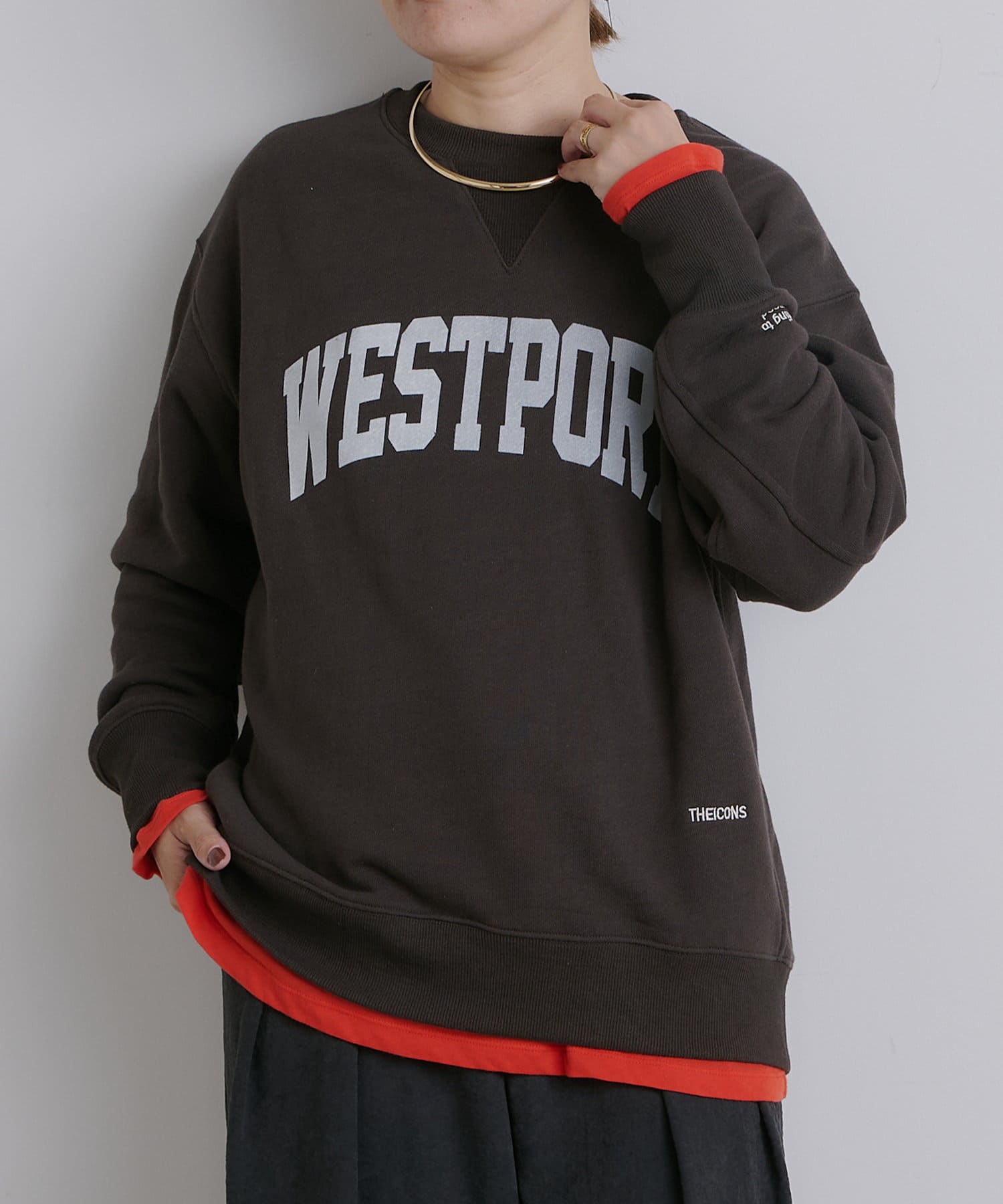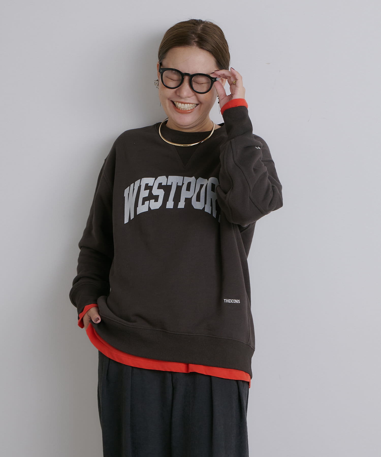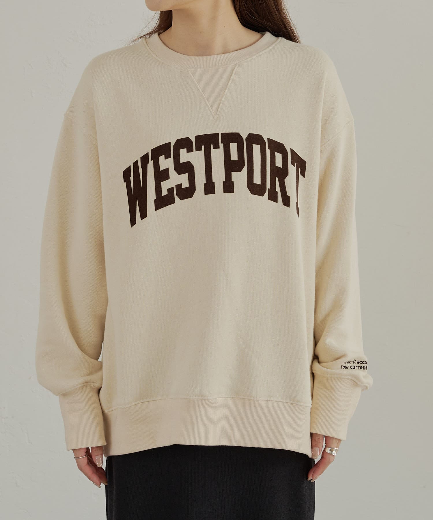 表面感のあるフロッキーロゴプリントがアクセントになった大人スウェット。