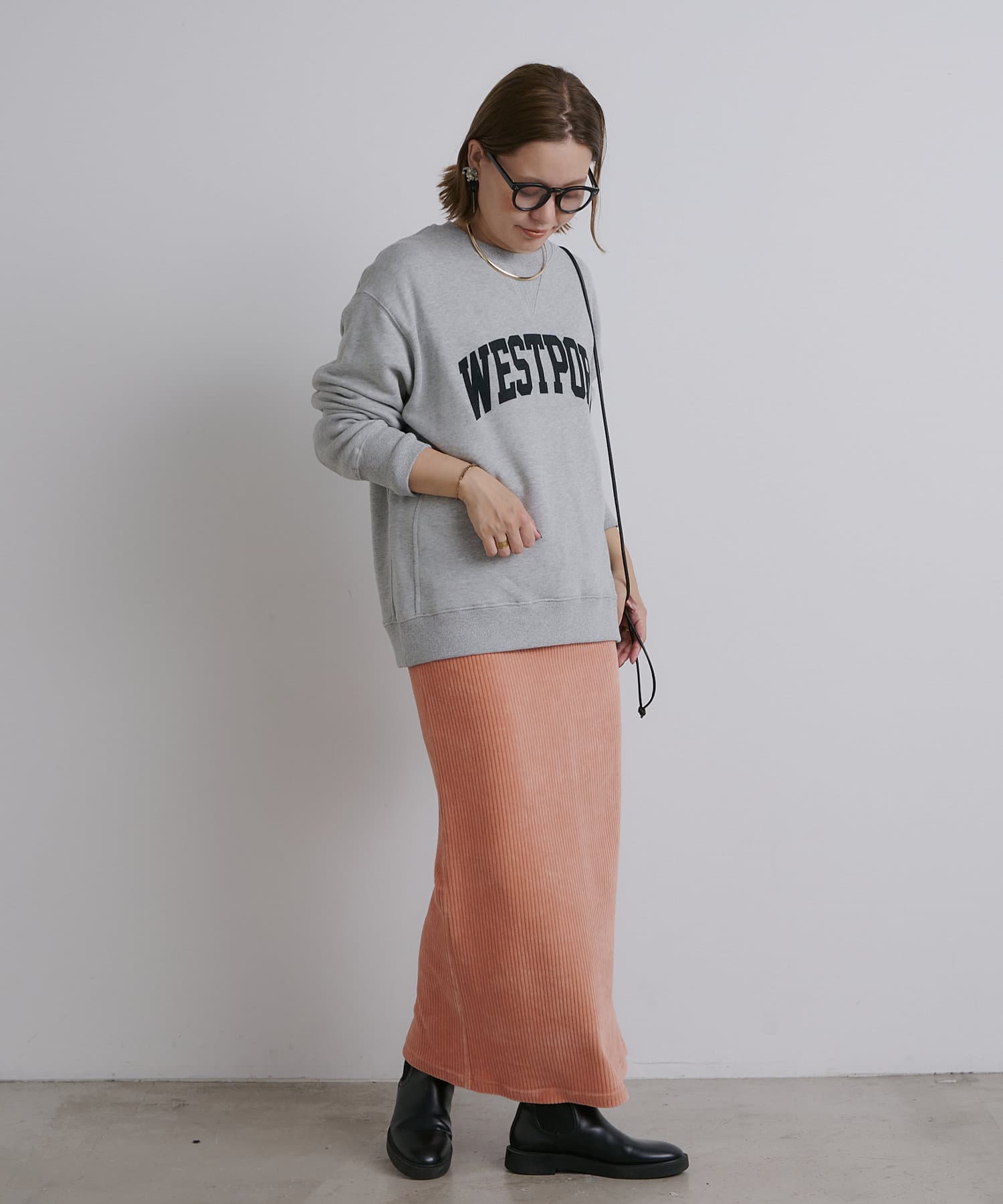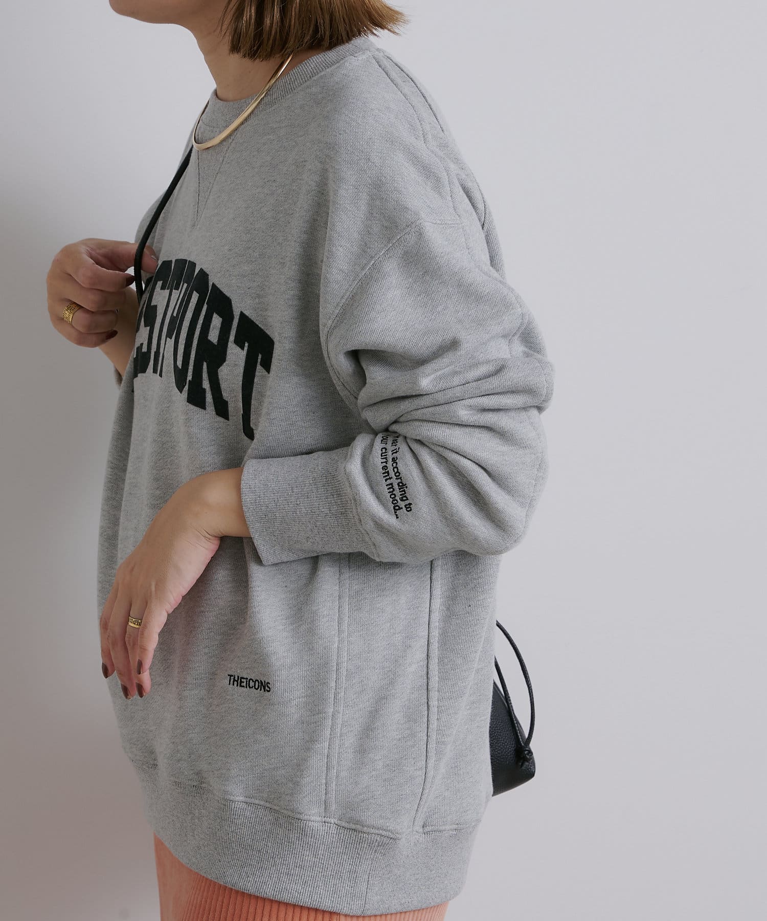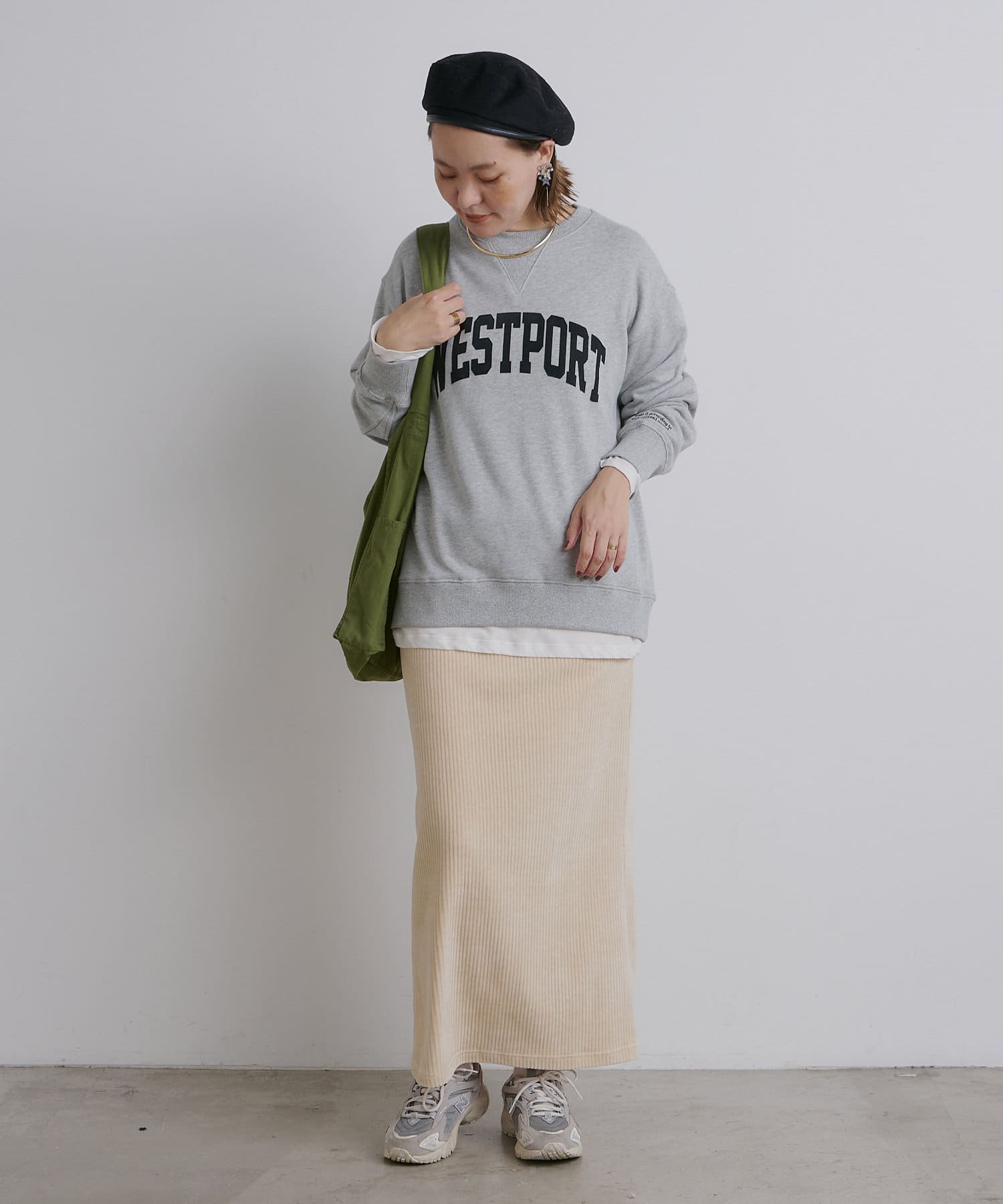 1枚で存在感を放つロゴスウェットはデニムやスラックス、ナロースカートにサッと合わせるだけで