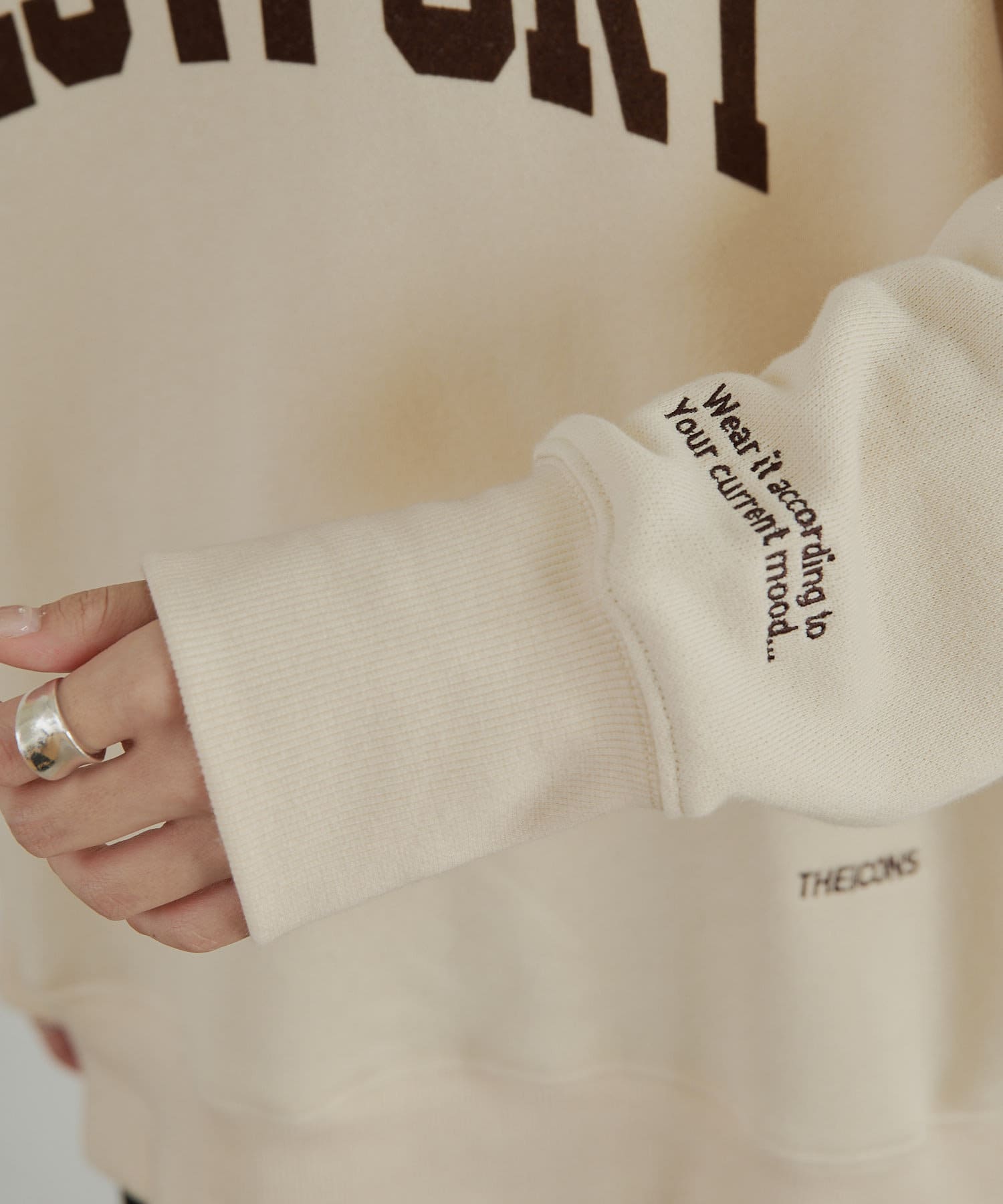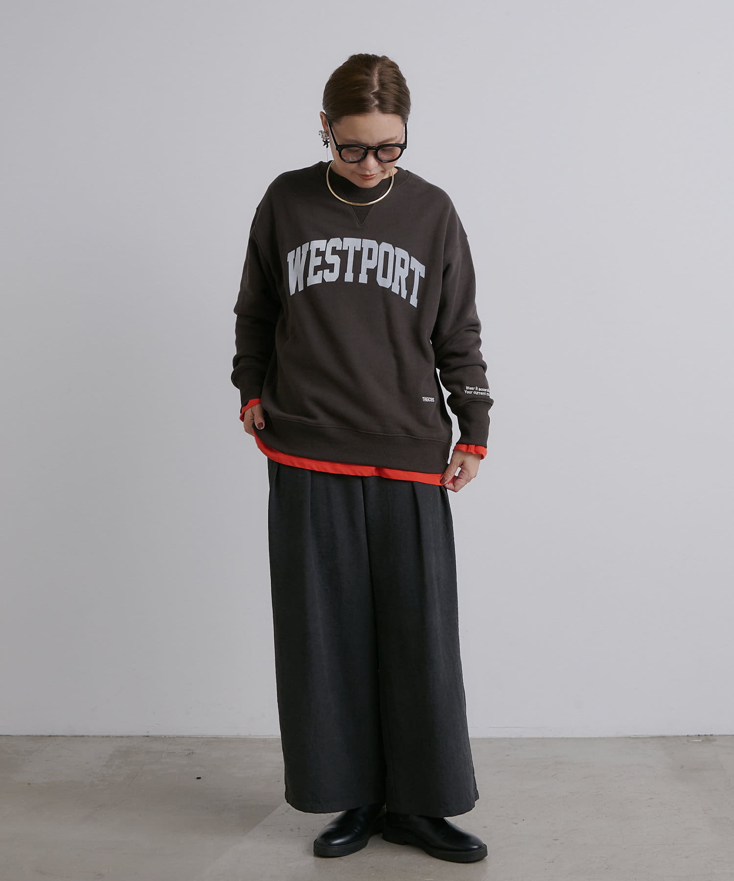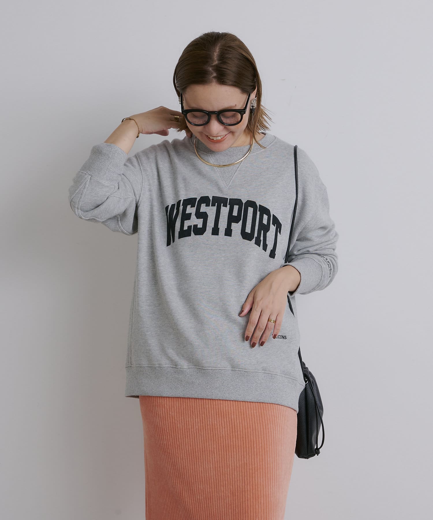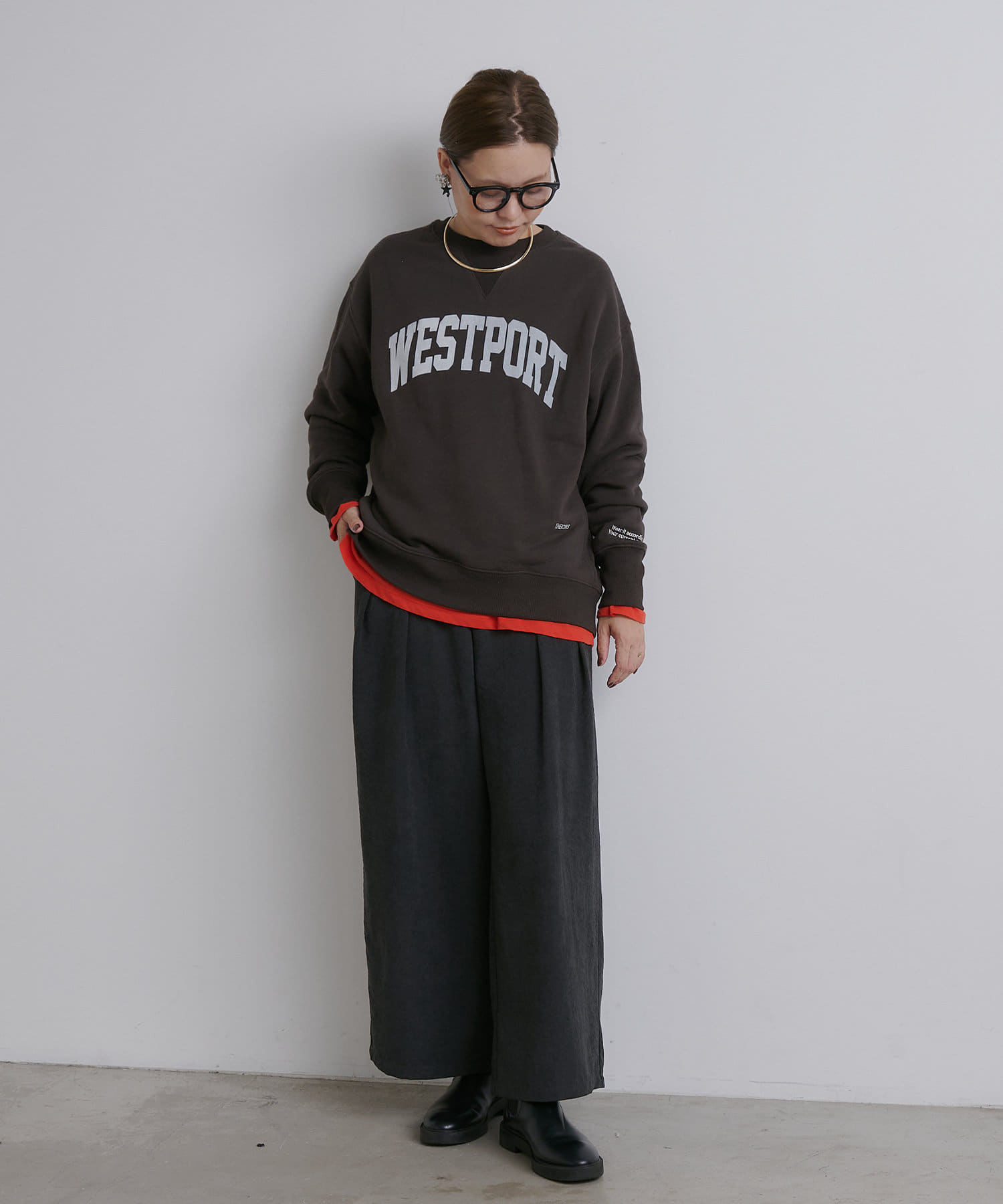 1枚で存在感を放つロゴスウェットはデニムやスラックス、ナロースカートにサッと合わせるだけで