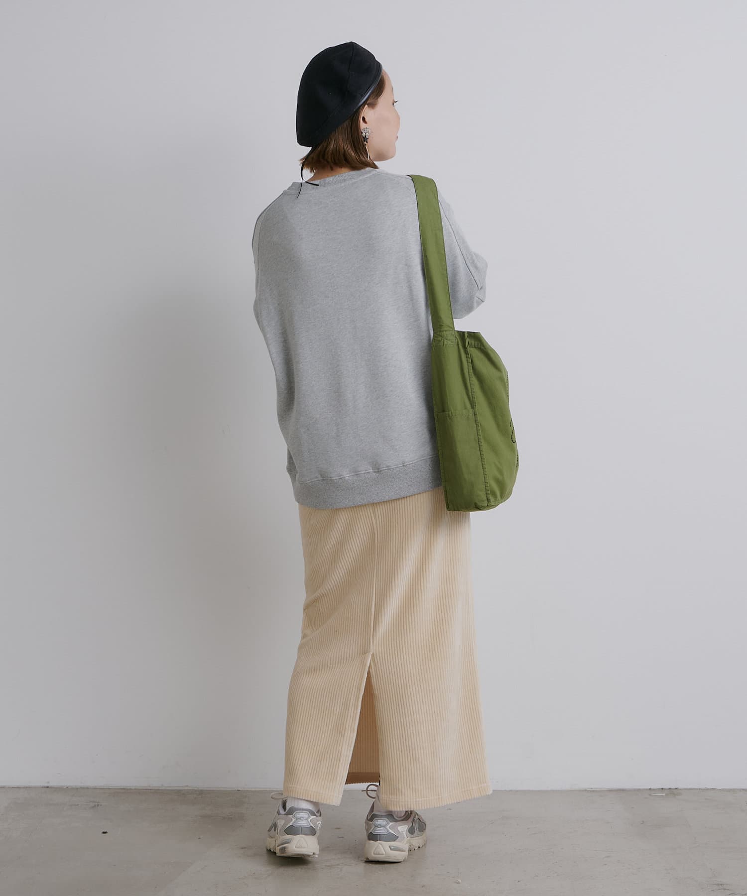 ゆるっとオーバーサイズ感ですが上からアウターを羽織ってもごわつきにくい柔らかな着心地です。