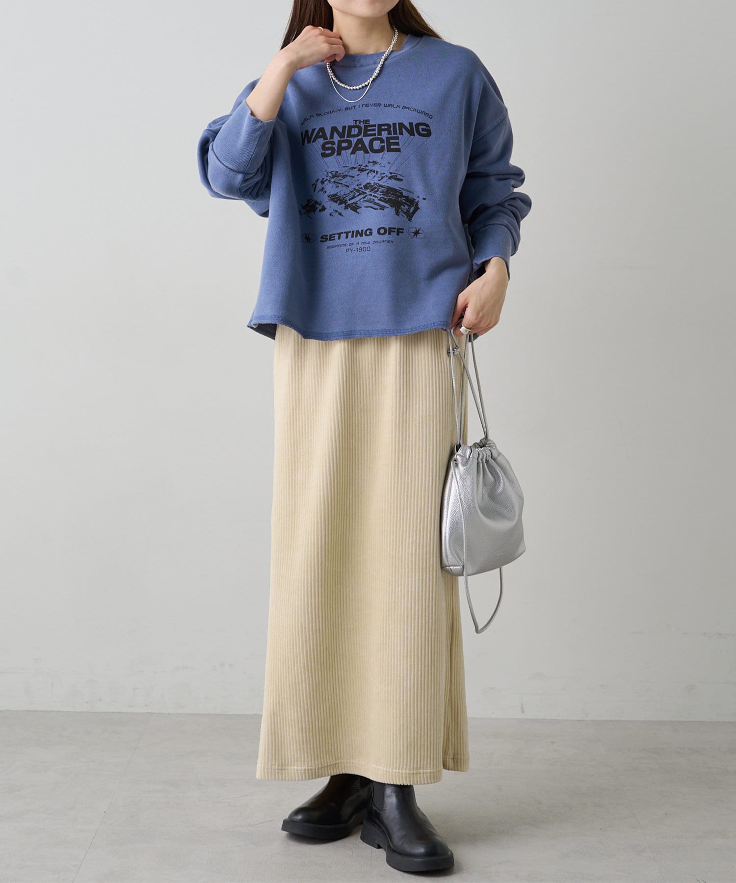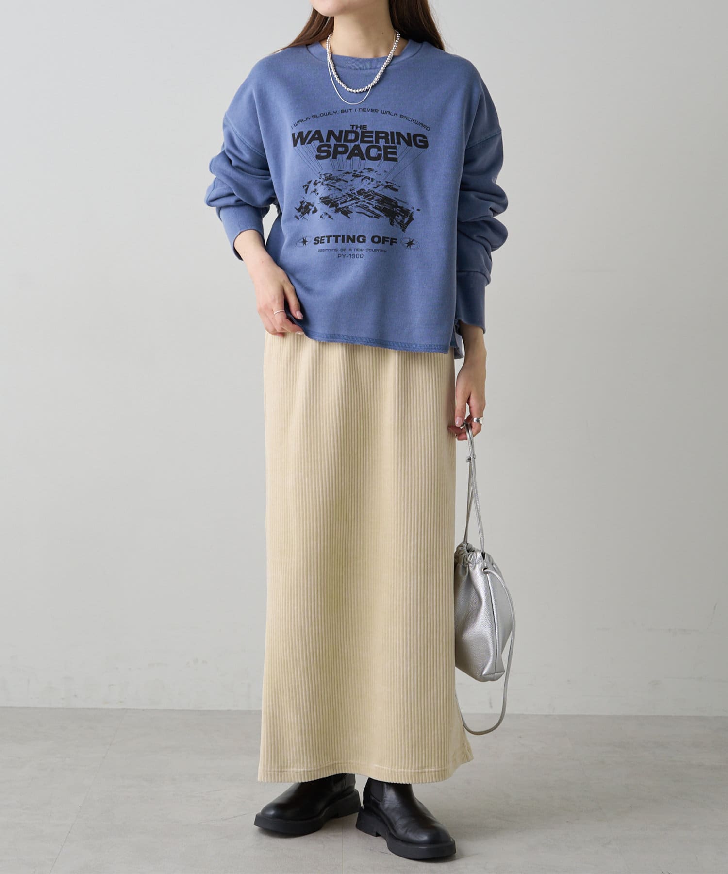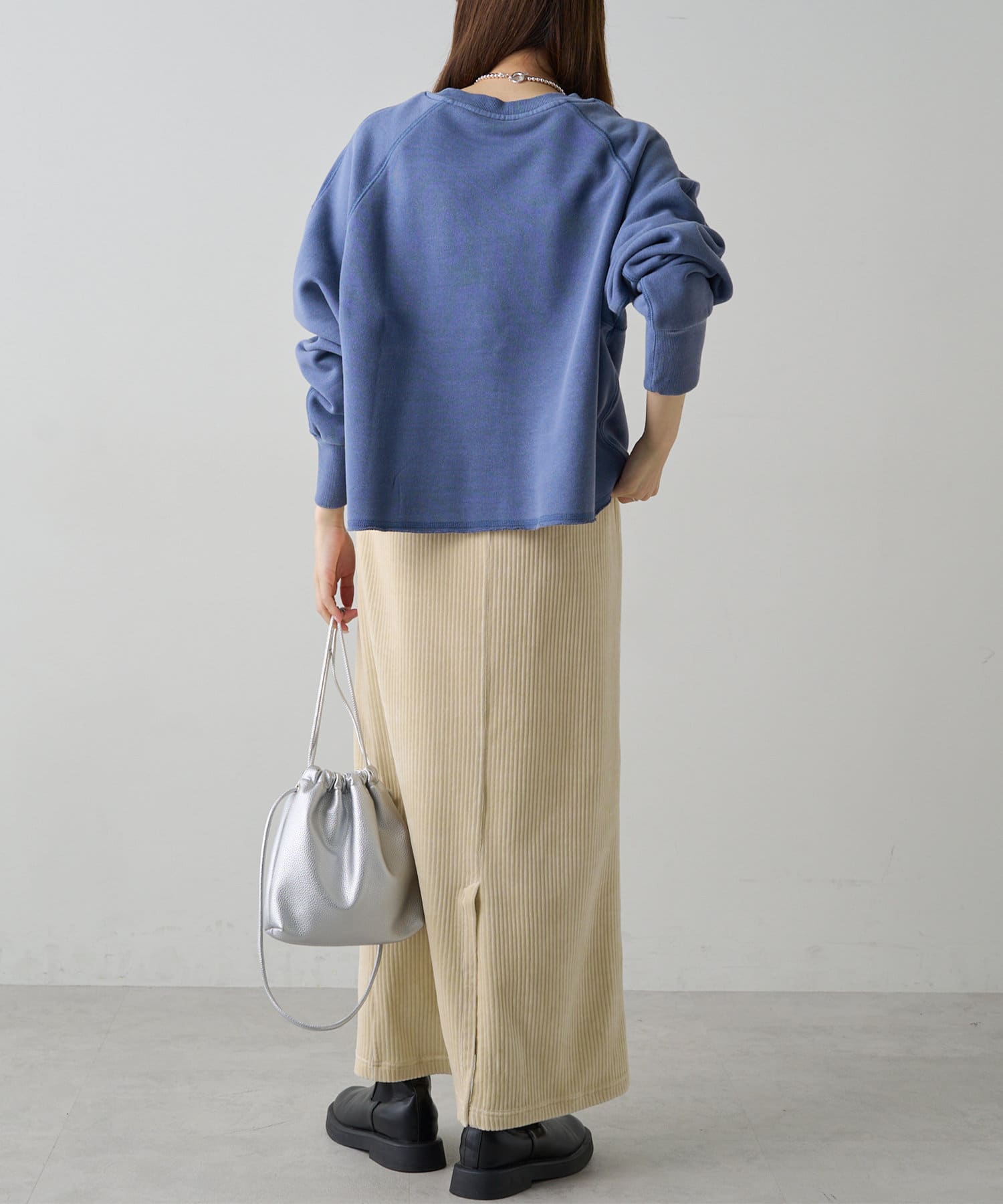 着用感:ゆったりオーバーサイズでラフな着心地。タックインもしやすいのでボトムスに悩みません。