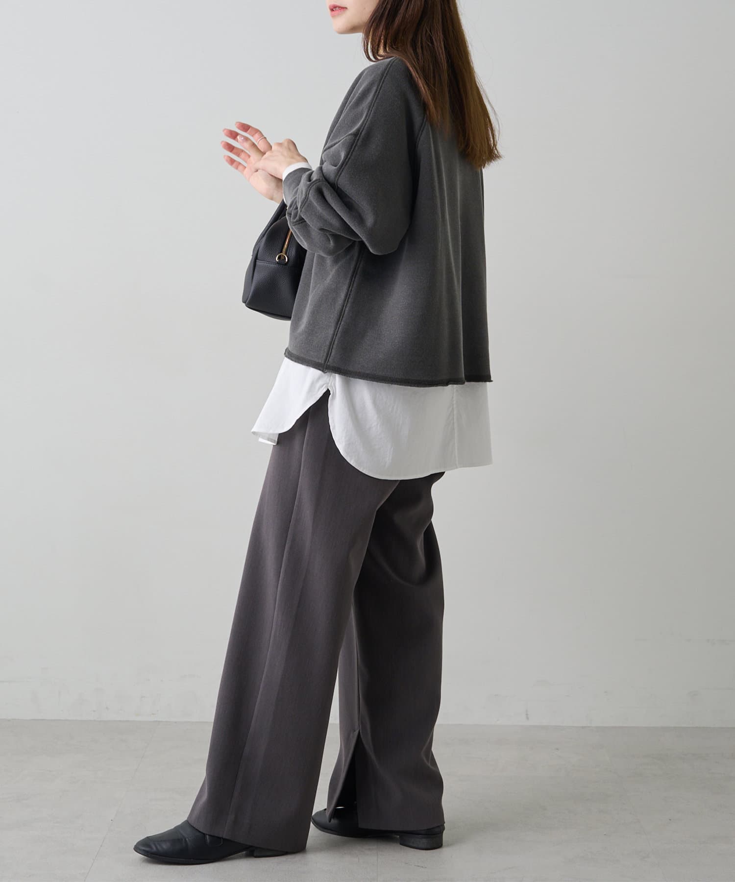 タックインもアウトも決まる程よい着丈で、デニムやスラックス、スカートとも相性抜群。