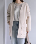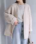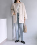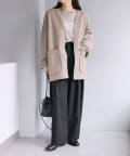 カラーは首周りをすっきりとした演出するVネックデザイン。ストールも巻きやすく、ハイネックニットとの相性も良いので、秋コーデを楽しみ尽くせるのが魅力。