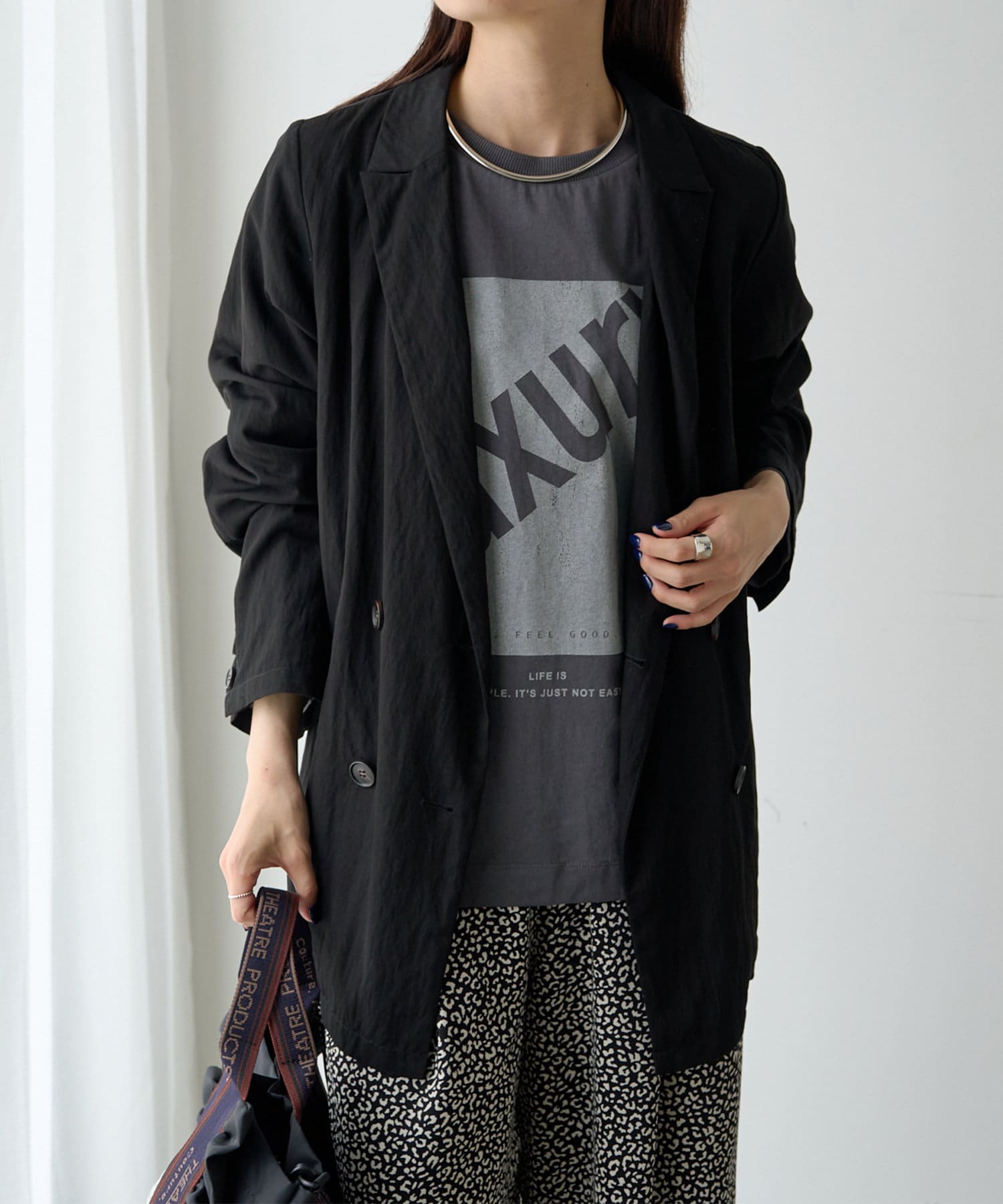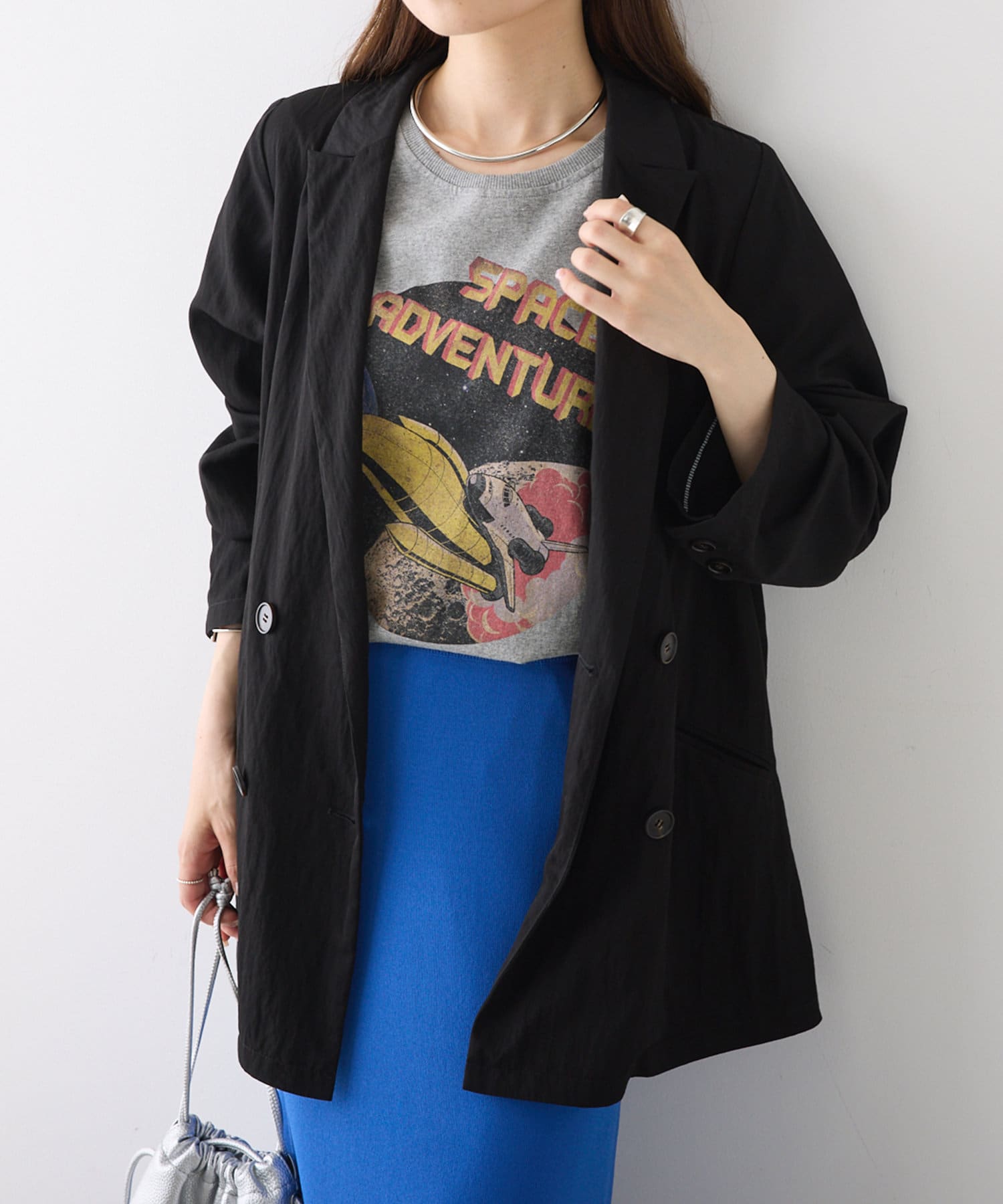 ボクシー過ぎないシルエットできれいめにも、カジュアルな単品ジャケットとしてもお召しいただけます。