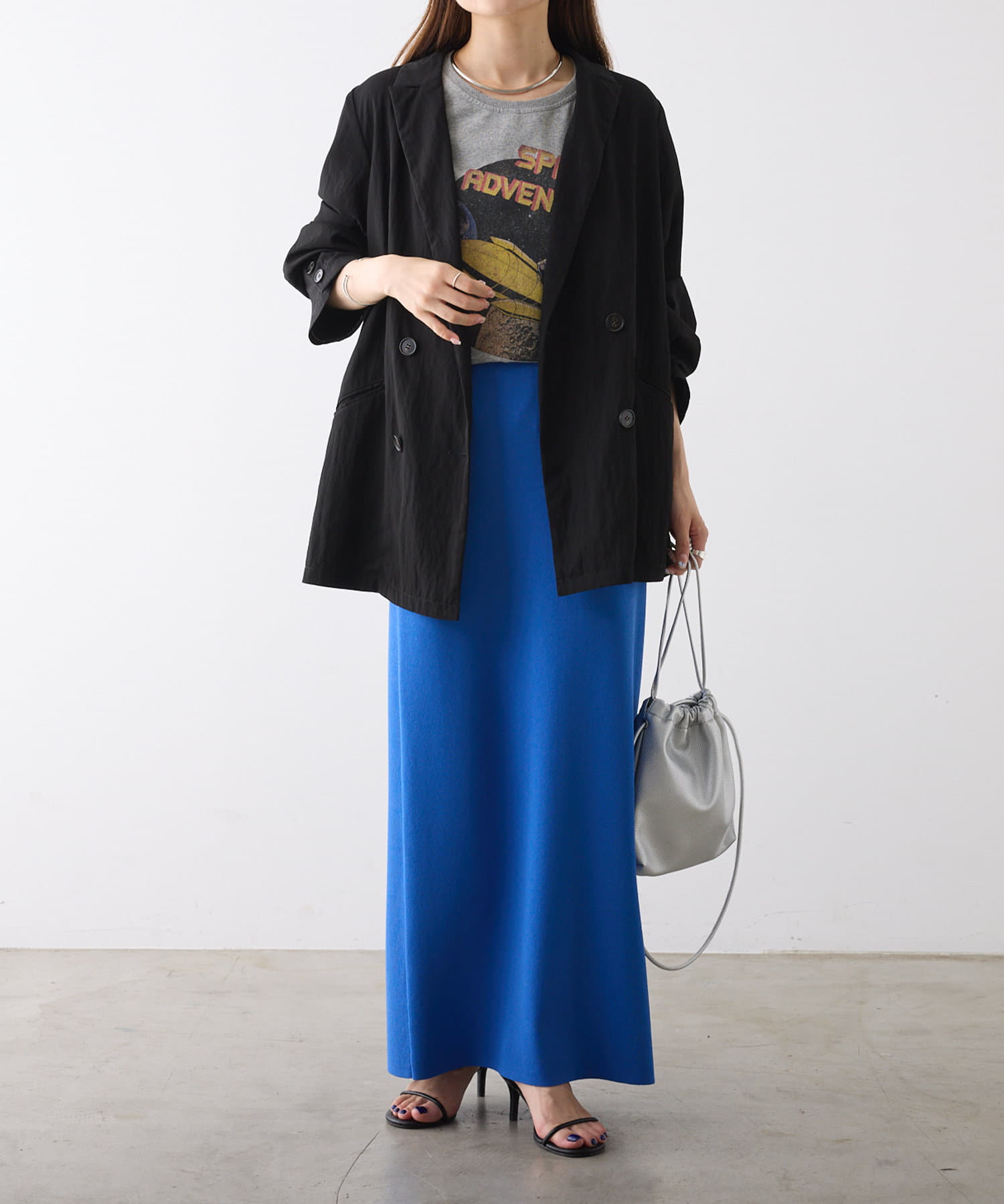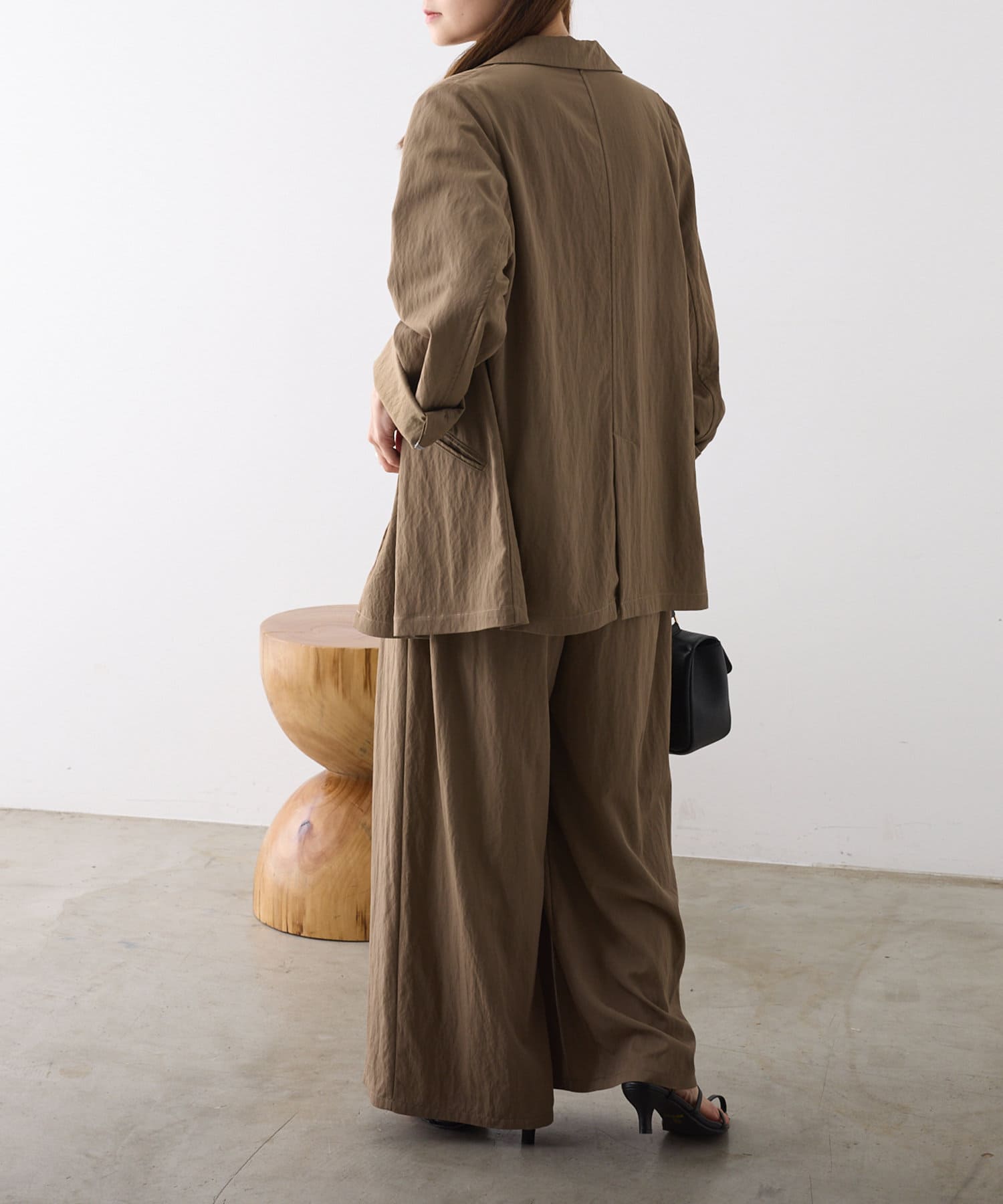 同素材のワイドパンツと合わせたセットアップでのスタイリングもおススメです。