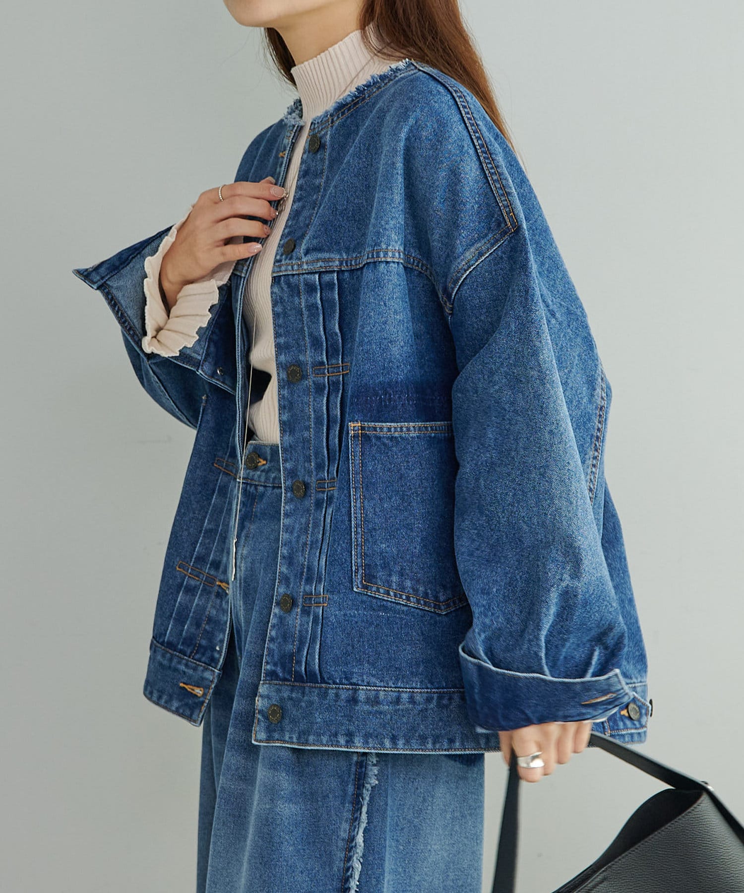 同シリーズのデニムパンツと合わせたセットアップコーデで