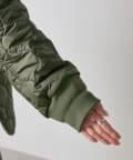 落ち着いた印象のあるマットなナイロン生地を使うことで上品さがプラスされ、大人な女性に似合うブルゾンに仕上がりました。