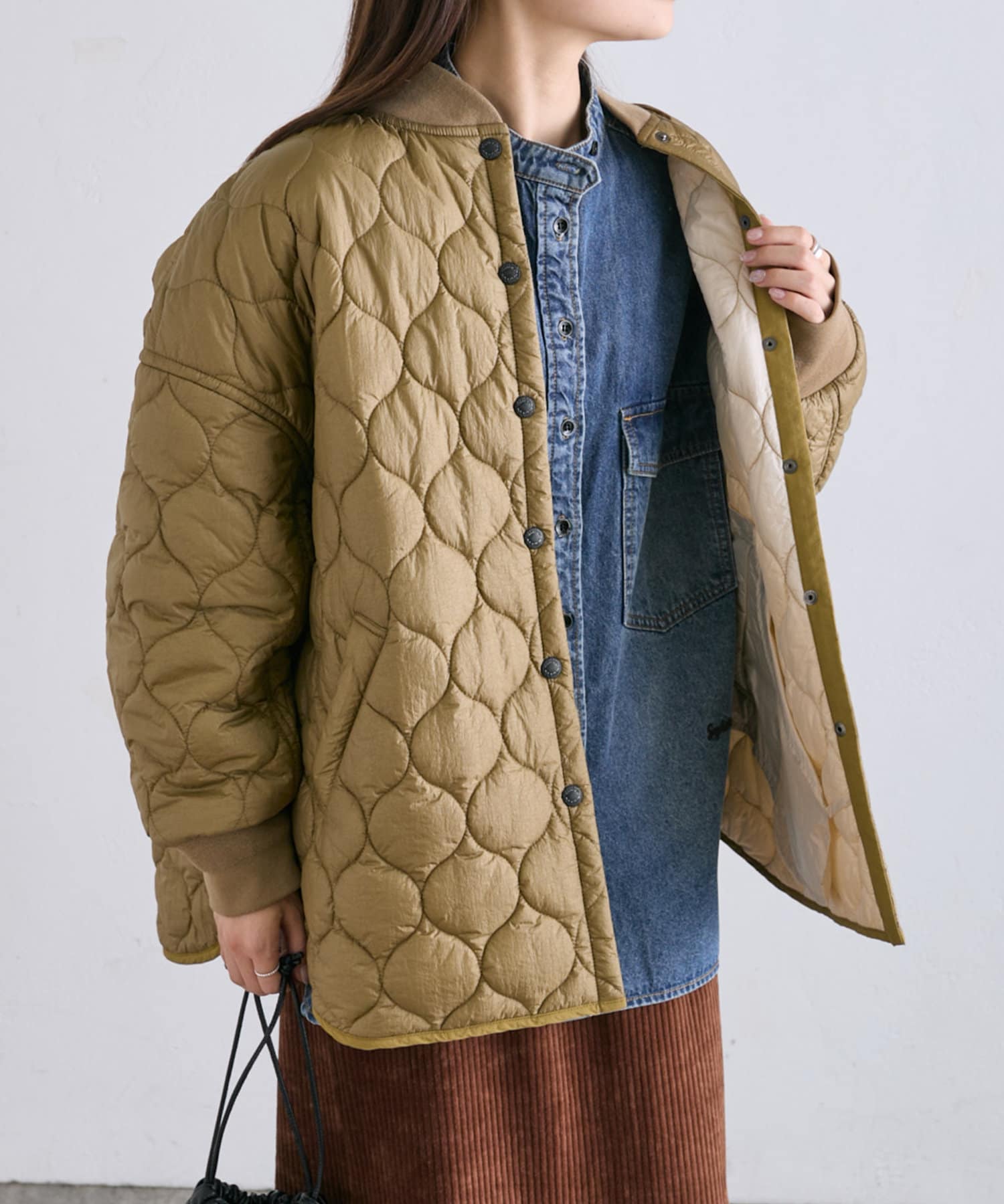 ビンテージ感のある波ラインのキルティングがコーデに映える一着。