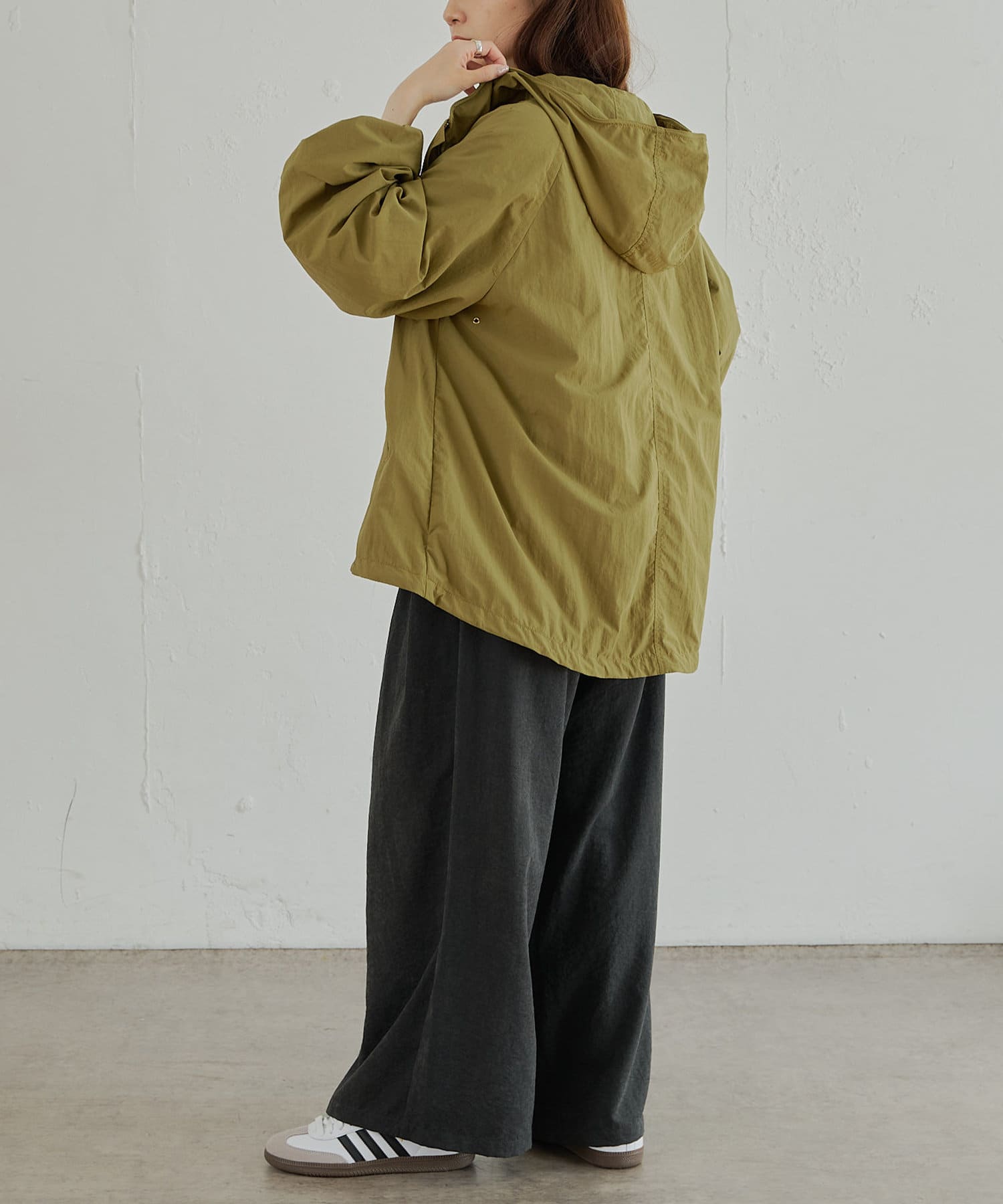 撥水加工されたナイロン×コットン生地を使用し気軽に羽織れるアウターでありながらも、