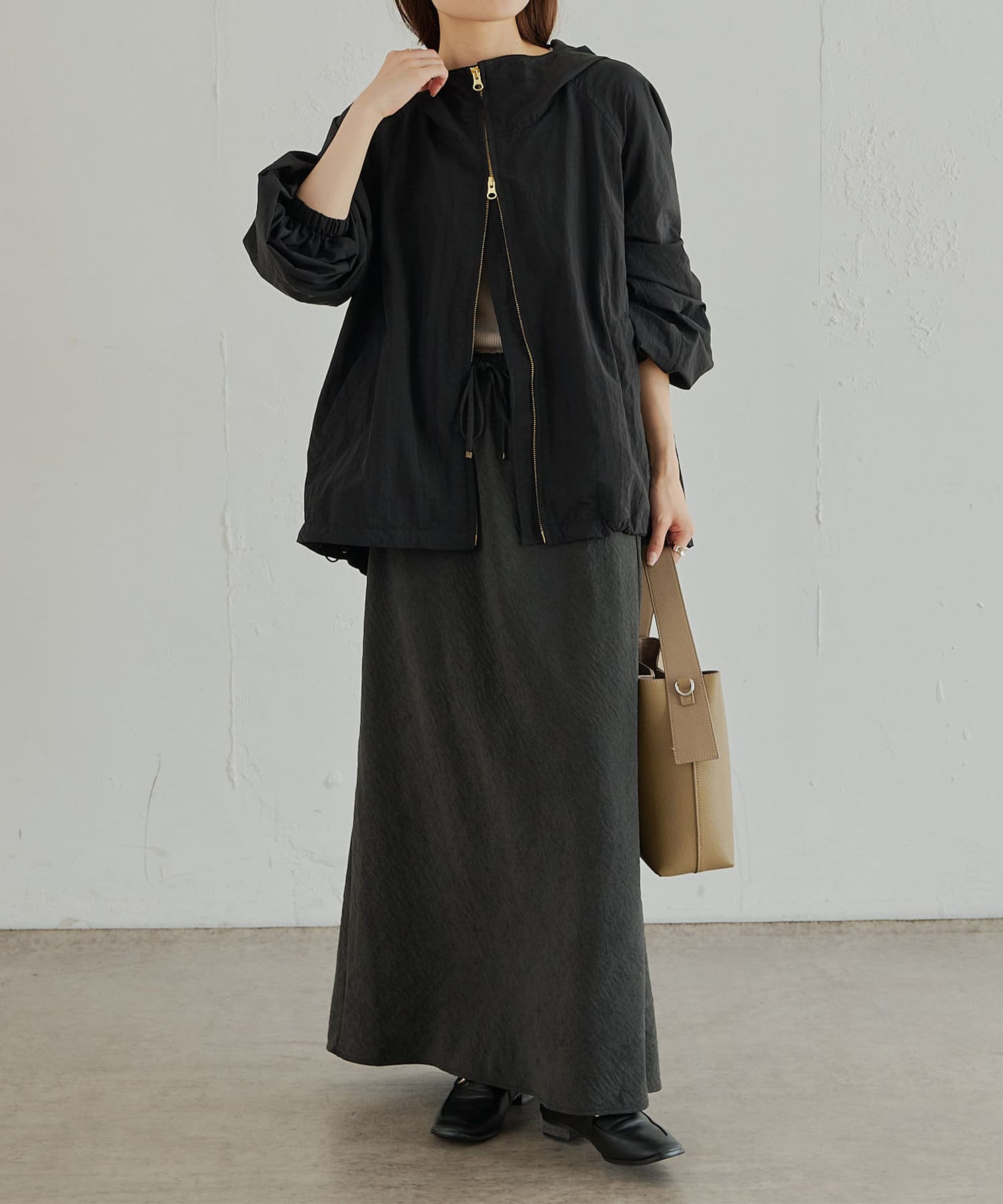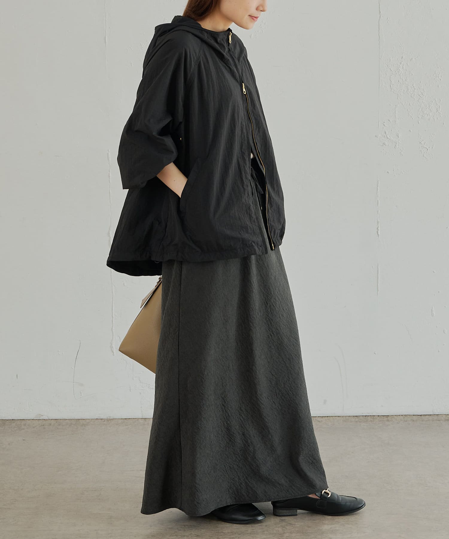 前後差のある着丈で、様々な形のボトムとバランスがとりやすいシルエットです。