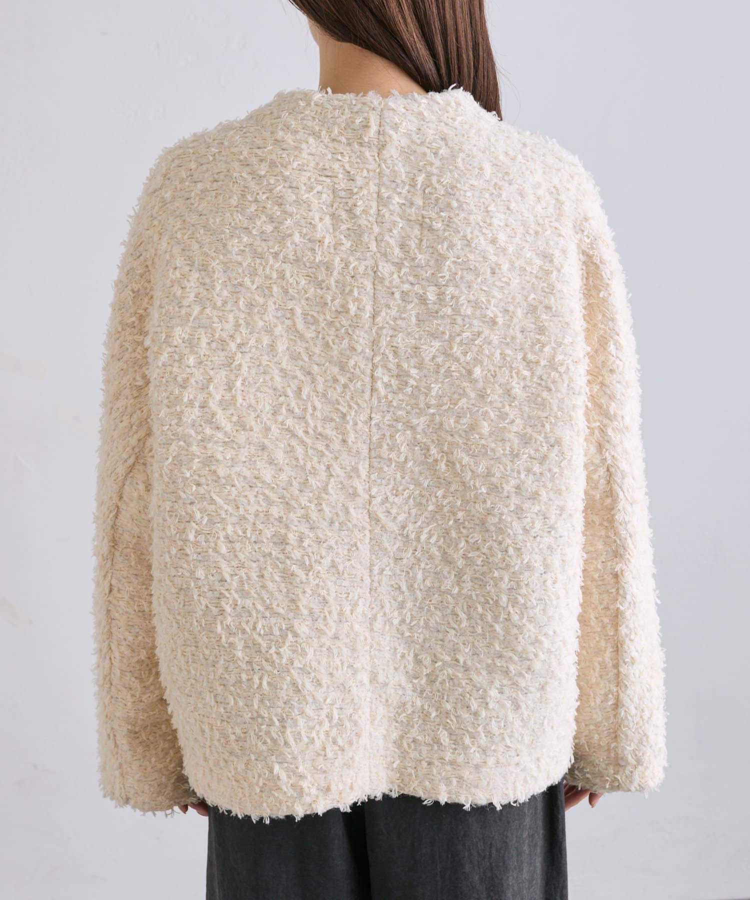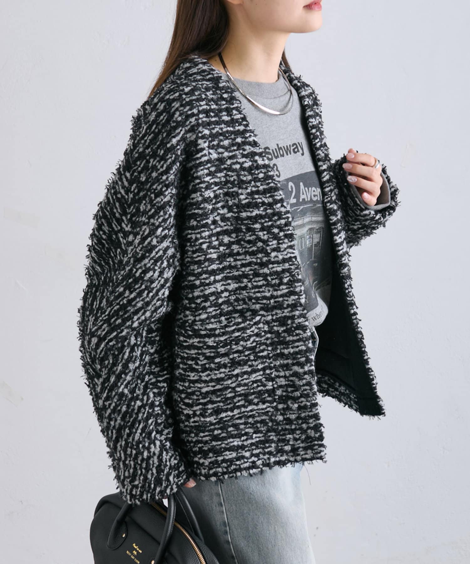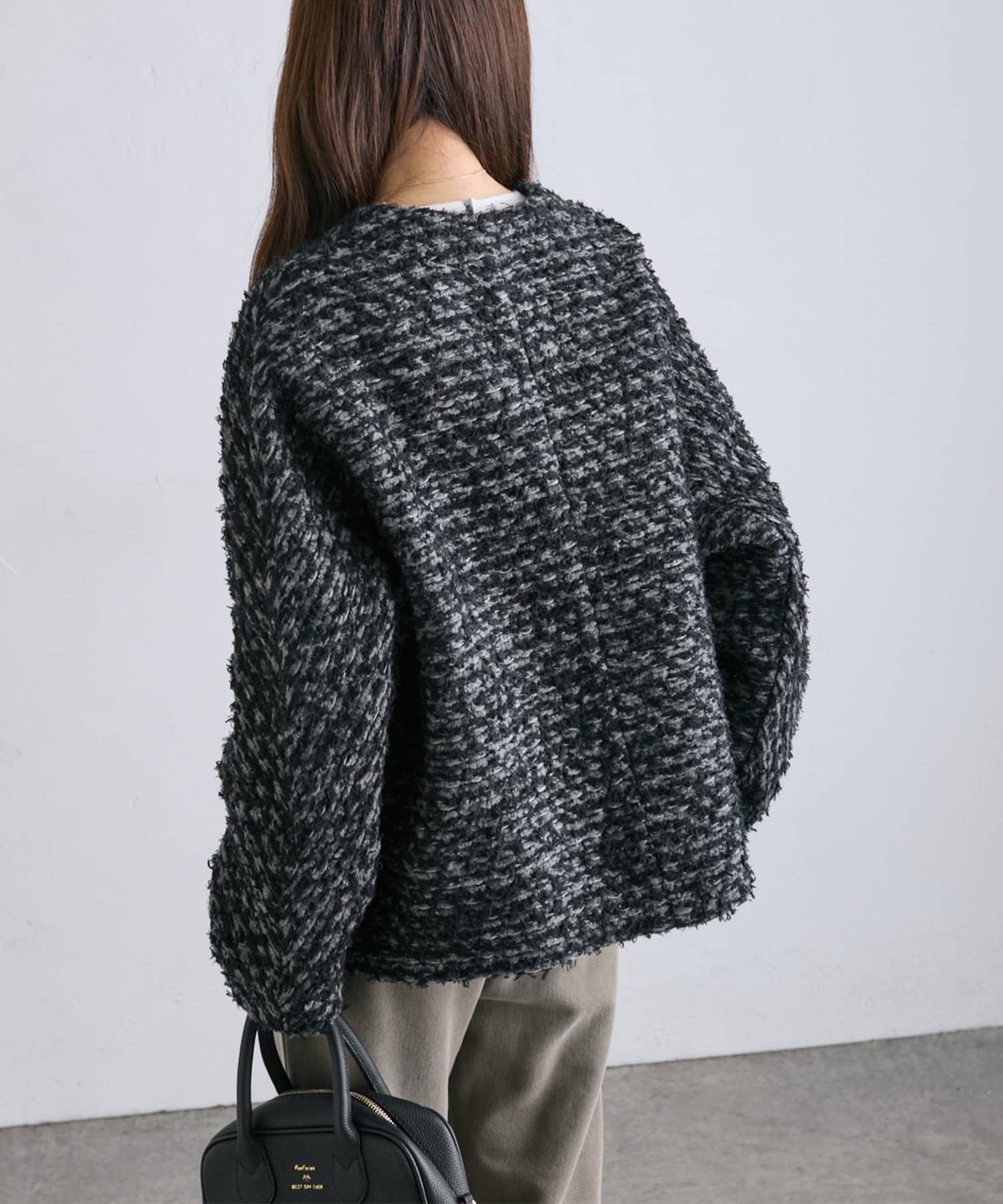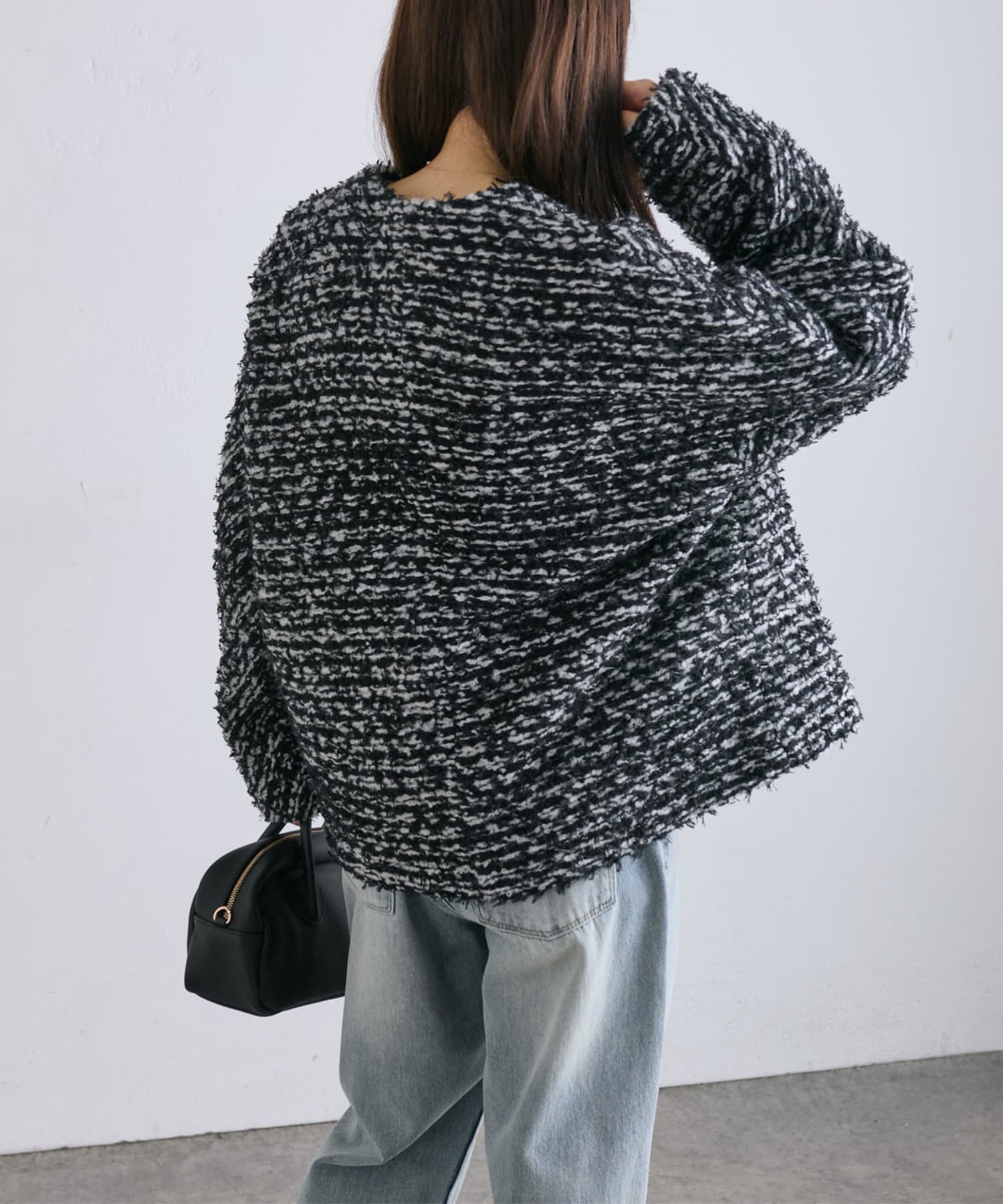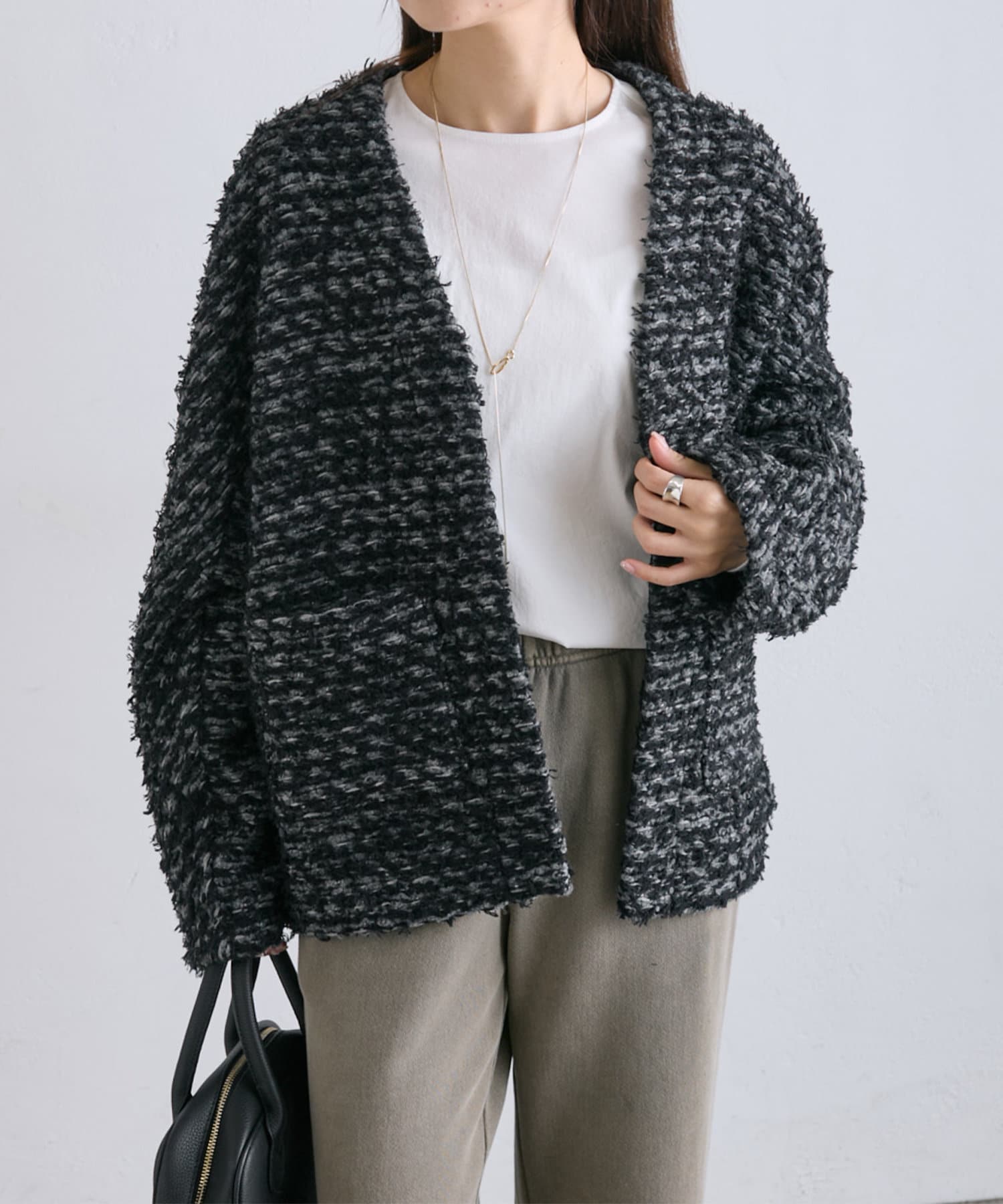 3種類の糸をMIXして編み立てたツイードニットジャケット。