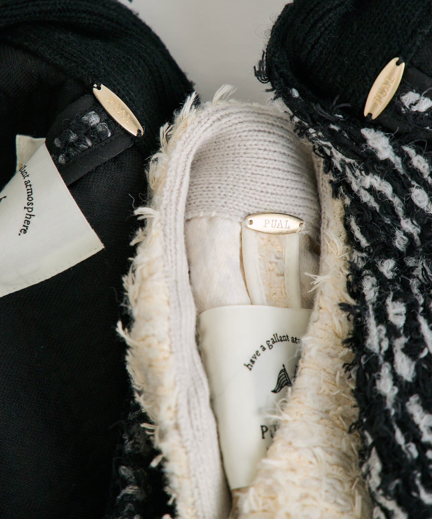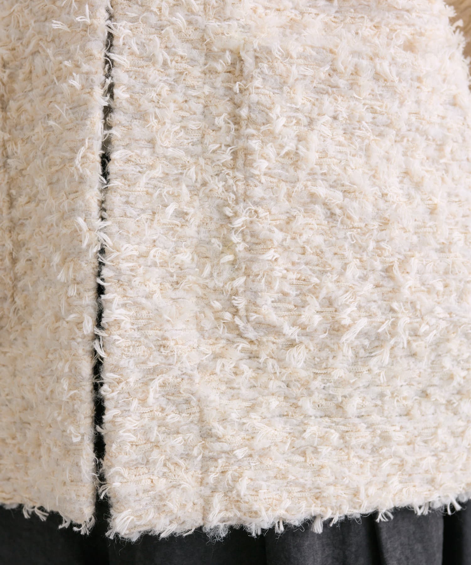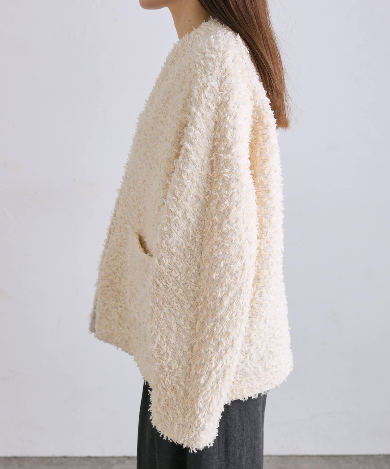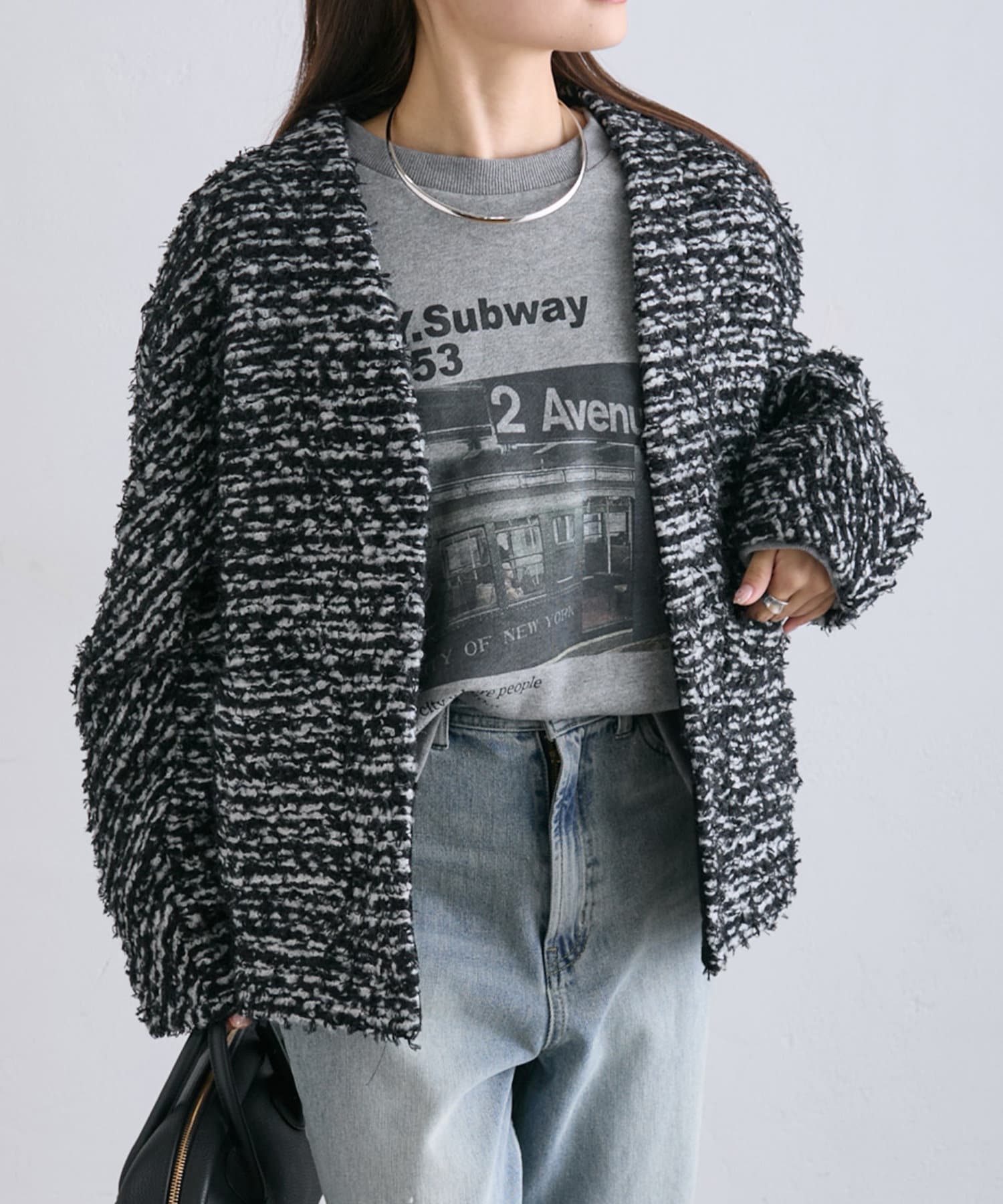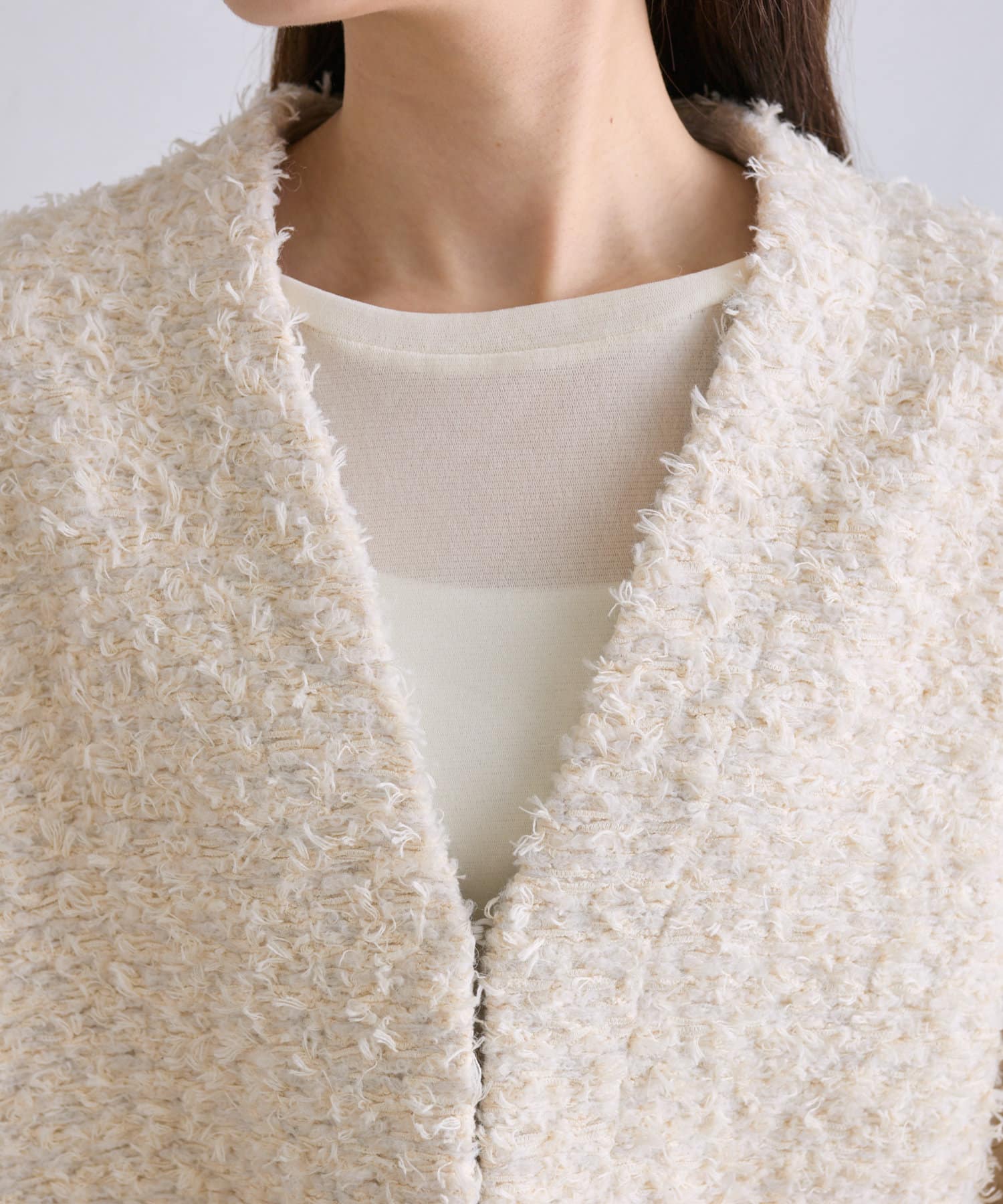3種類の糸をMIXして編み立てたツイードニットジャケット。