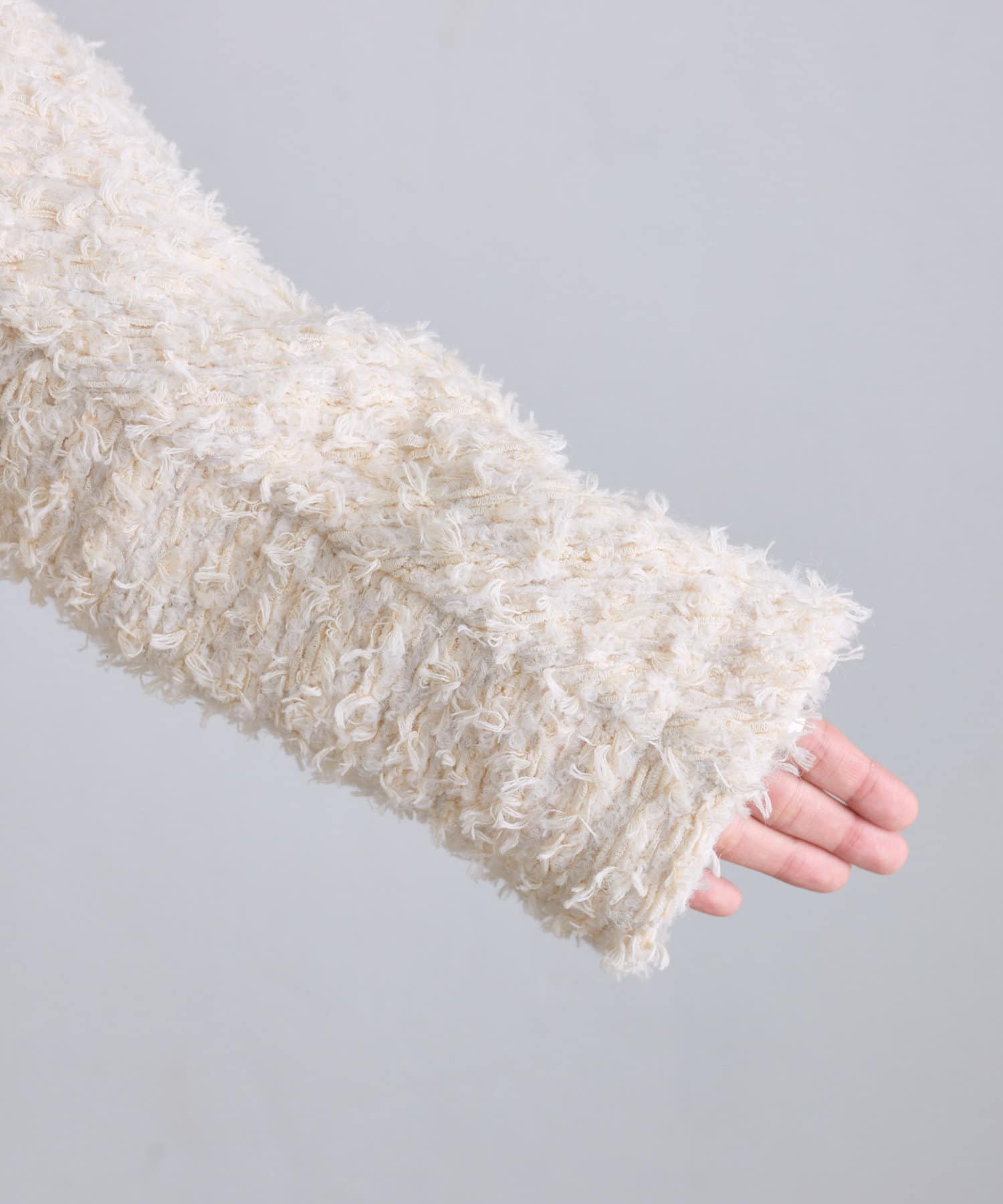 凹凸のある太めの糸をミックスで編み上げた、ふっくら豊かな表情が特徴です。