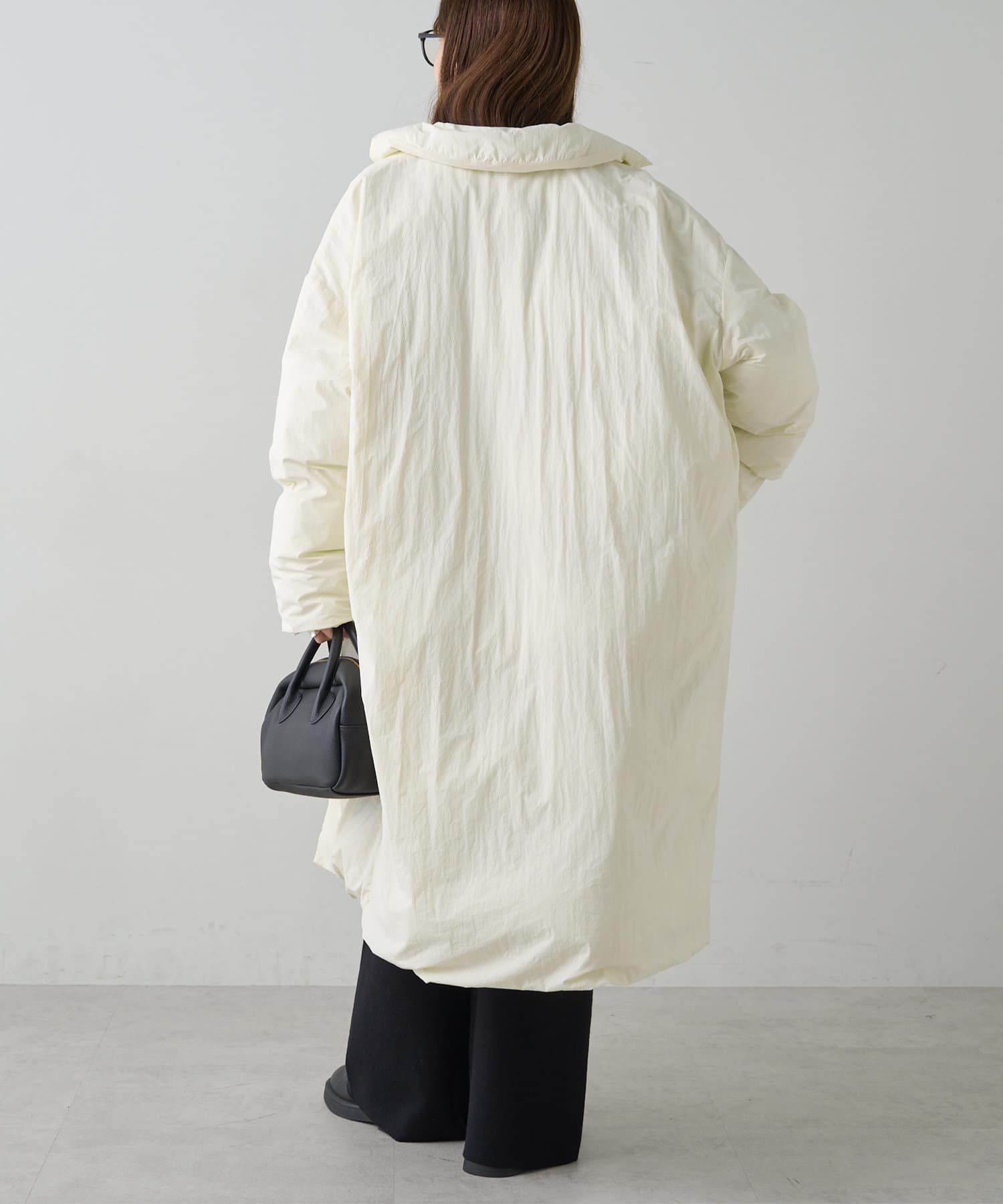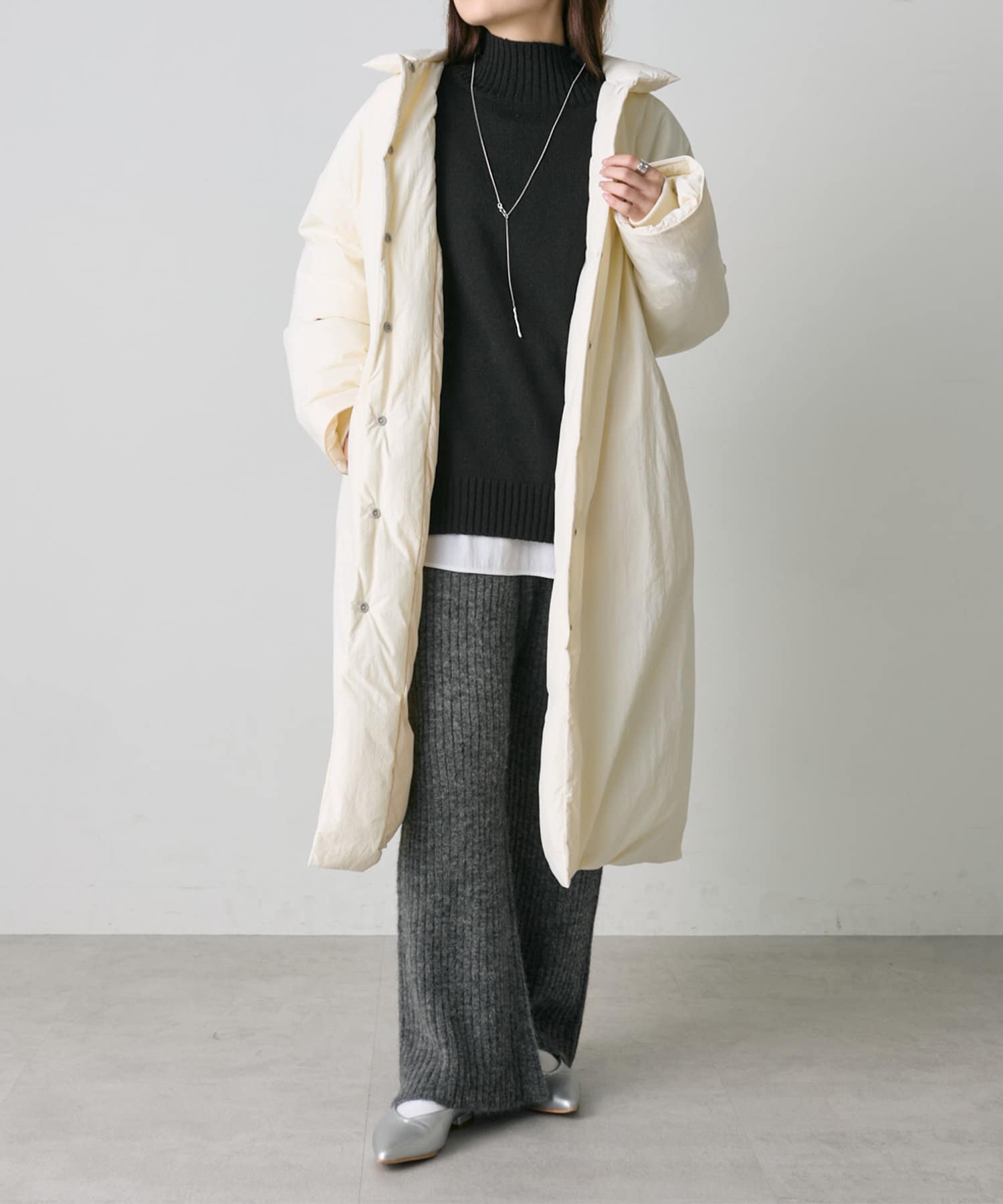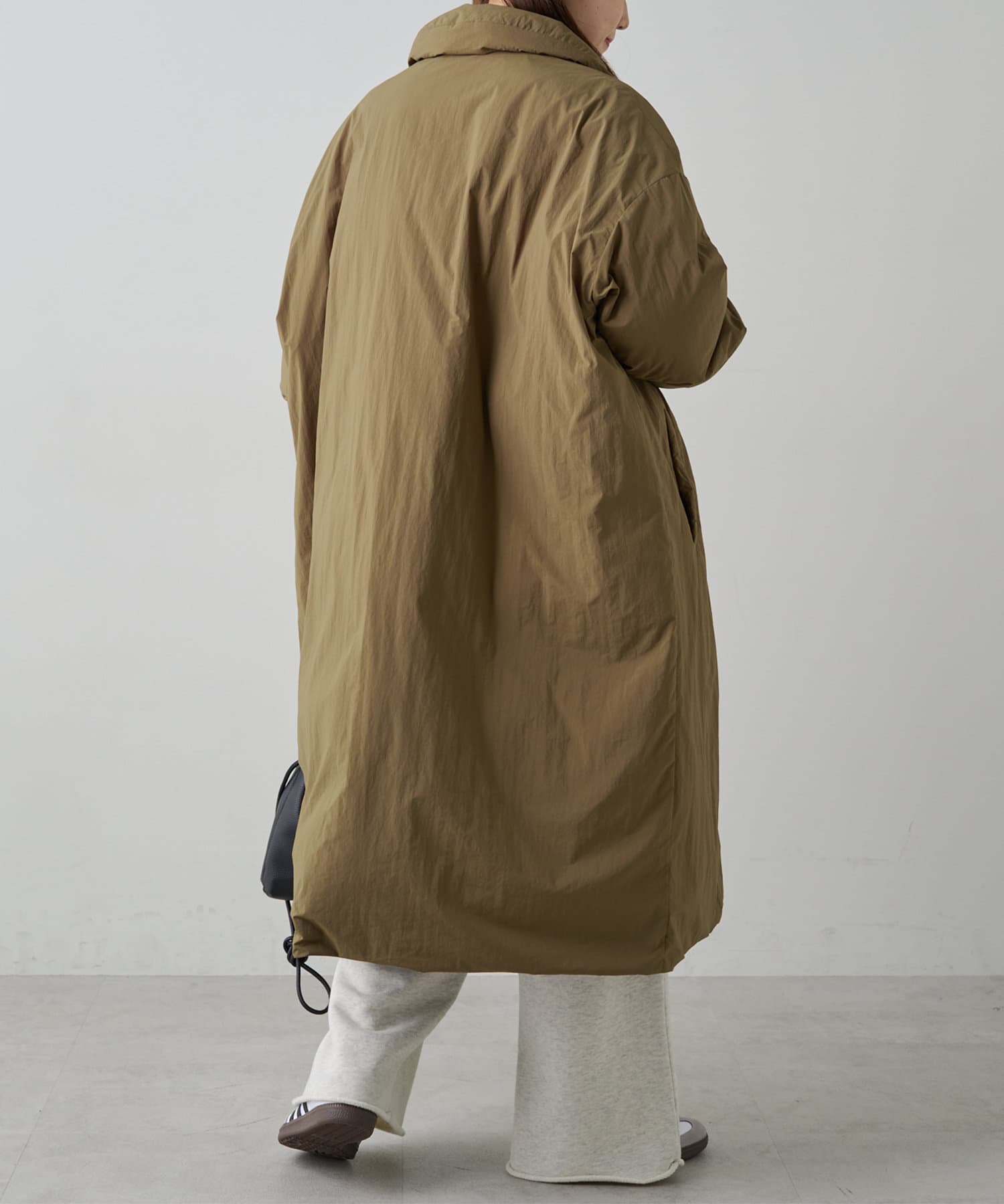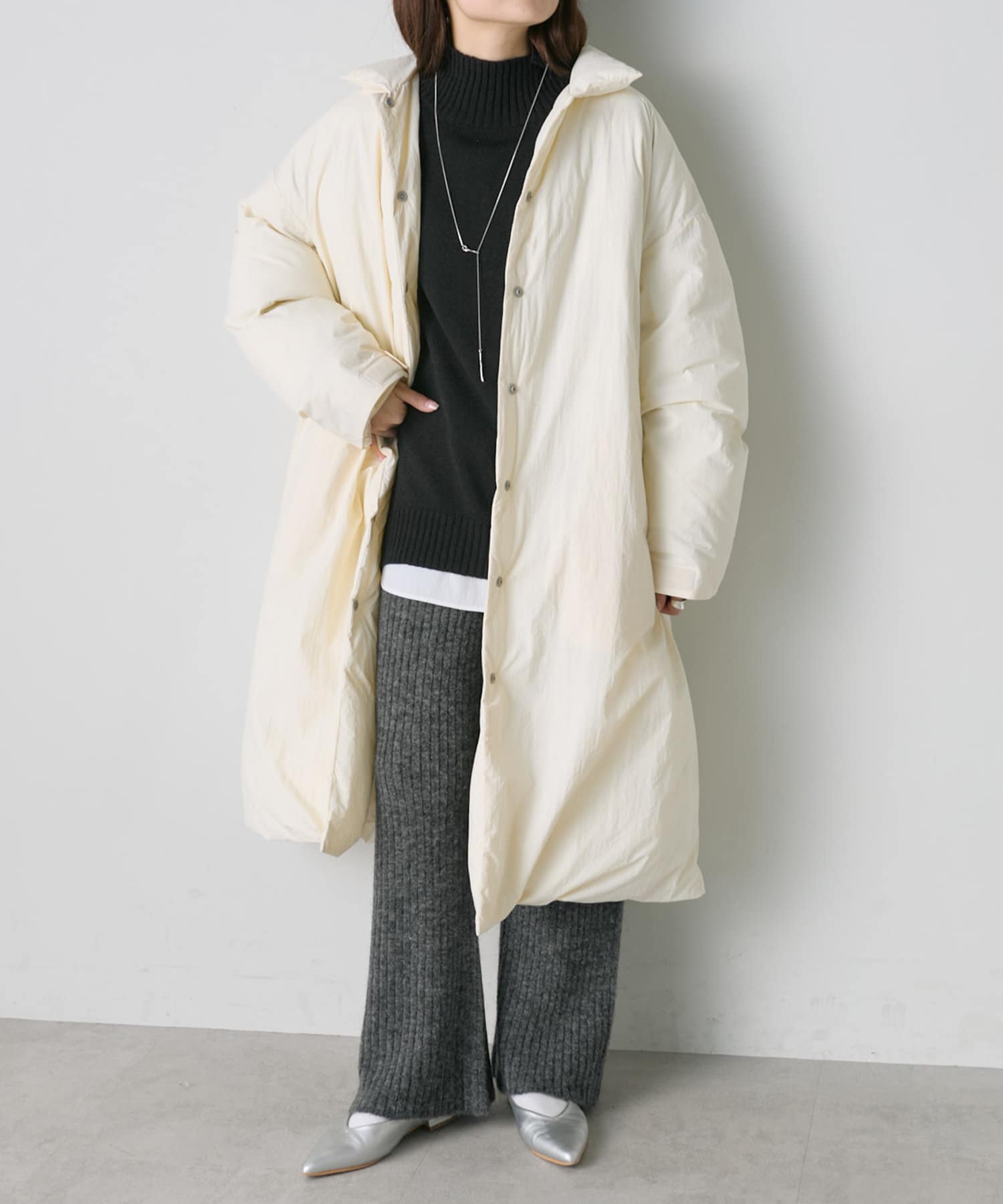 中綿のふんわりとした雰囲気が、冬らしいコーディネートにぴったりなロングコート。