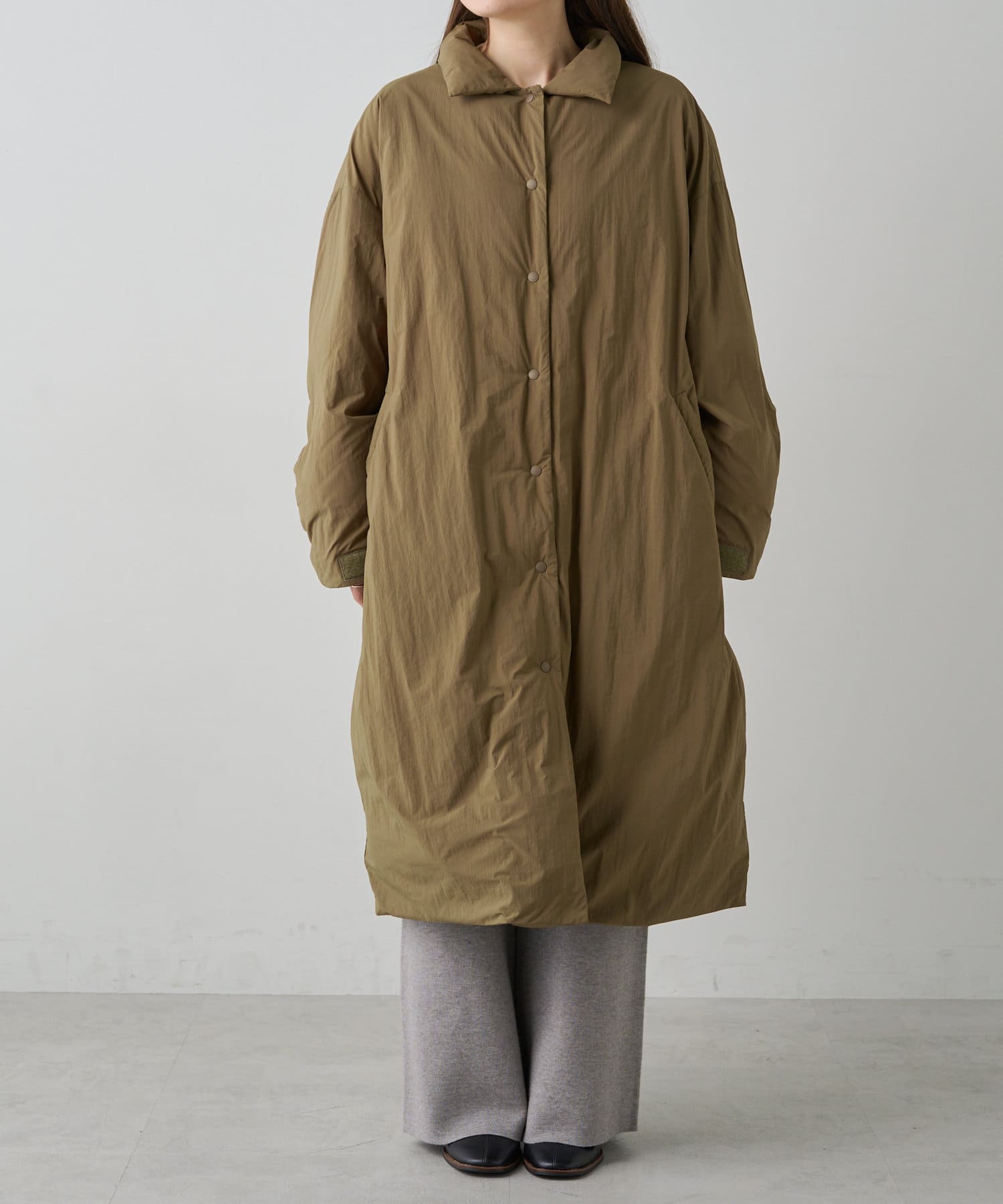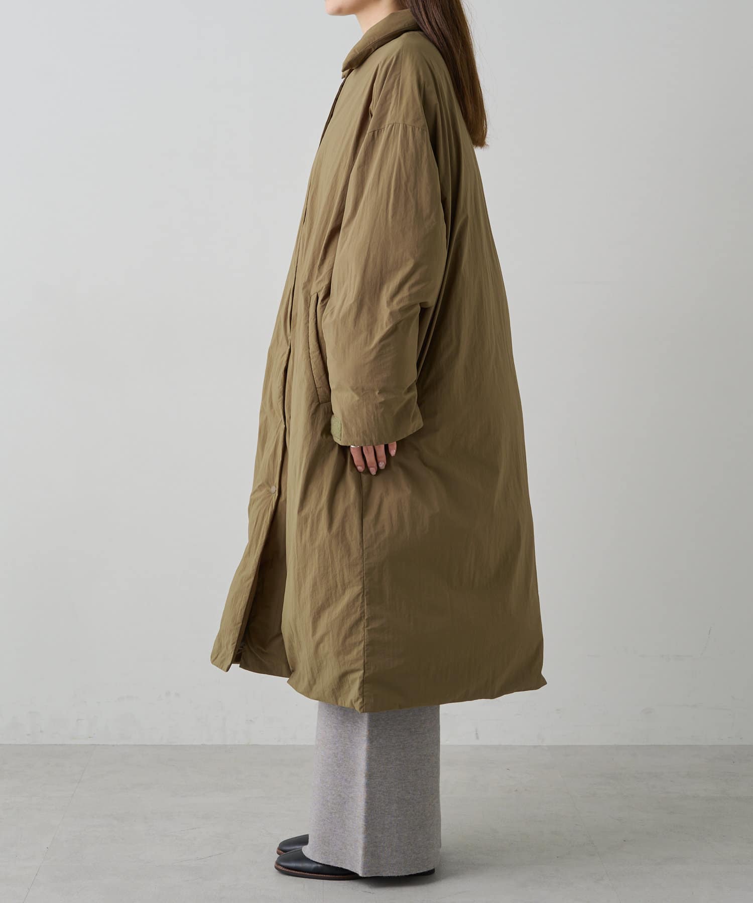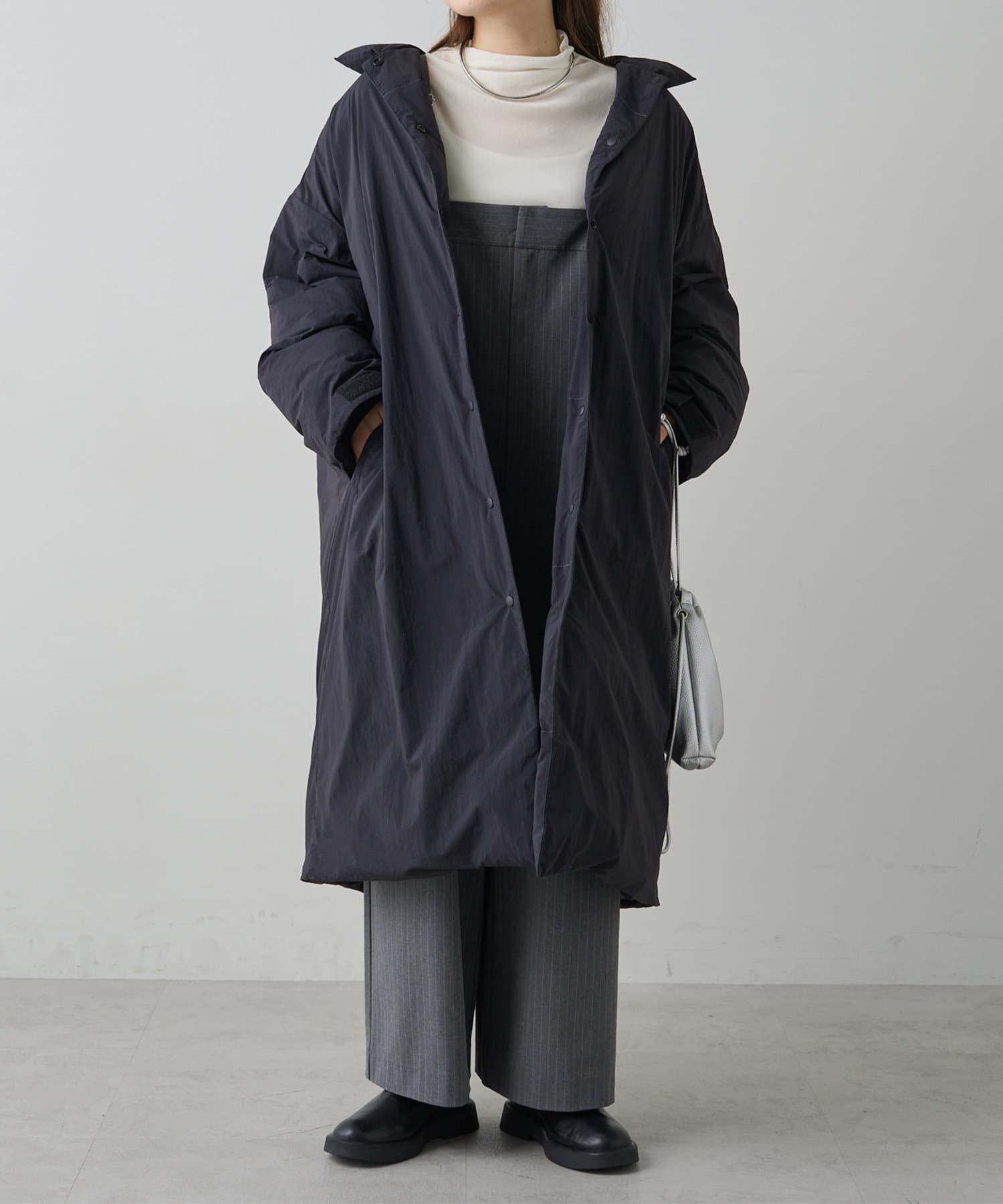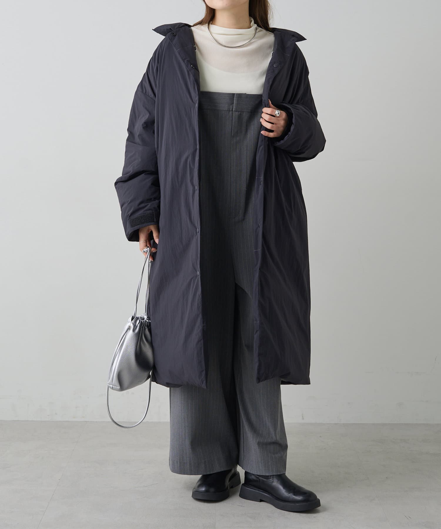 中綿のふんわりとした雰囲気が、冬らしいコーディネートにぴったりなロングコート。