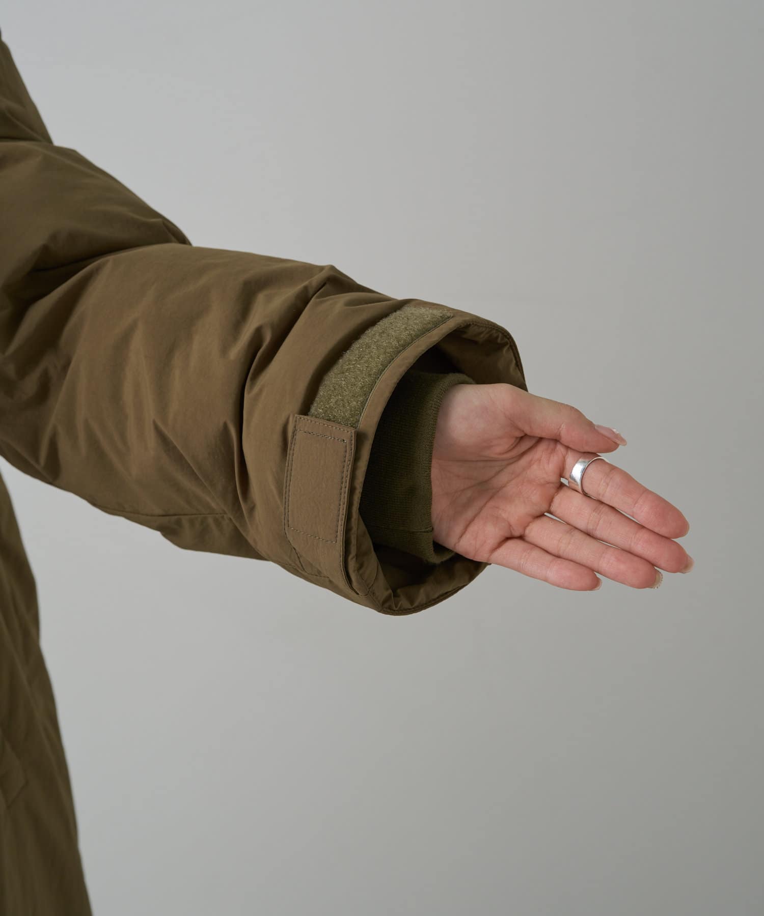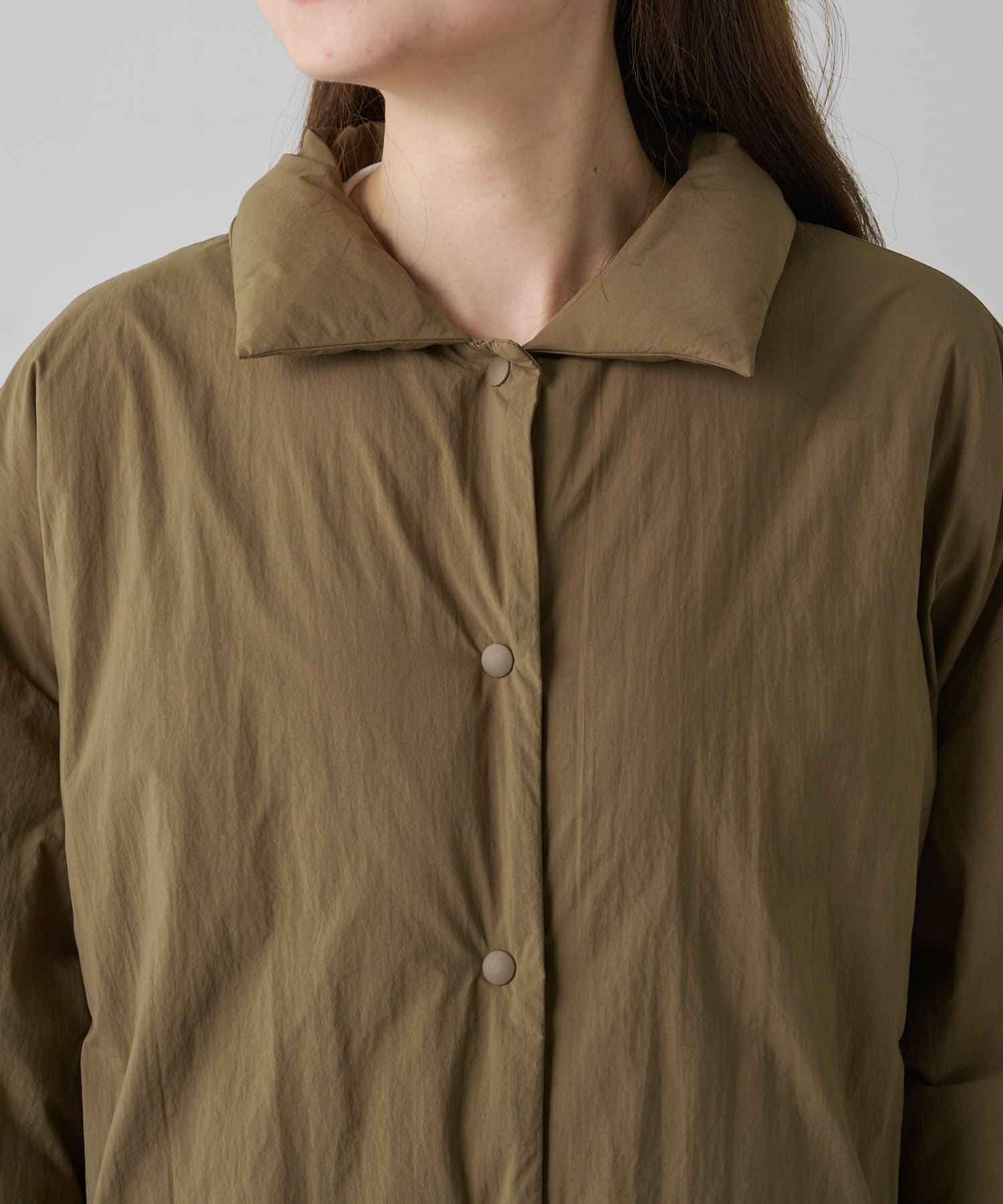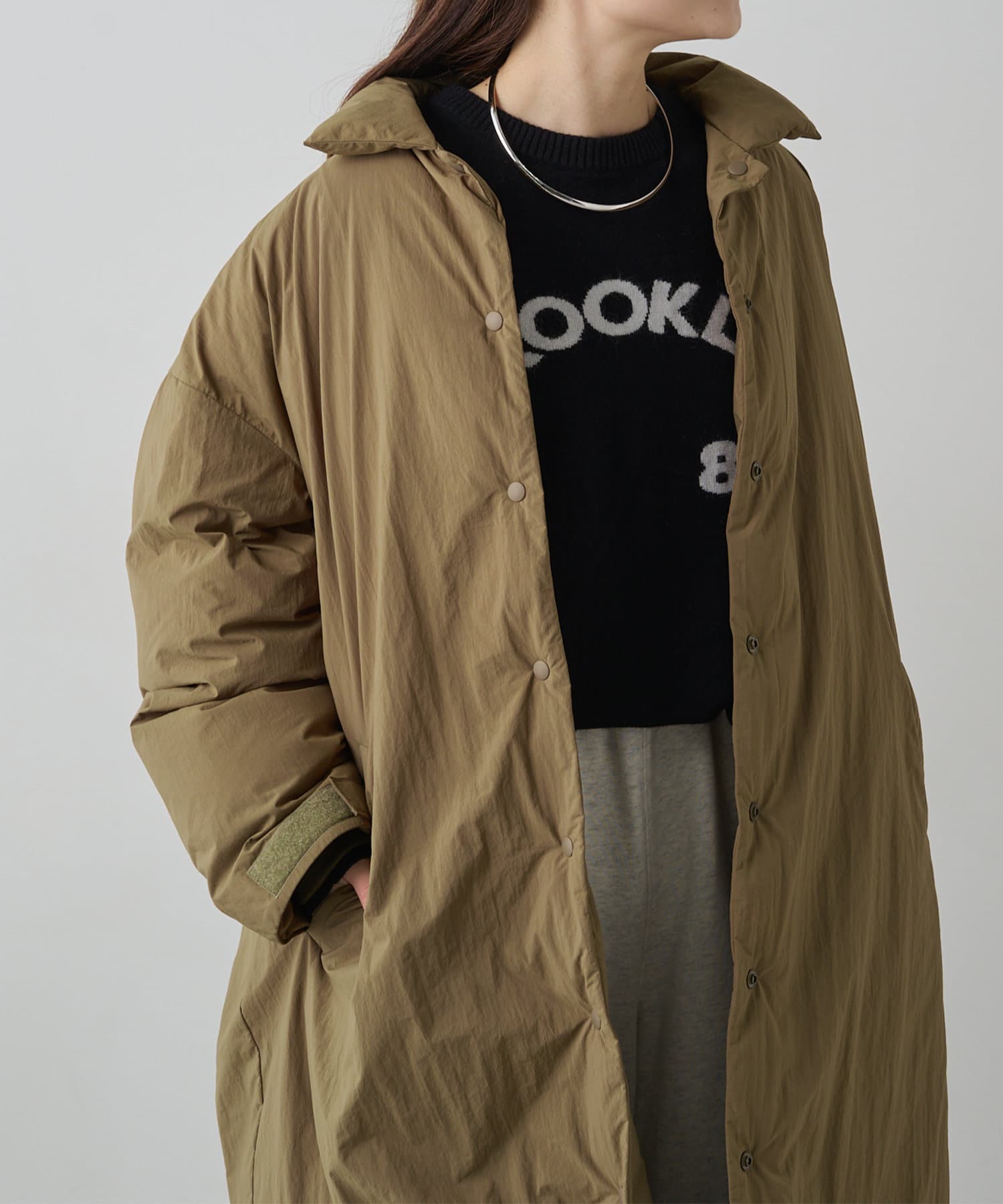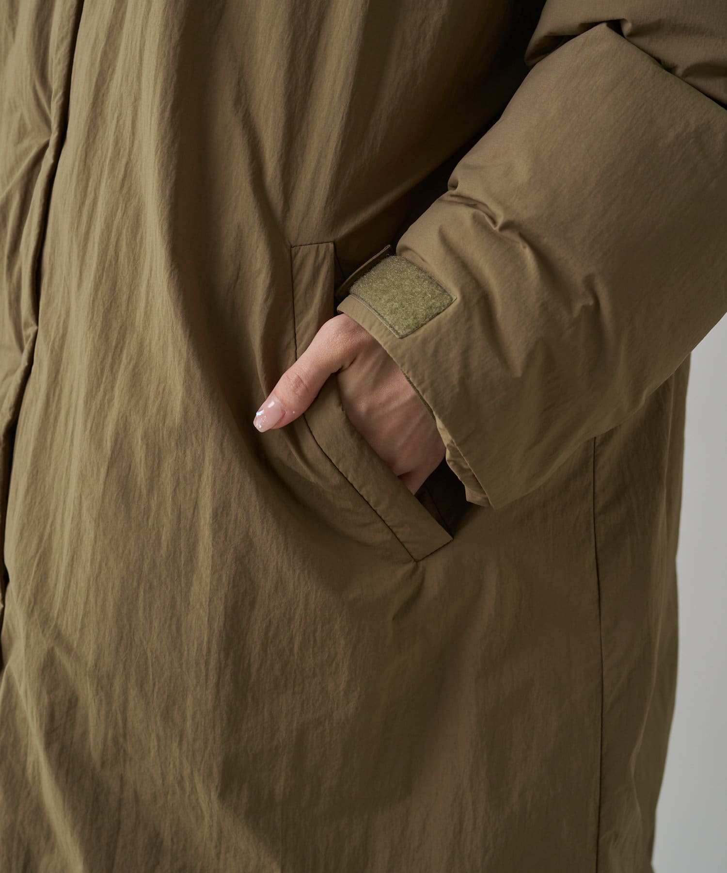 ロングのデザインでもナイロンの中綿ならではの着用時の軽さは嬉しいポイント。