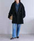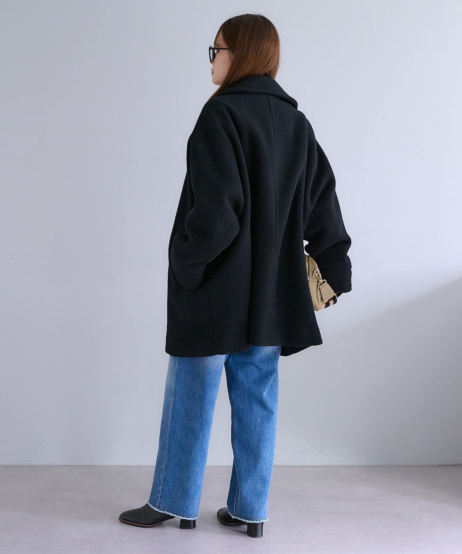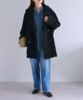 着用感:かちっとした印象が強いPコートですが、こちらは柔らかく羽織り心地◎腰が隠れる着丈でややオーバーサイズなシルエットになりました。窮屈感はありません。