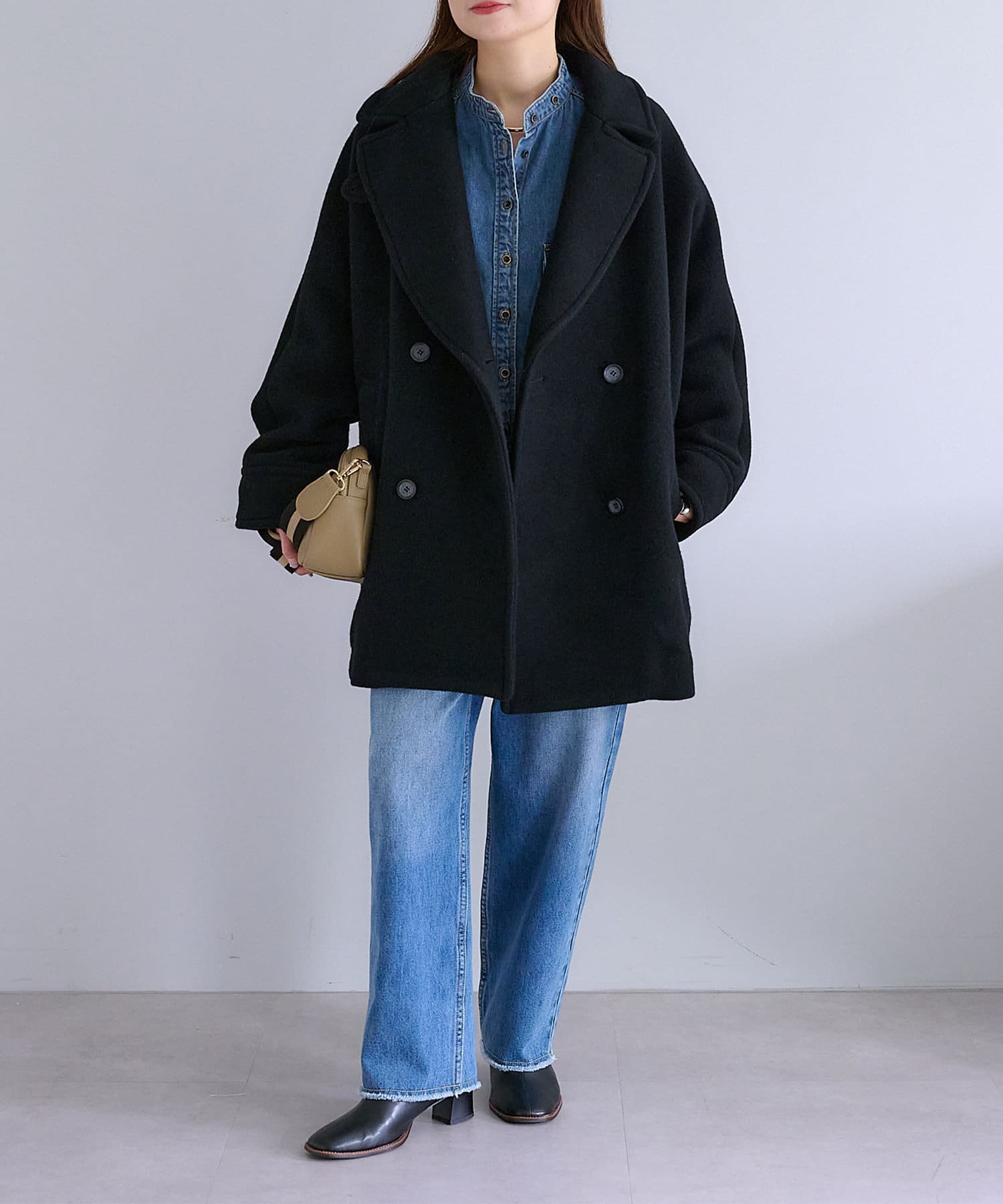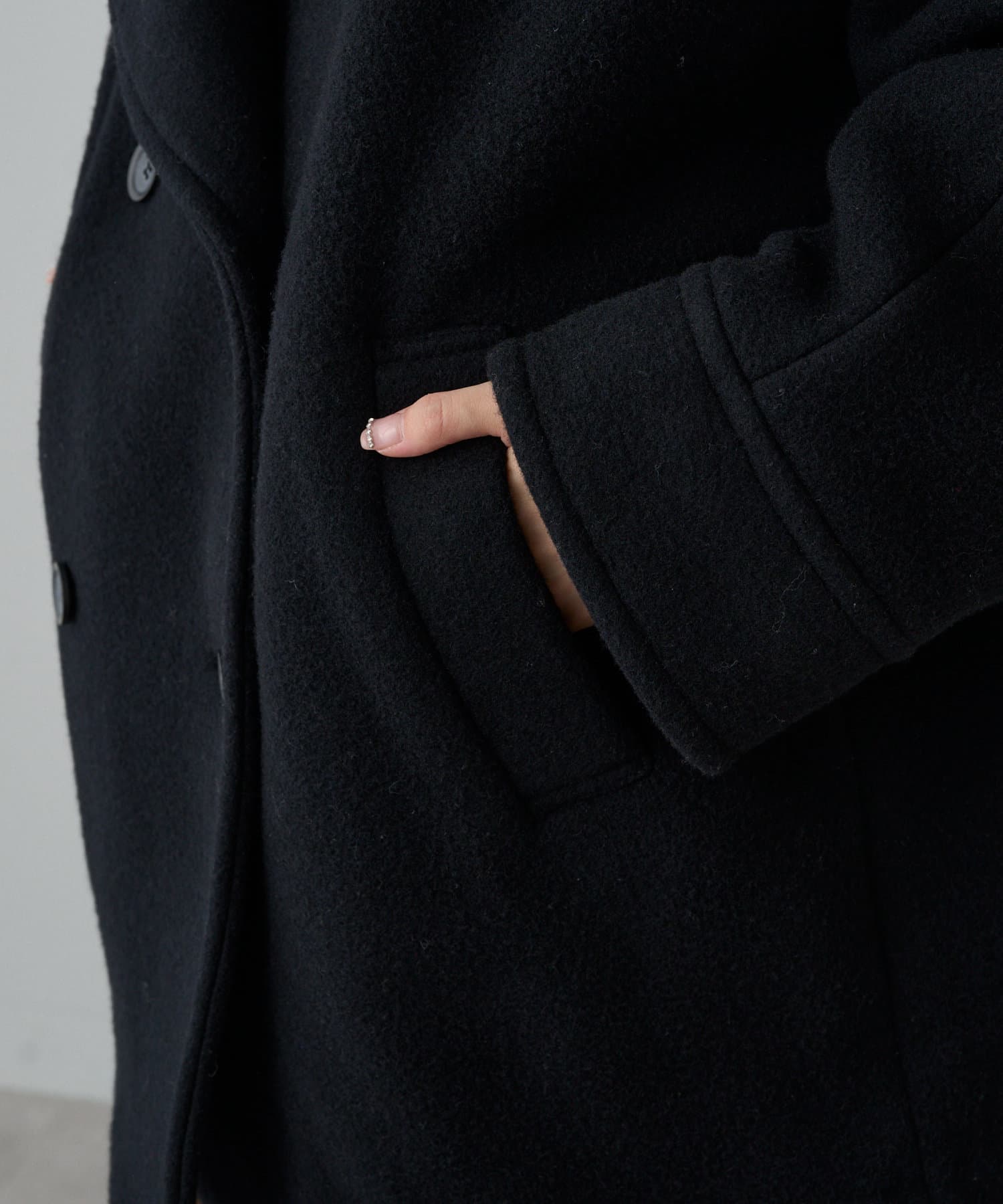 見た目以上に軽く、包み込まれるような柔らかさのあるPコートです。