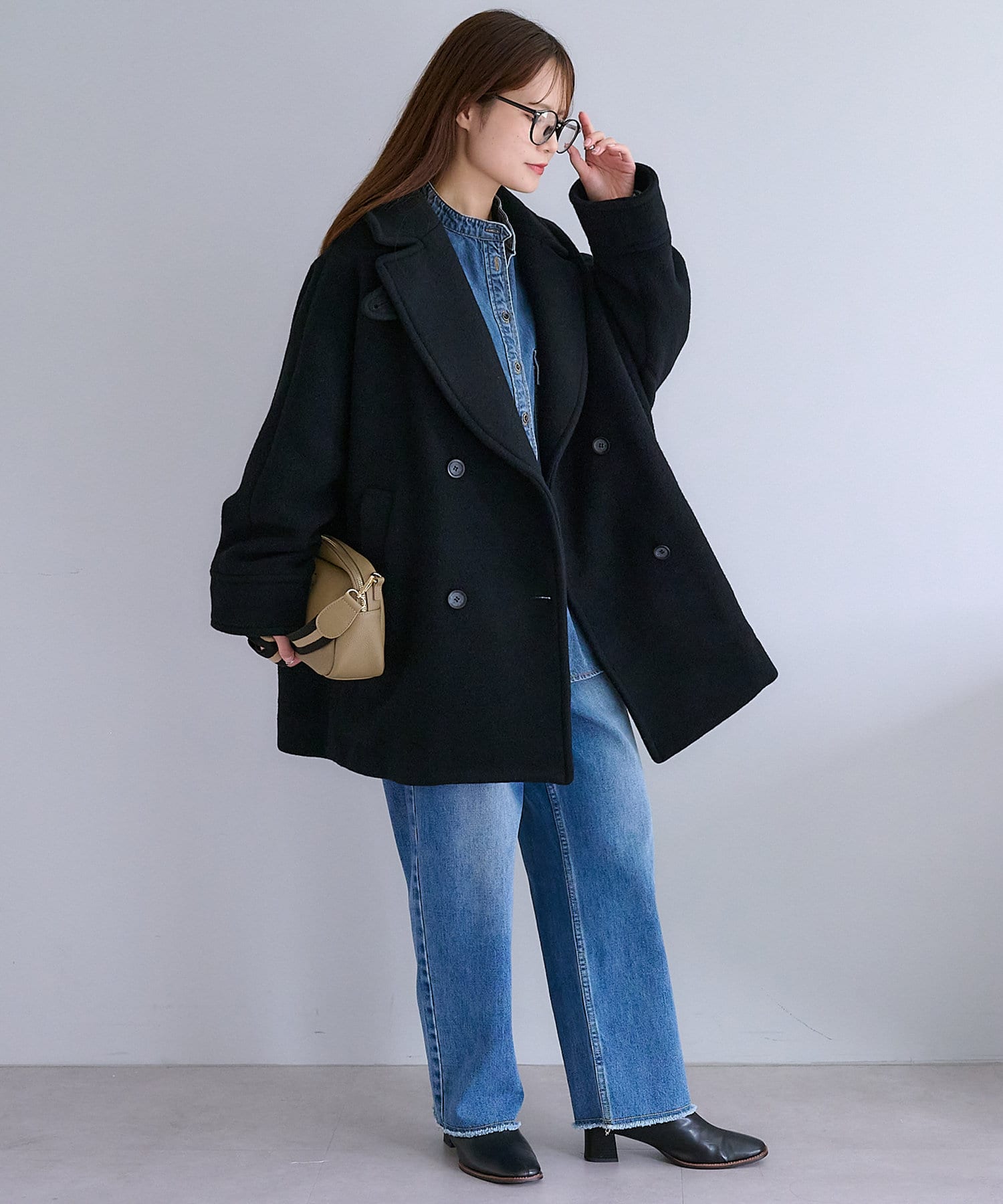 ◇【日本製】絶妙なバランスのミドル丈Pコート◇