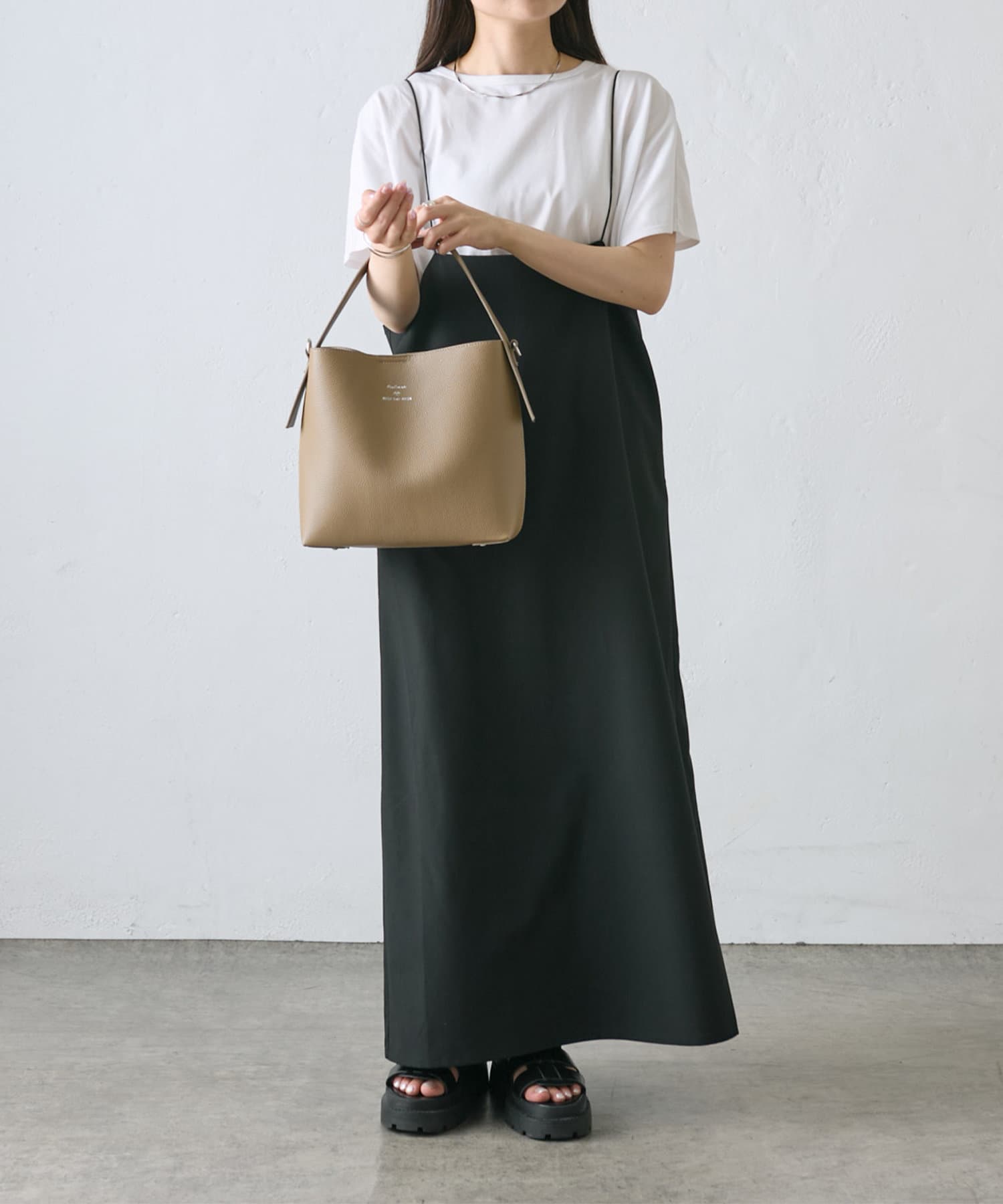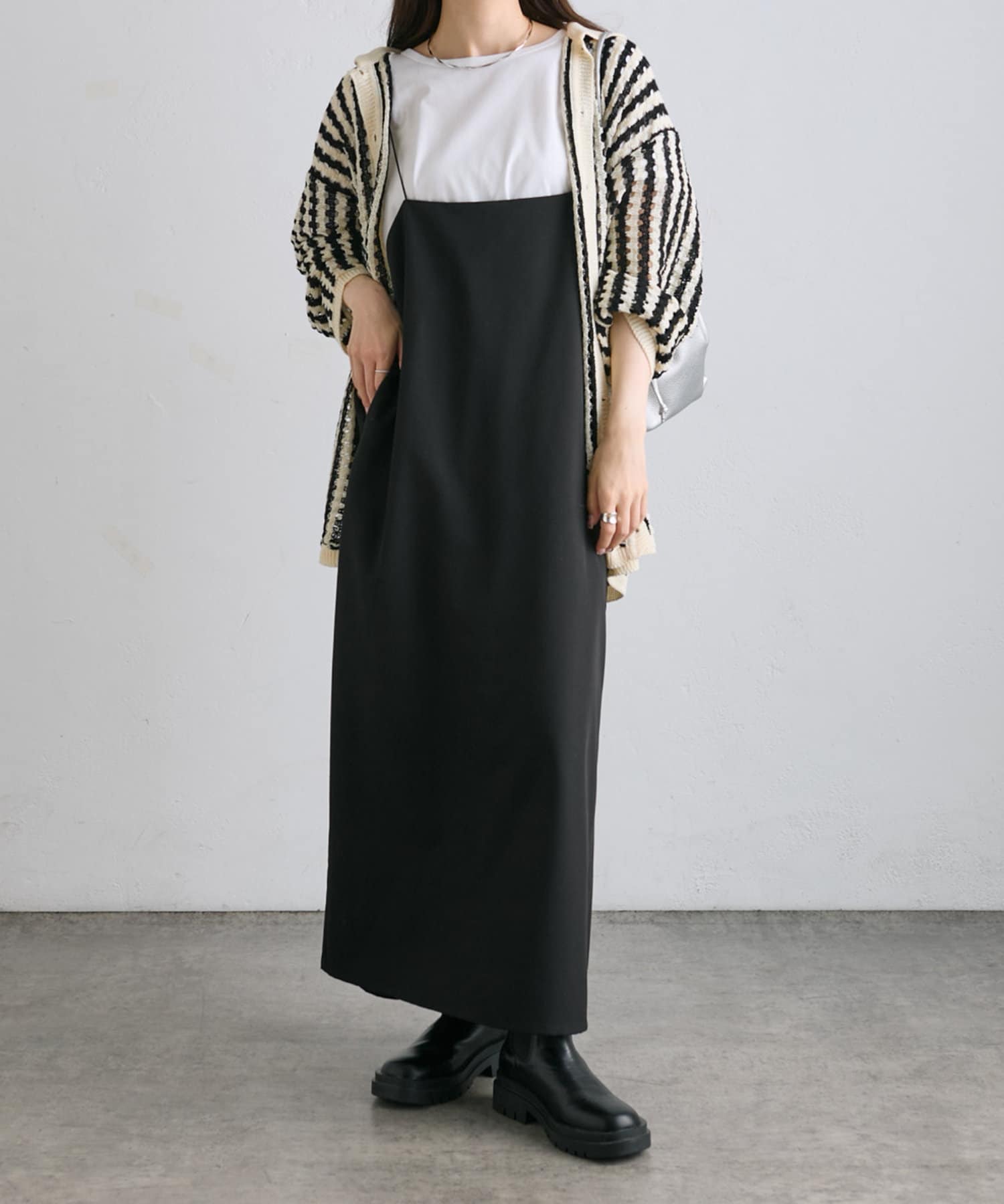 華奢な肩紐使いが大人っぽく、お好みの長さに合わせて着用いただけます。