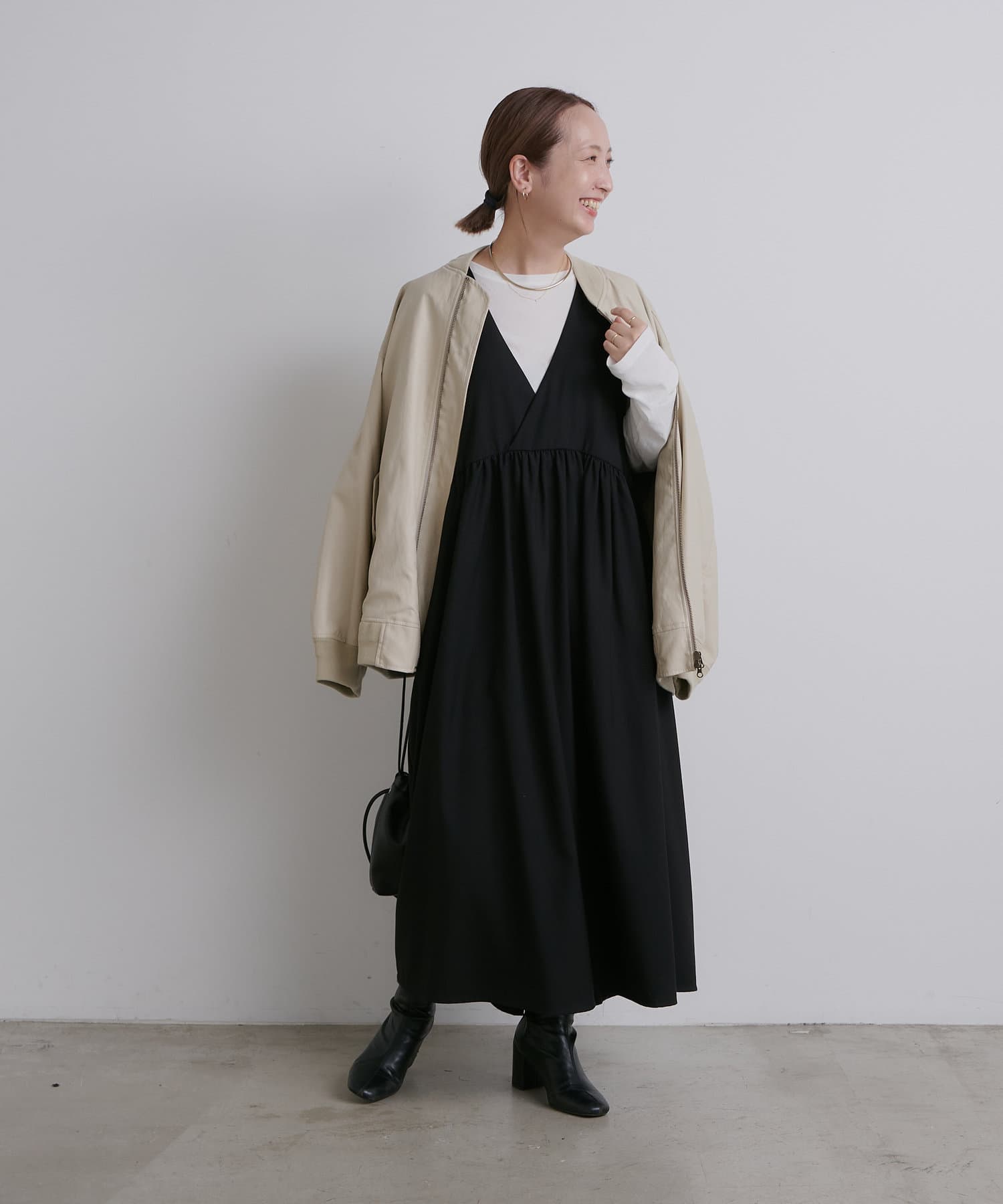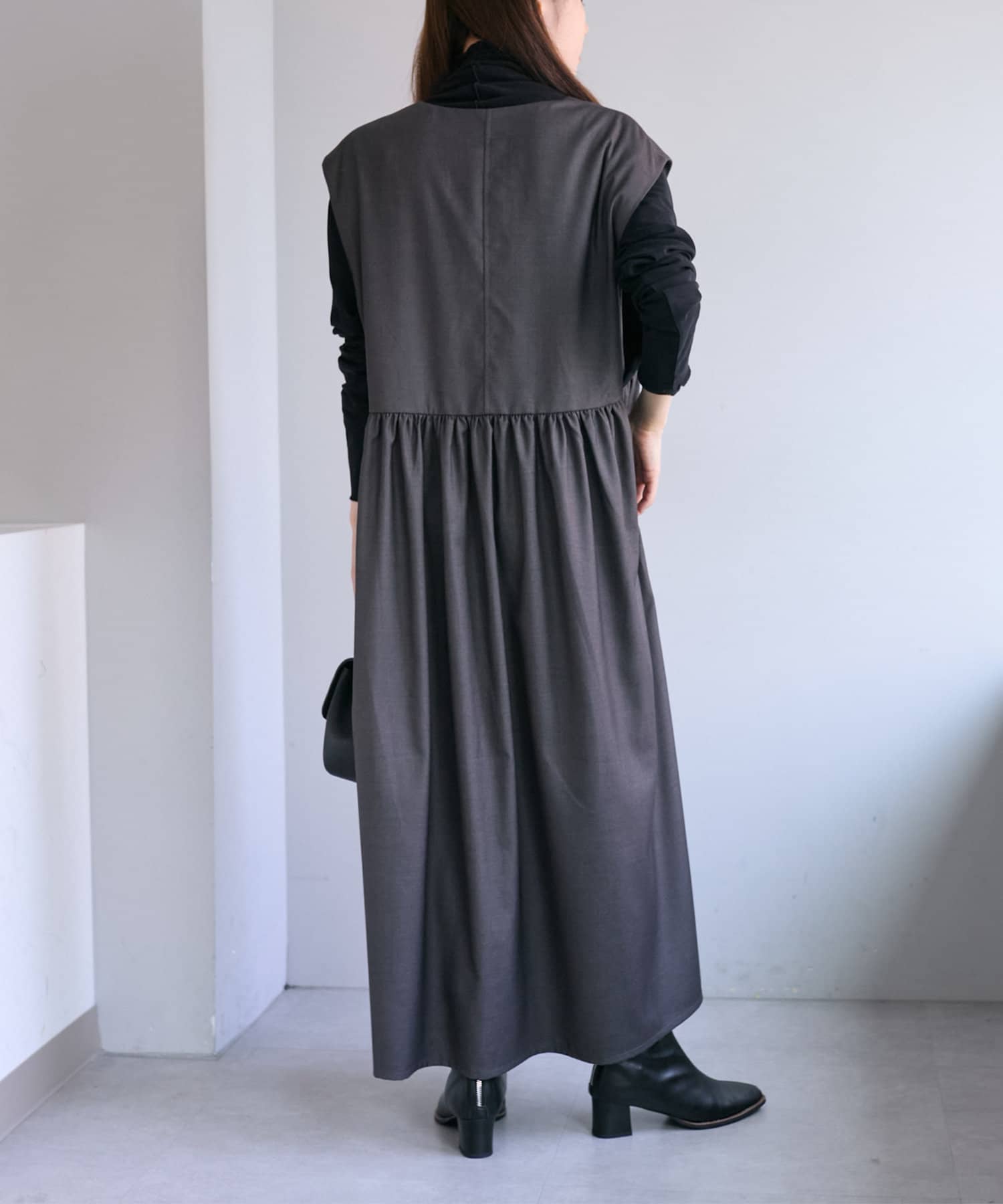 ノースリーブなので様々な着こなしを楽しめるのが嬉しいワンピース。