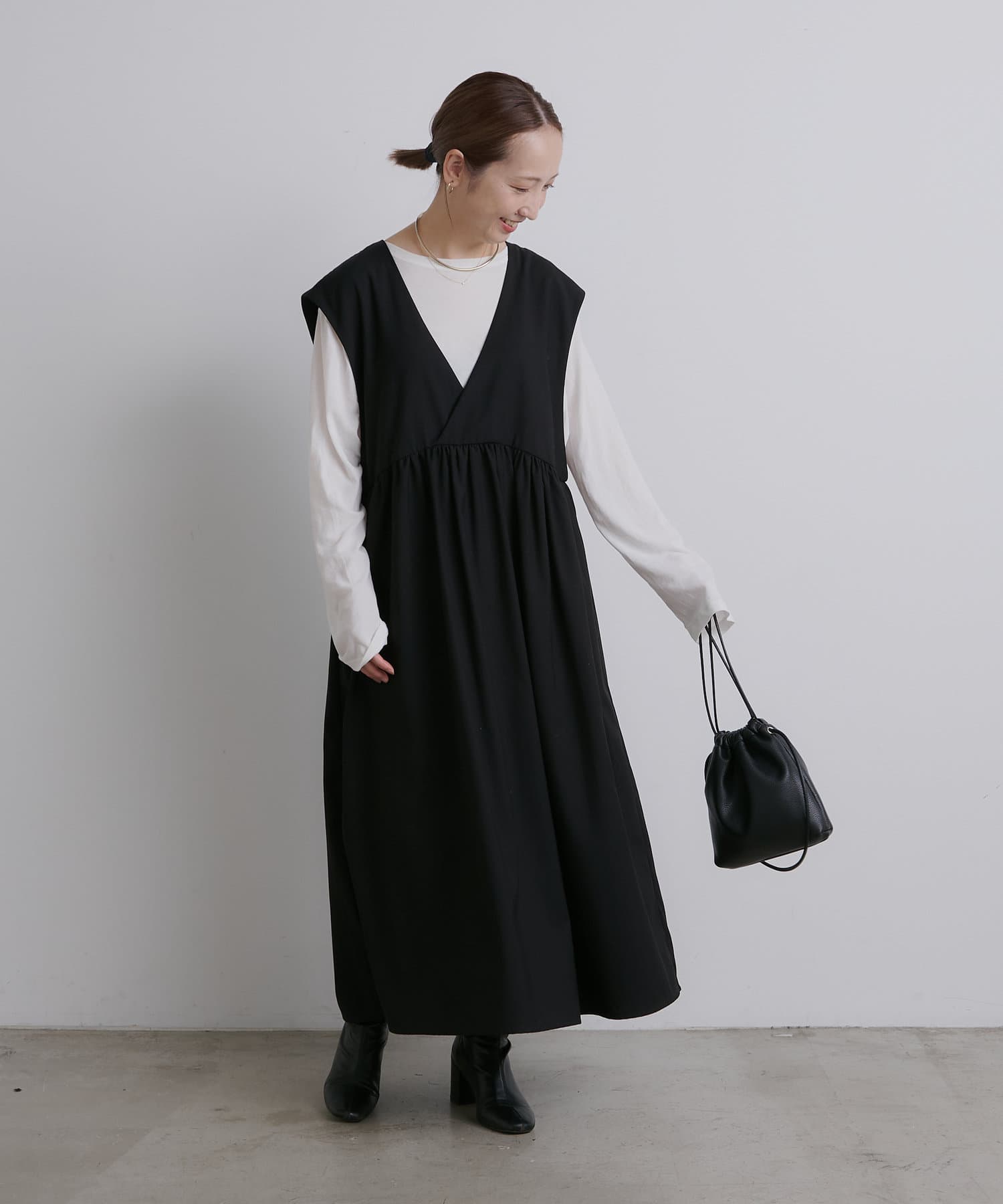 ◇きちんと感からカジュアルまで、こだわりが詰まった大人のVネックジャンパースカート◇