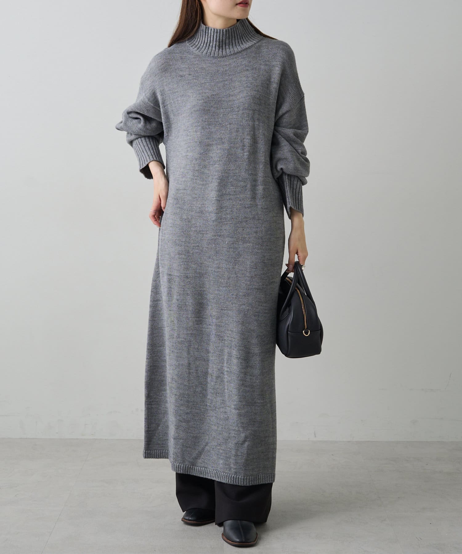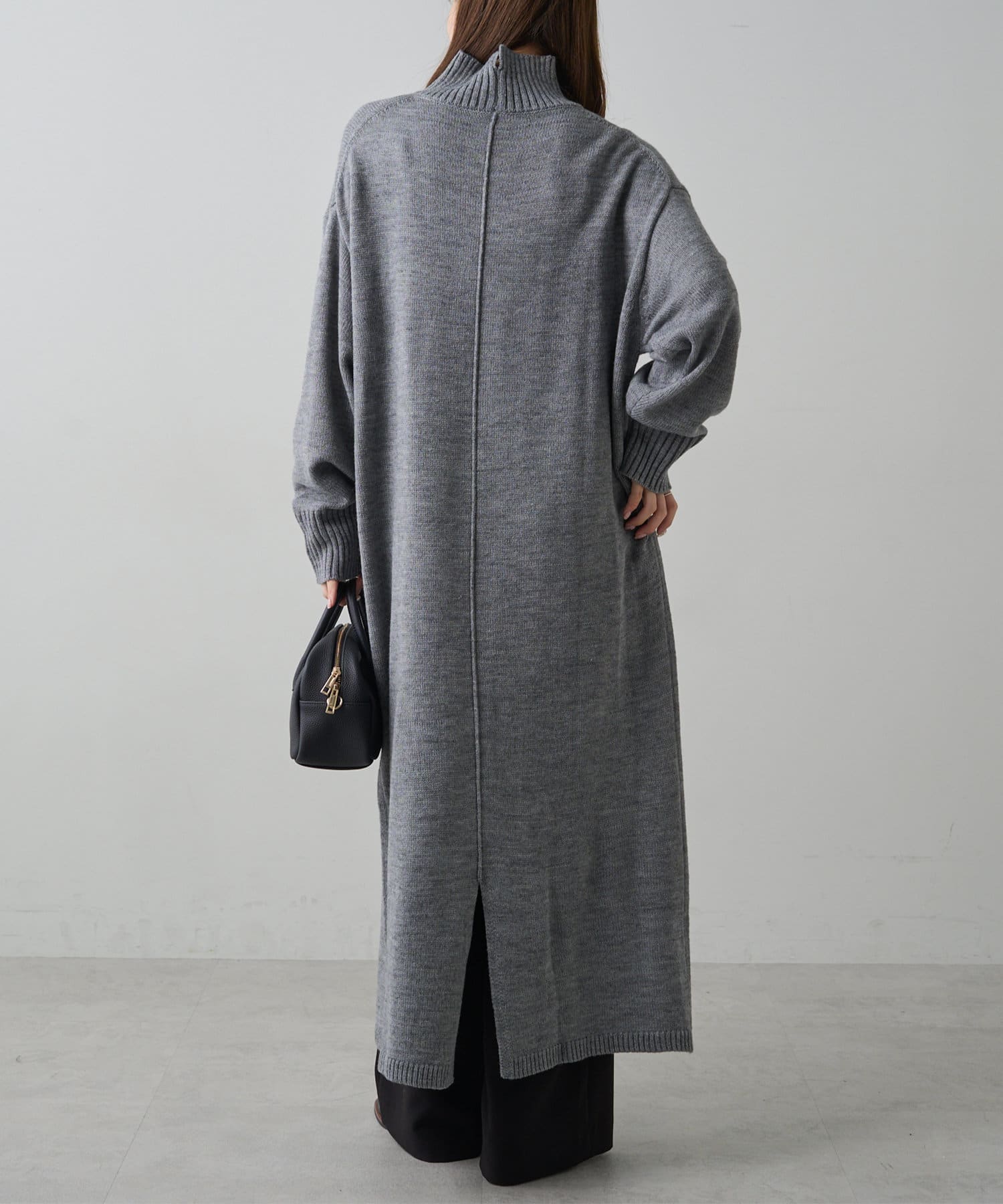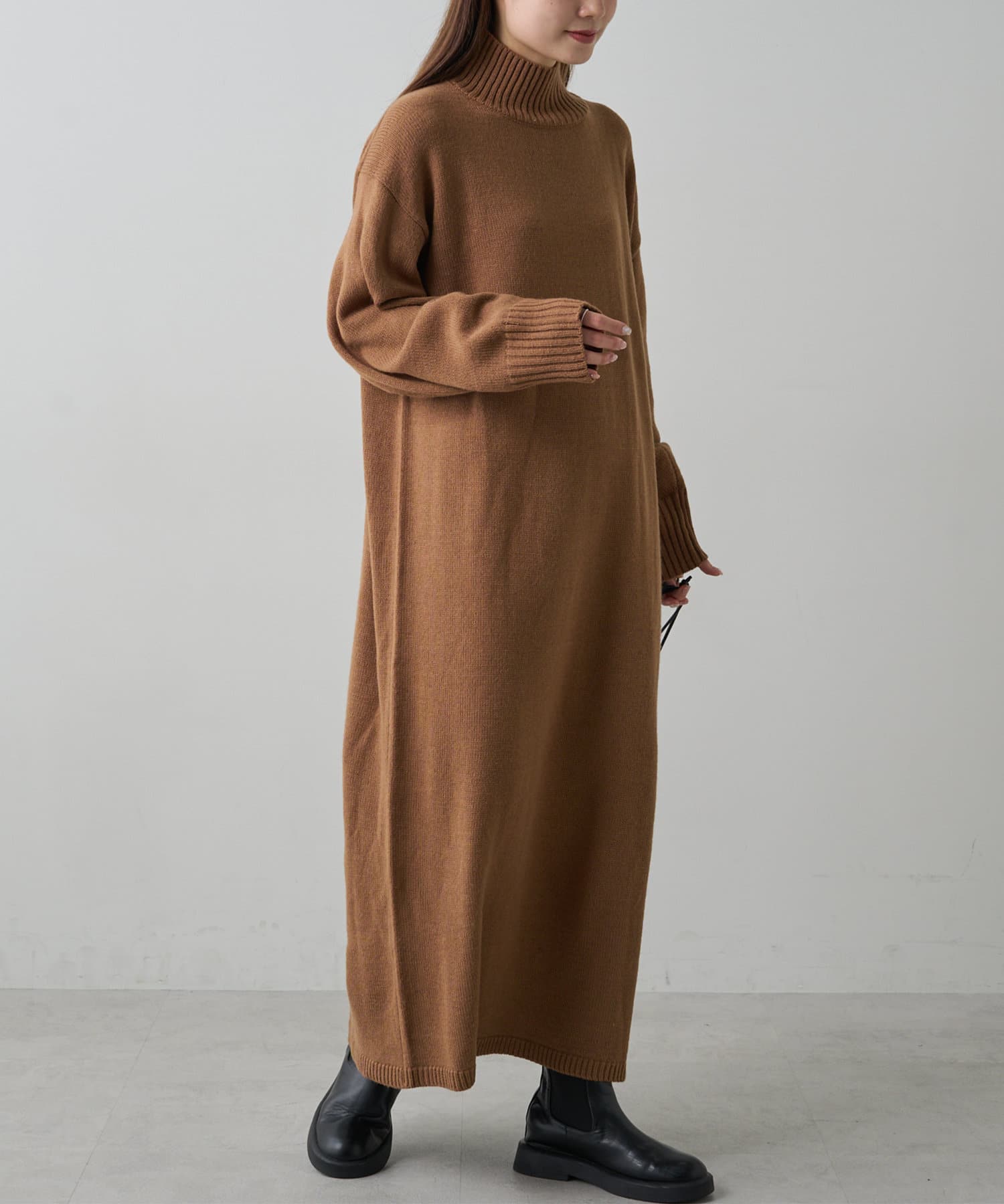 自宅で手洗い可能のウォッシャブルニットを使用したニットワンピース。