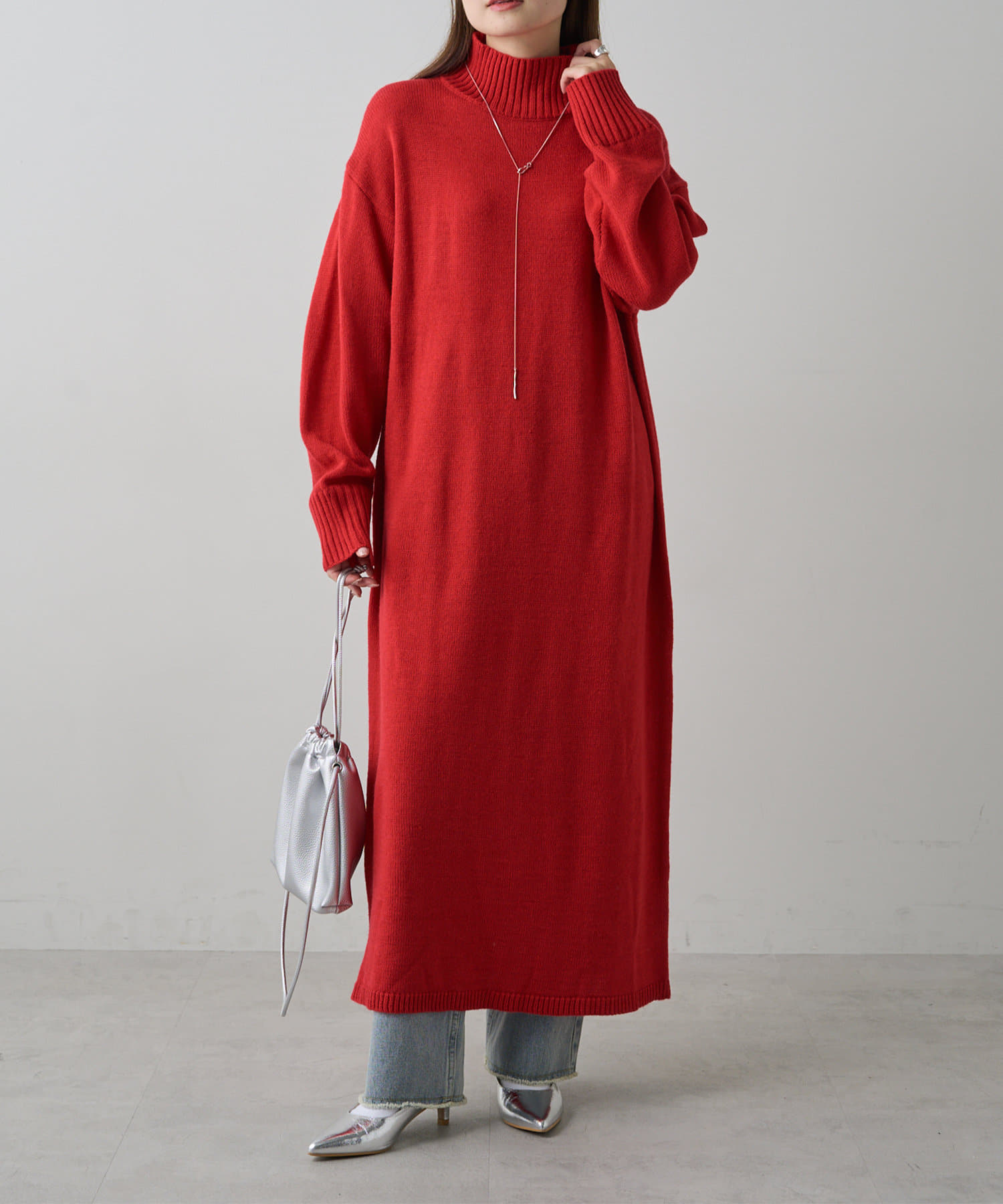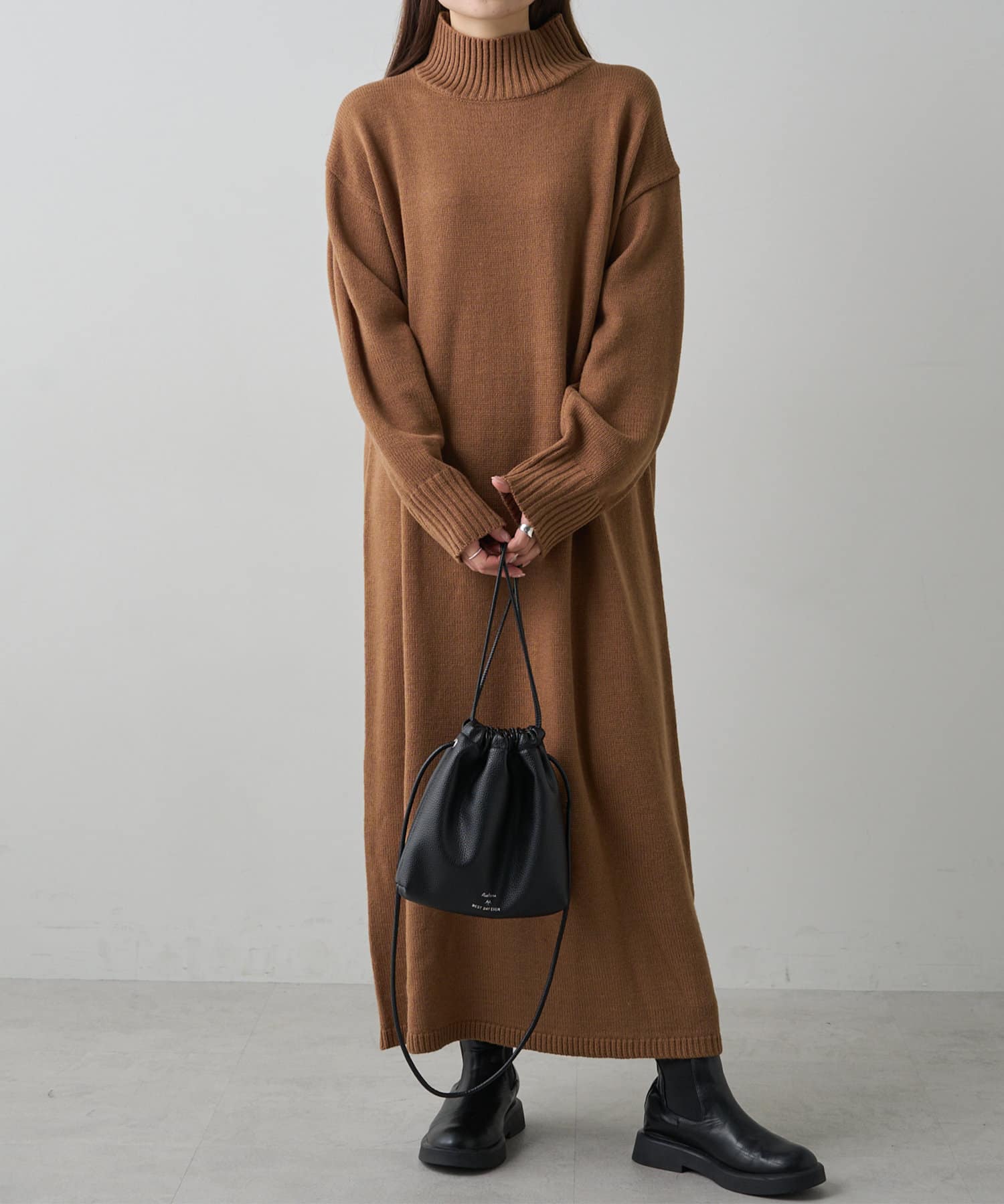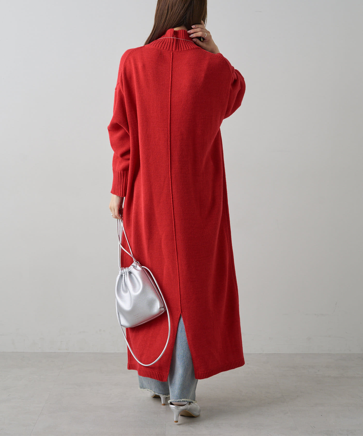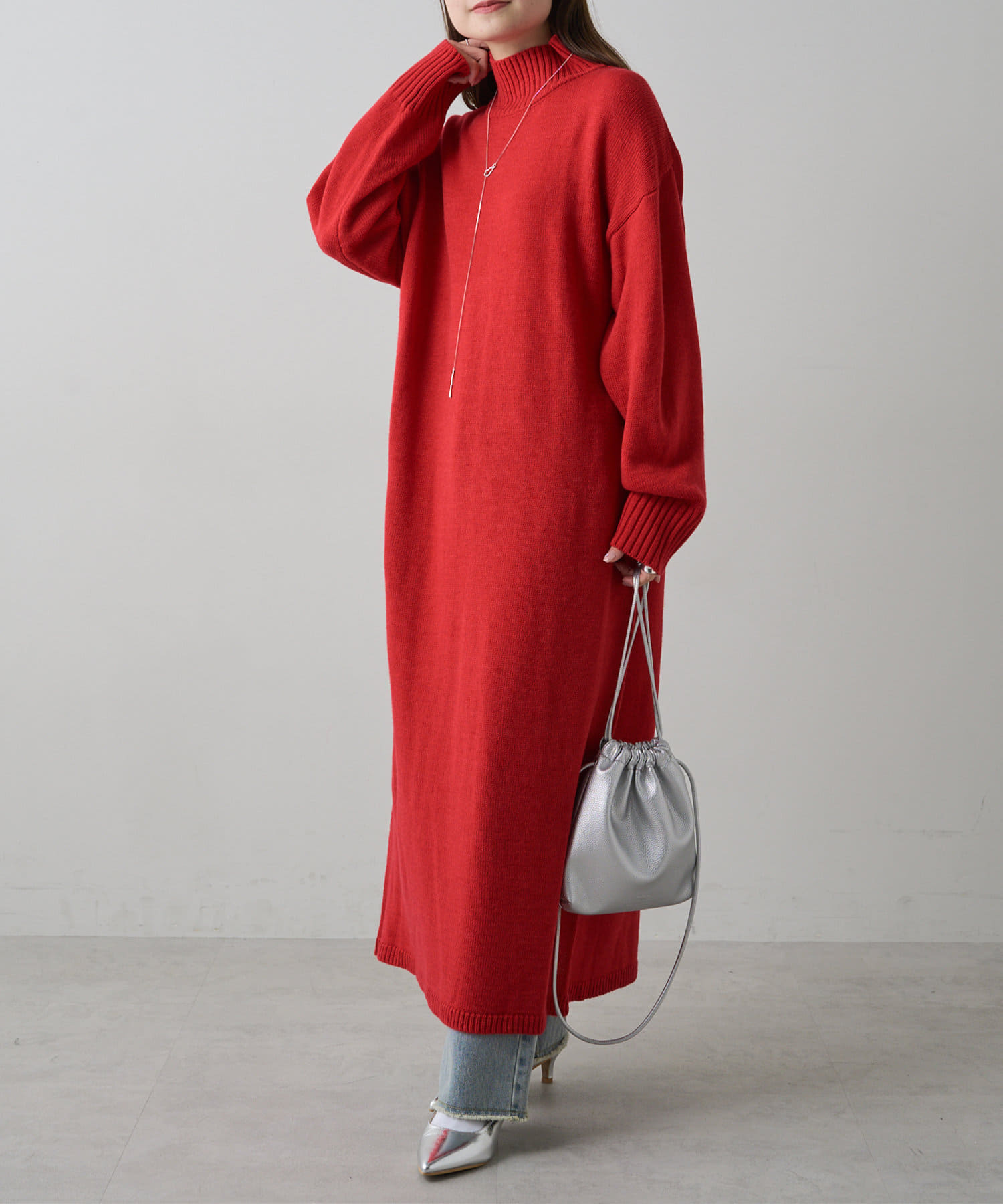 自宅で手洗い可能のウォッシャブルニットを使用したニットワンピース。