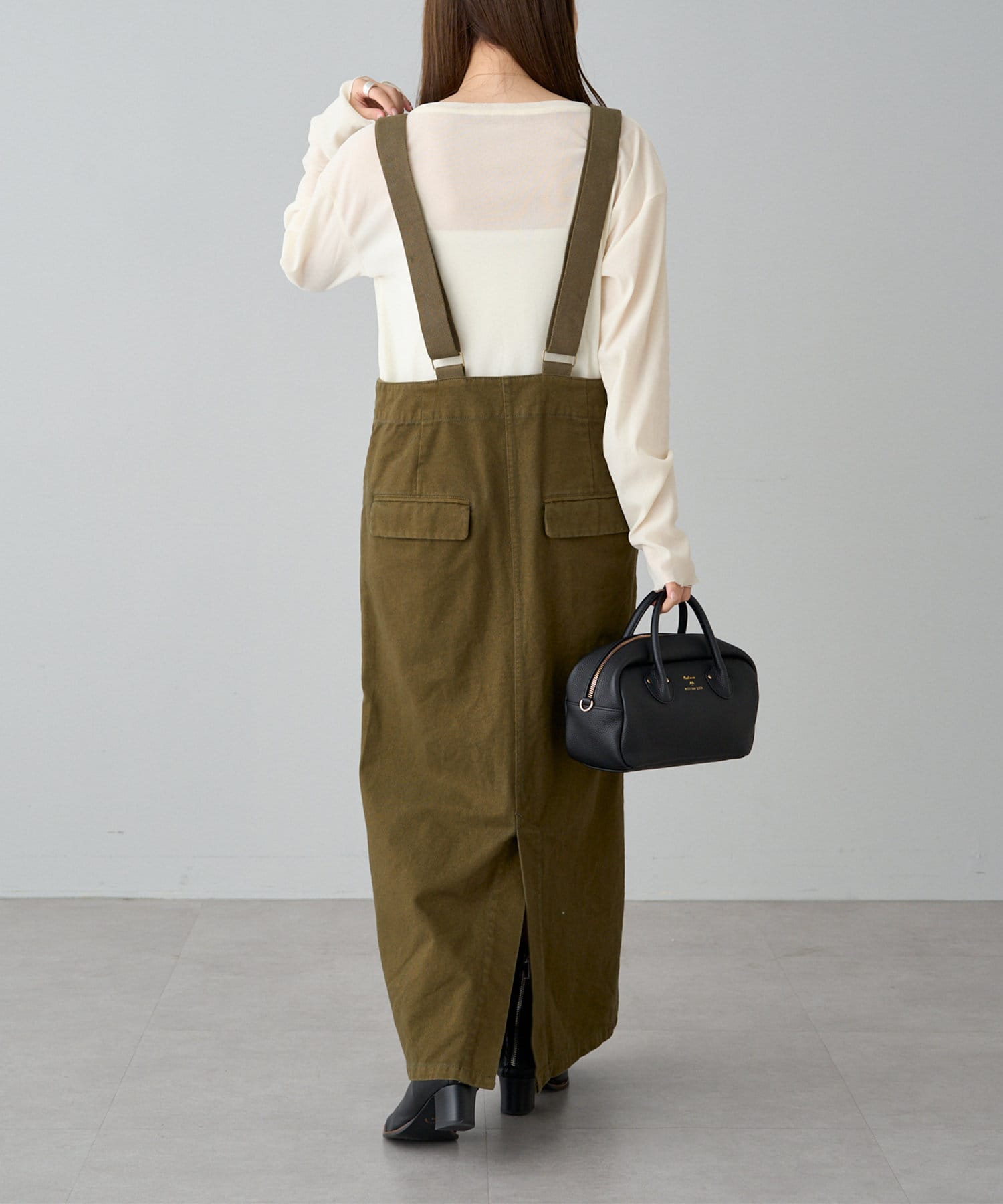 着用感:ウエストにゆとりがあるのでインナーを選ばず合わせやすいです。長さもアジャスターで調節できるので安心して着用いただけます。