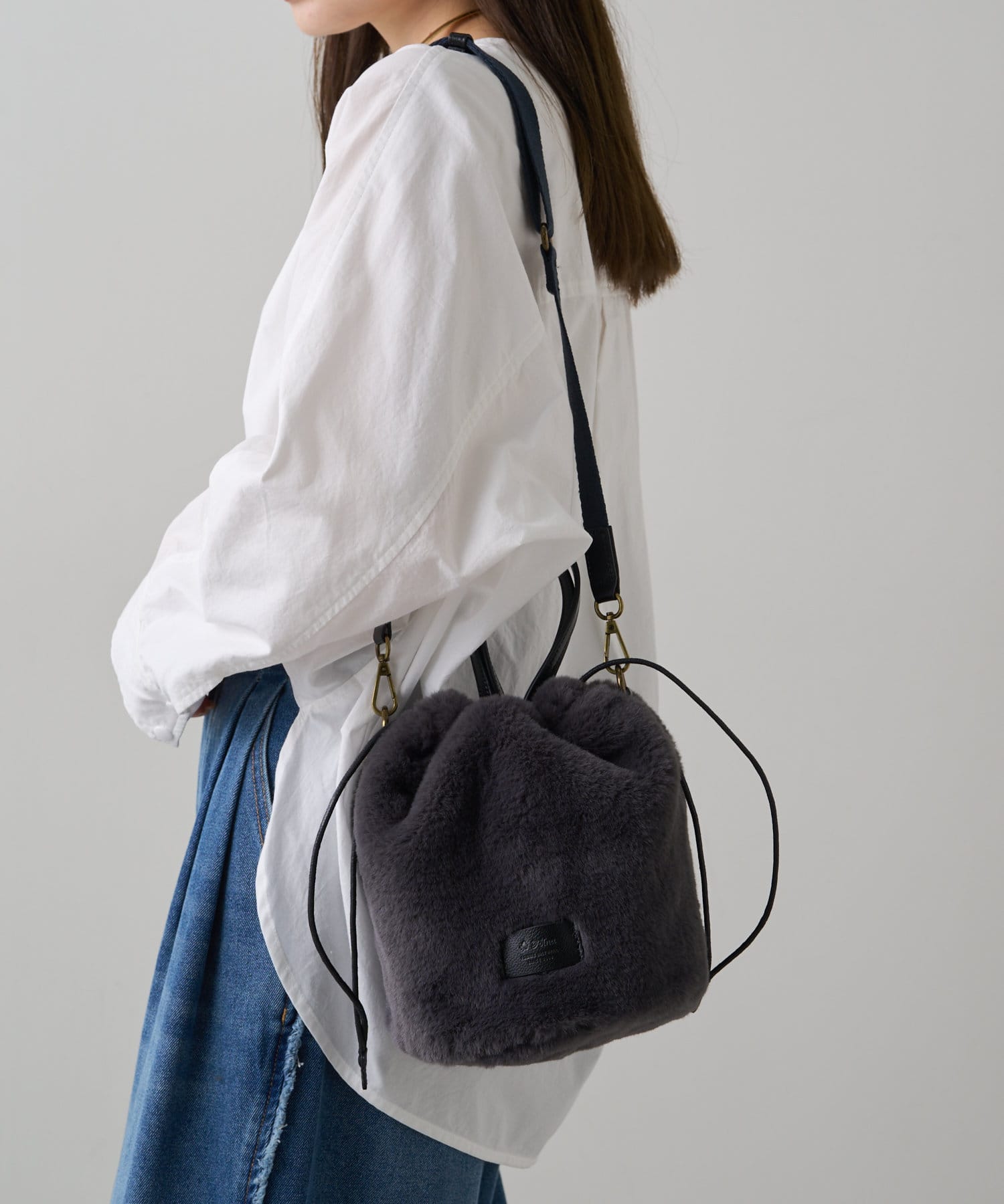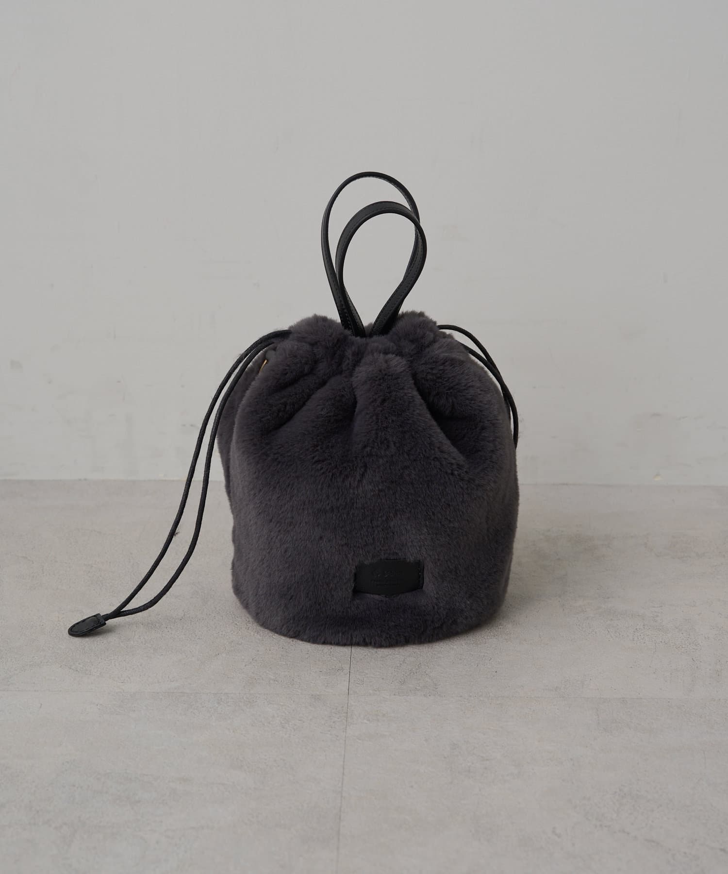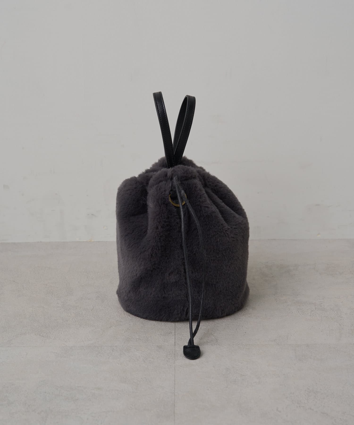 コーディネートをシーズンライクに導く巾着のデザインのファーバッグ。