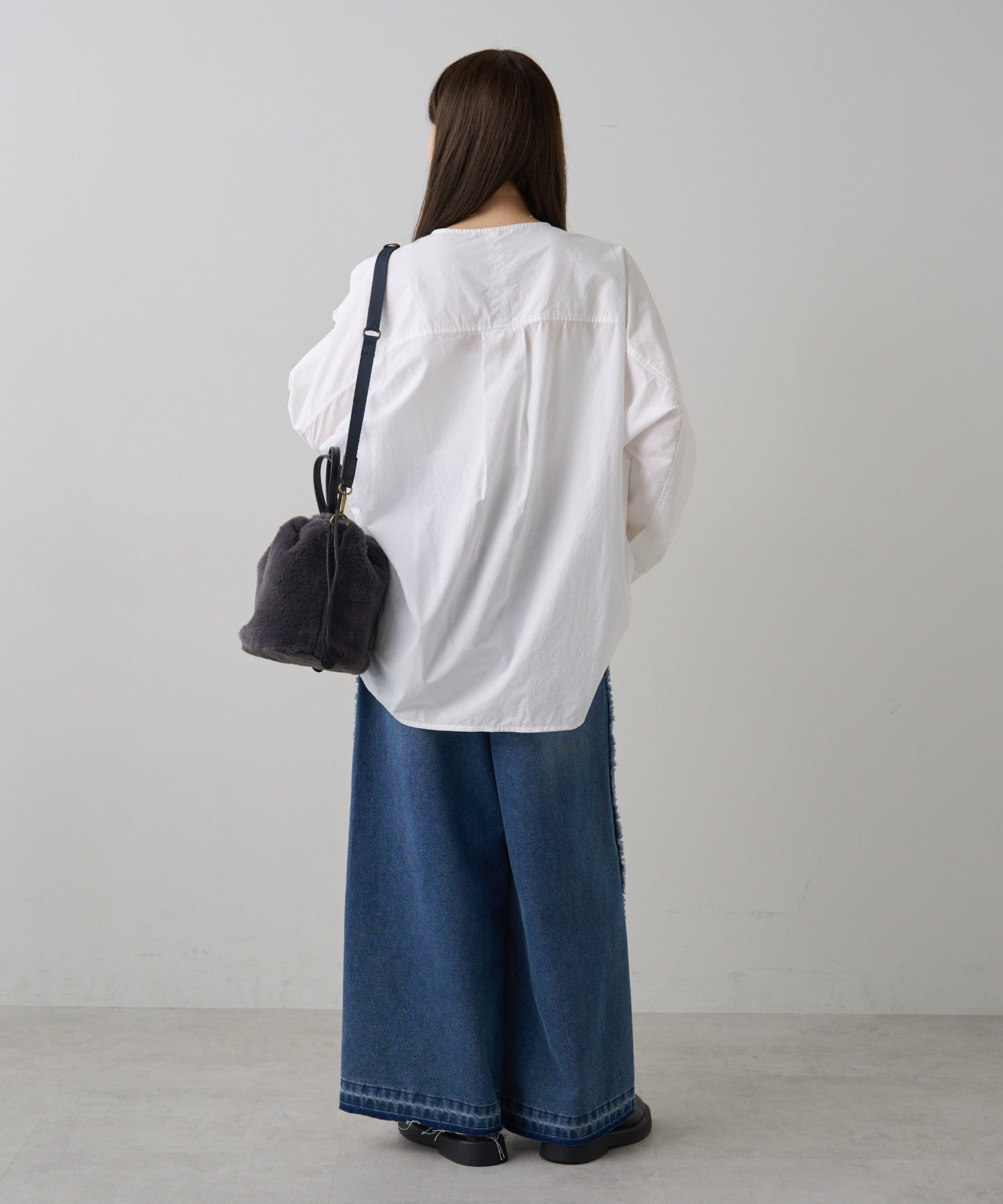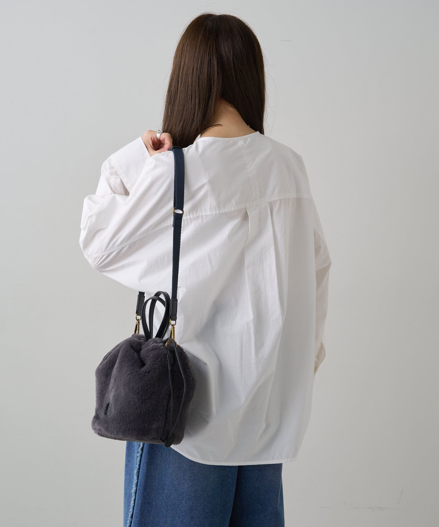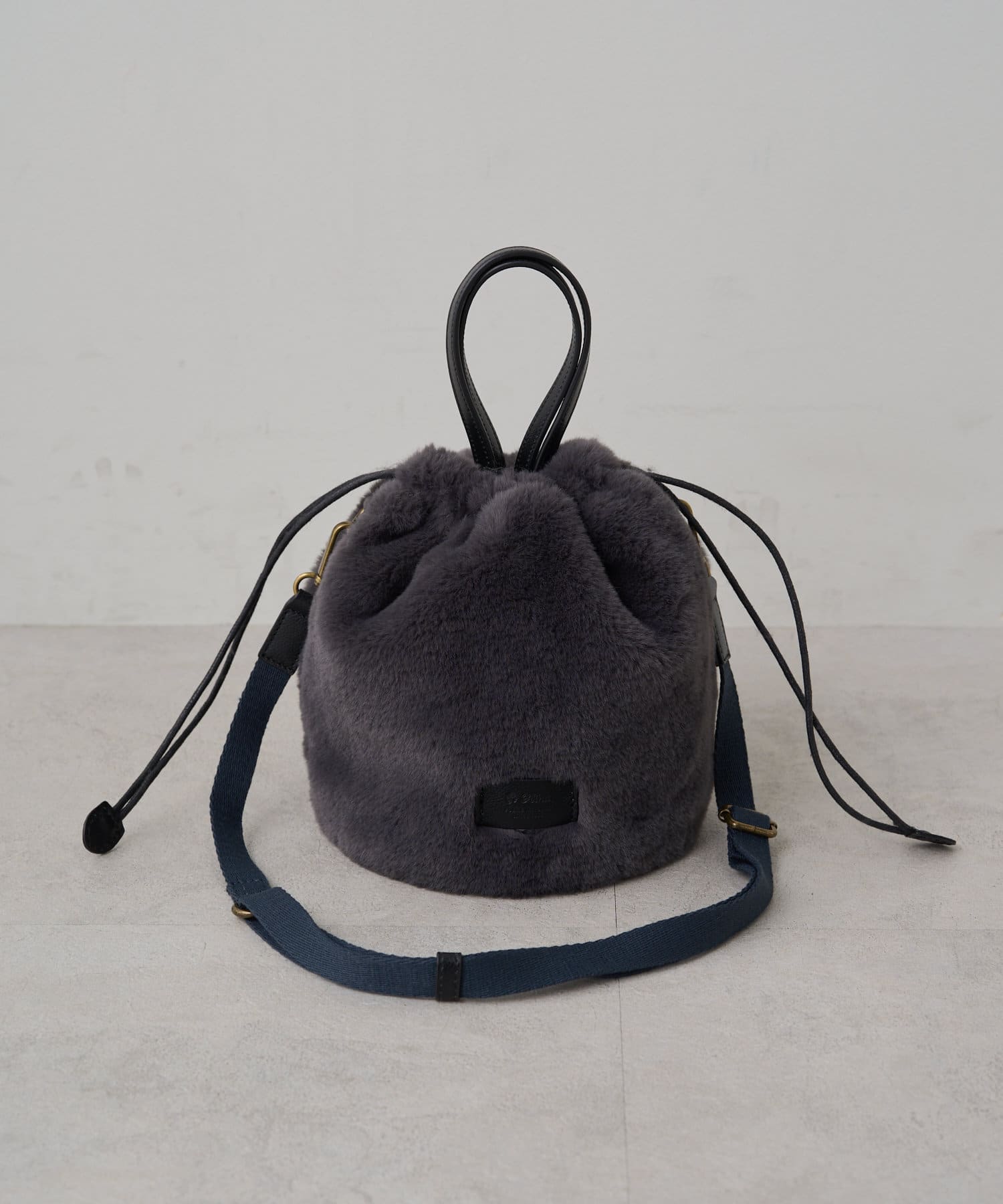 コーディネートをシーズンライクに導く巾着のデザインのファーバッグ。