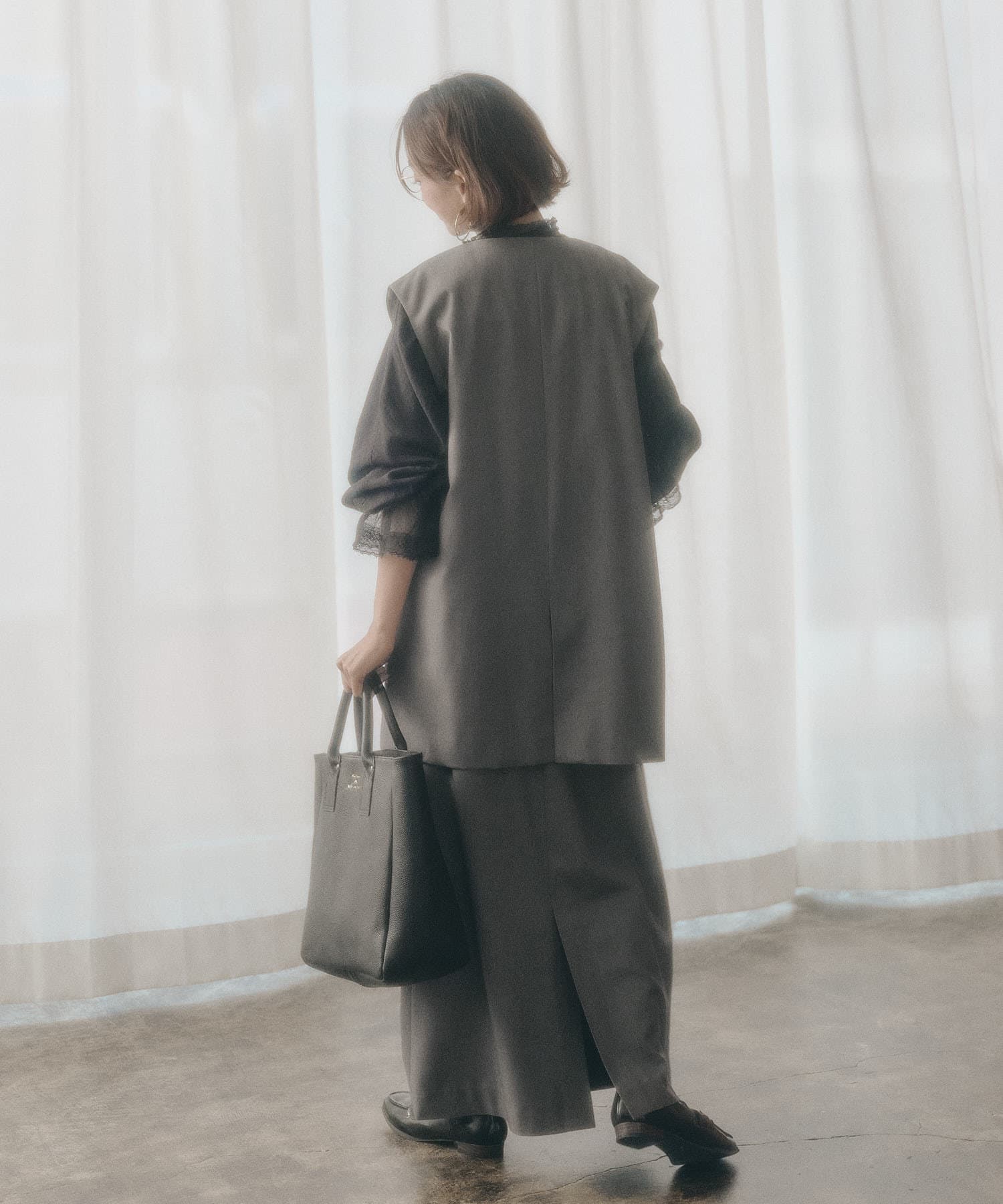 同素材のジャケット(No.0251070010)やジレ(No.0251070020)と合わせたセットアップスタイルで