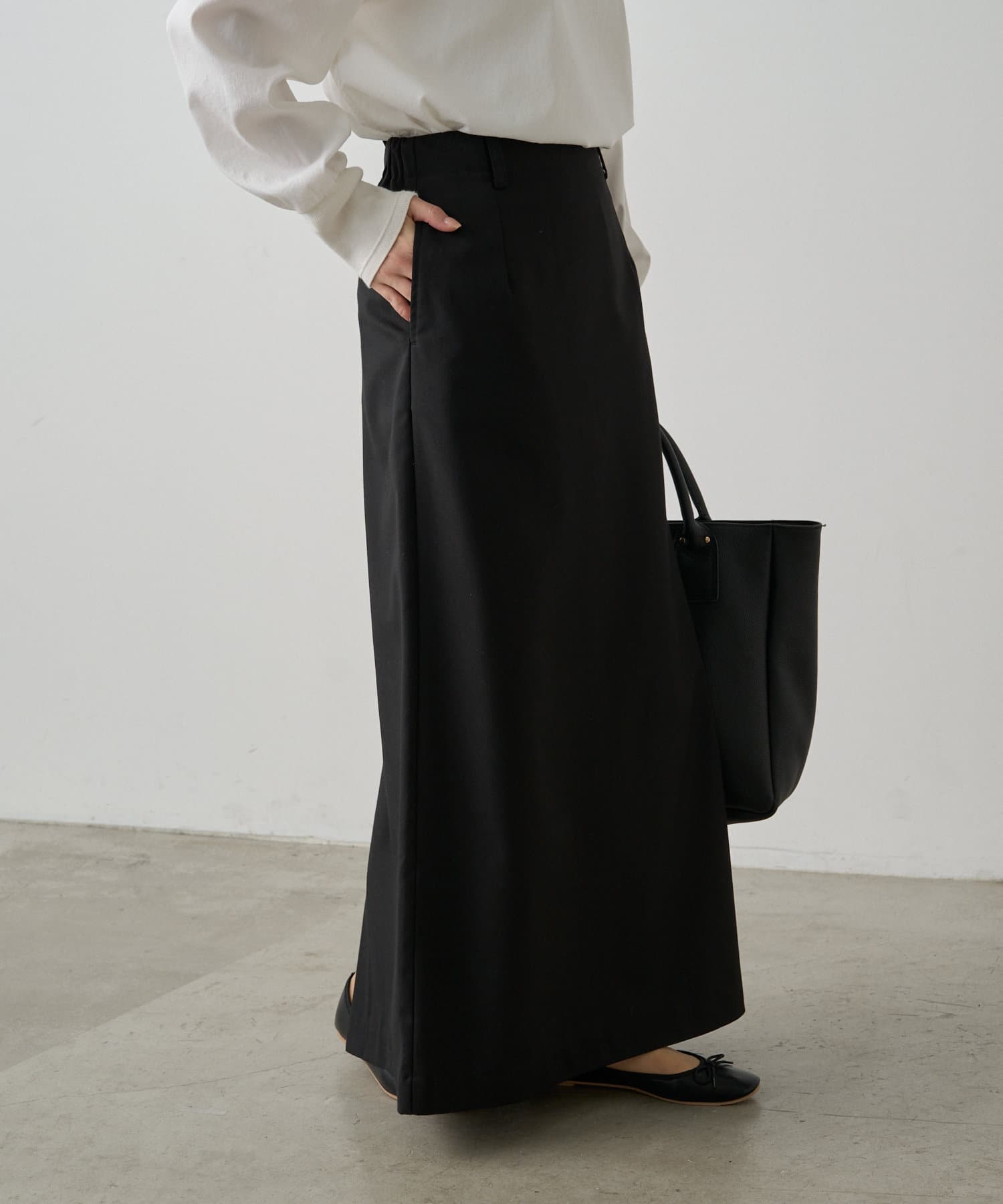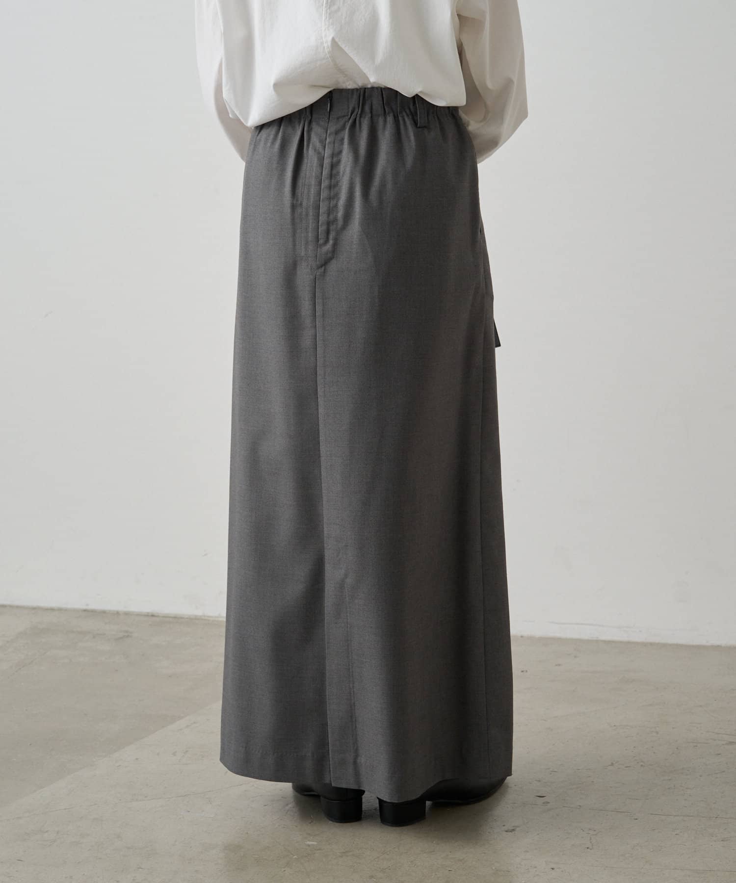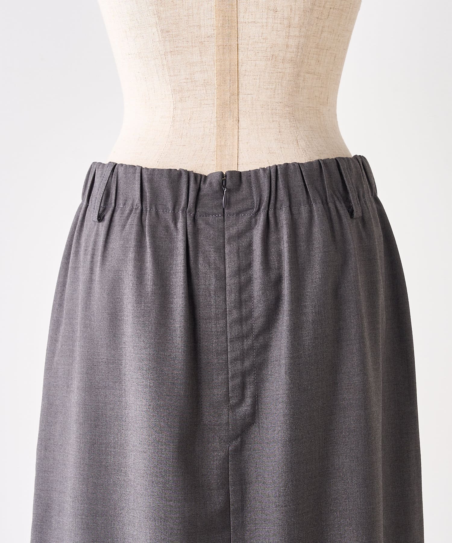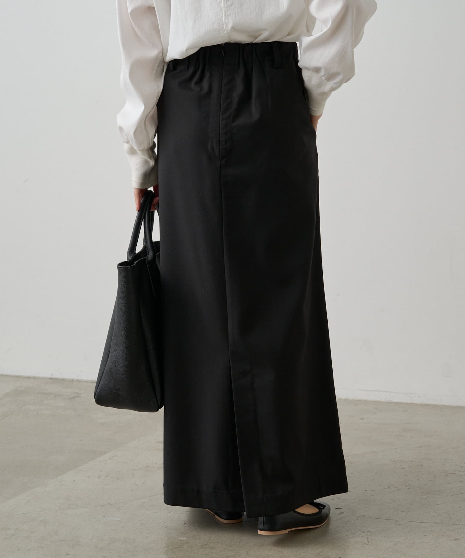 ウエストは後ろゴム仕様で、トップスのIN/OUTスタイルも決まりやすく