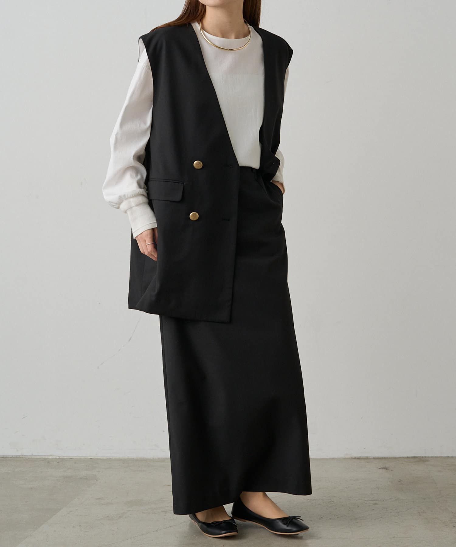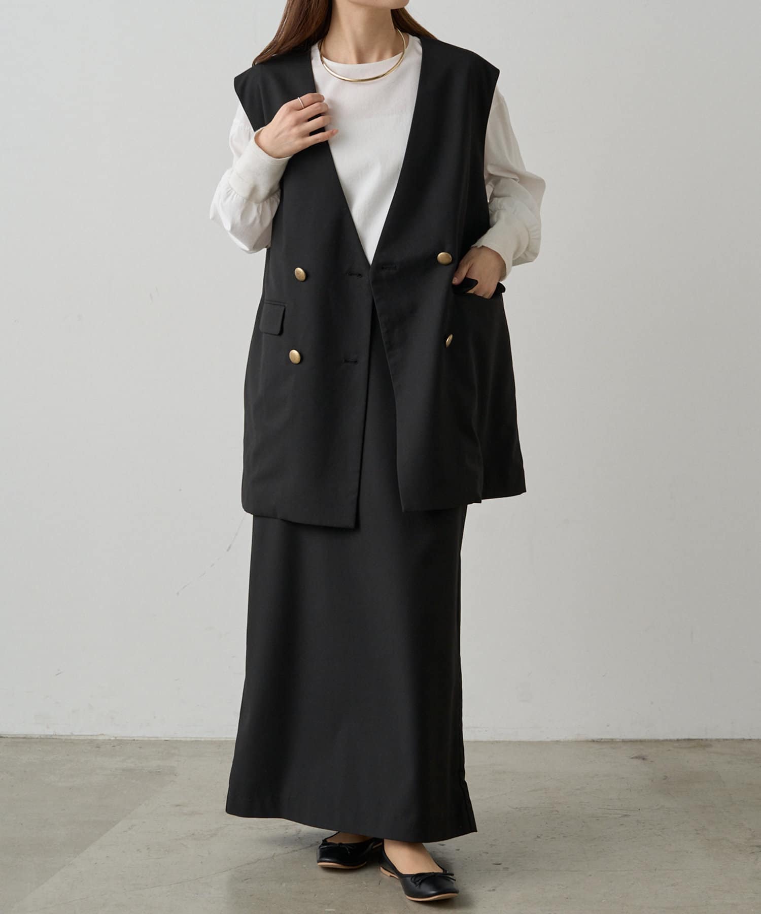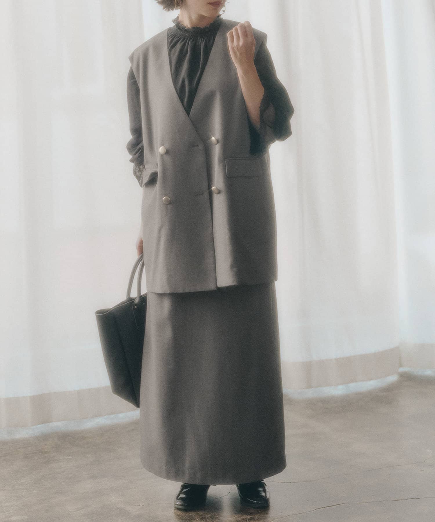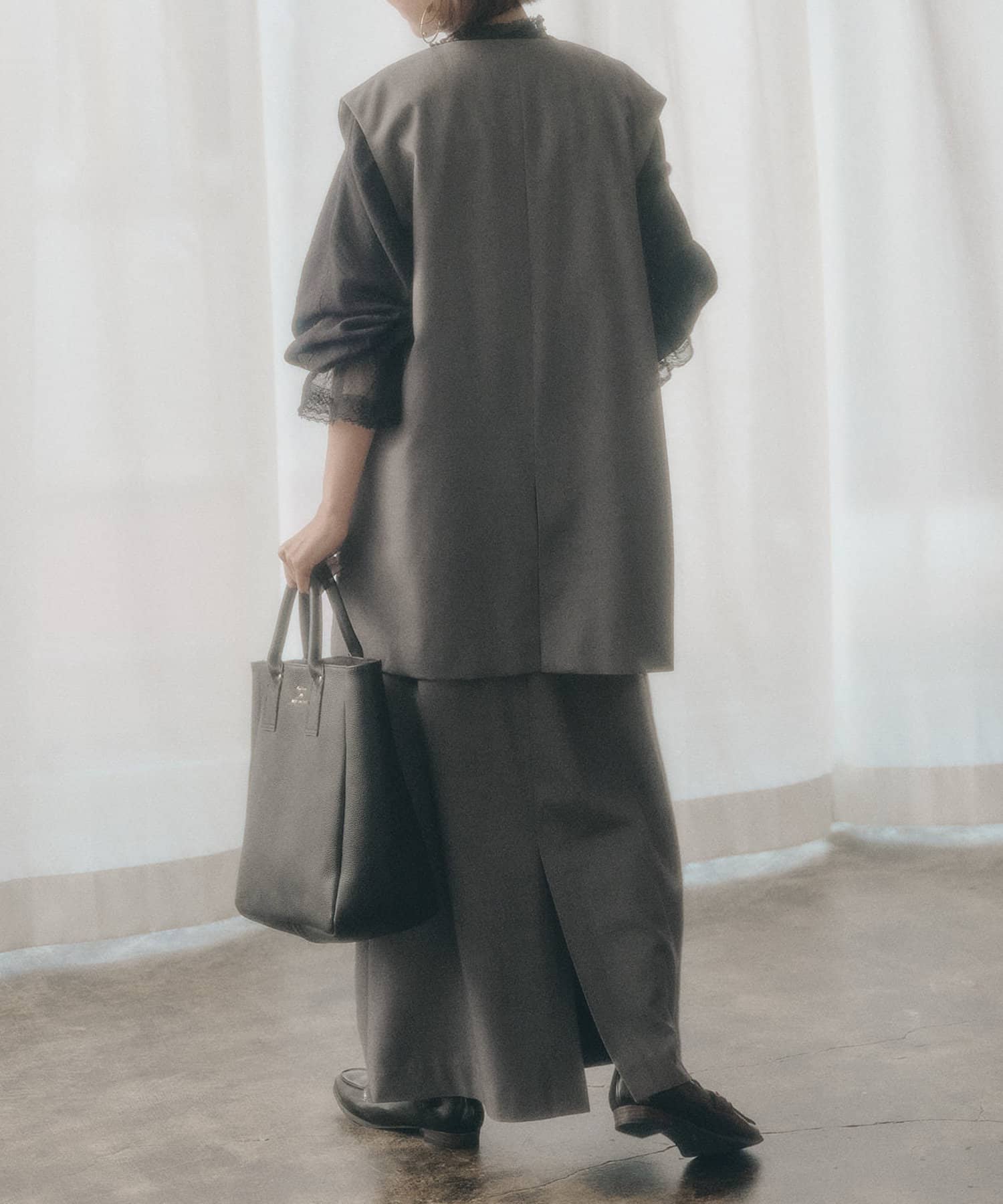 同素材のジャケット(No.0251070010)やジレ(No.0251070020)と合わせたセットアップスタイルで