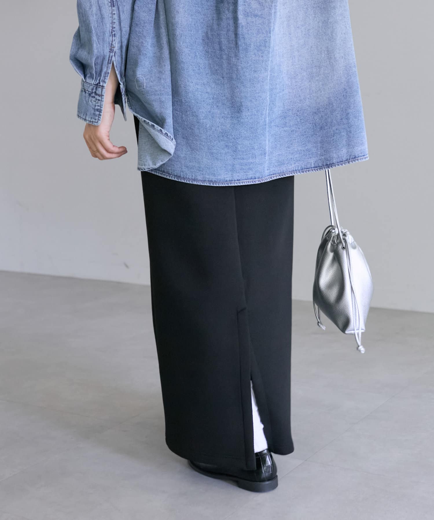 生地の伸縮性とバックスリットにより、ストレスフリーな穿き心地。