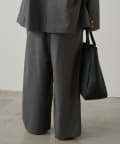 脚のラインを拾いにくいワイドシルエットと落ち感のある上品な光沢感な生地感で