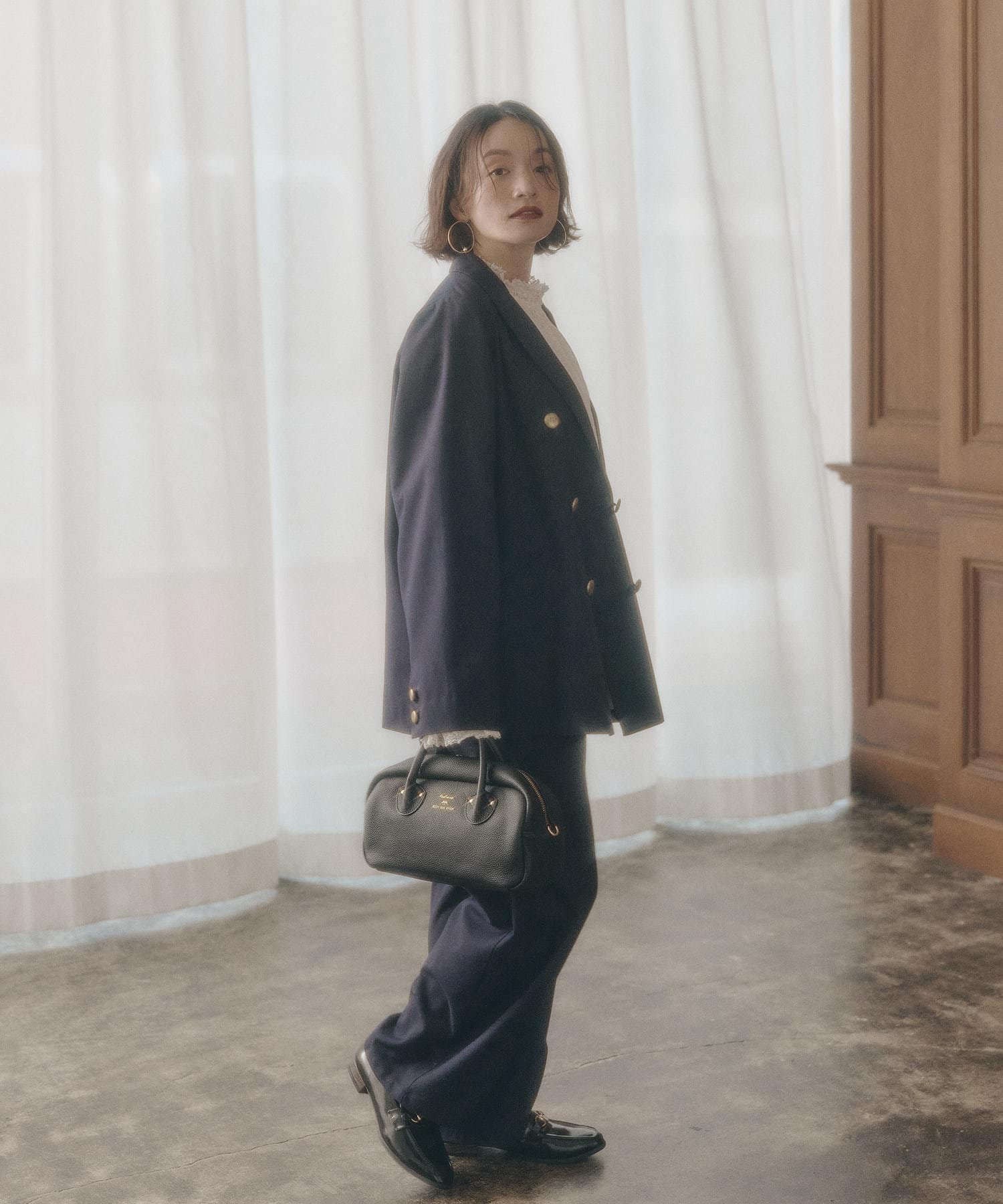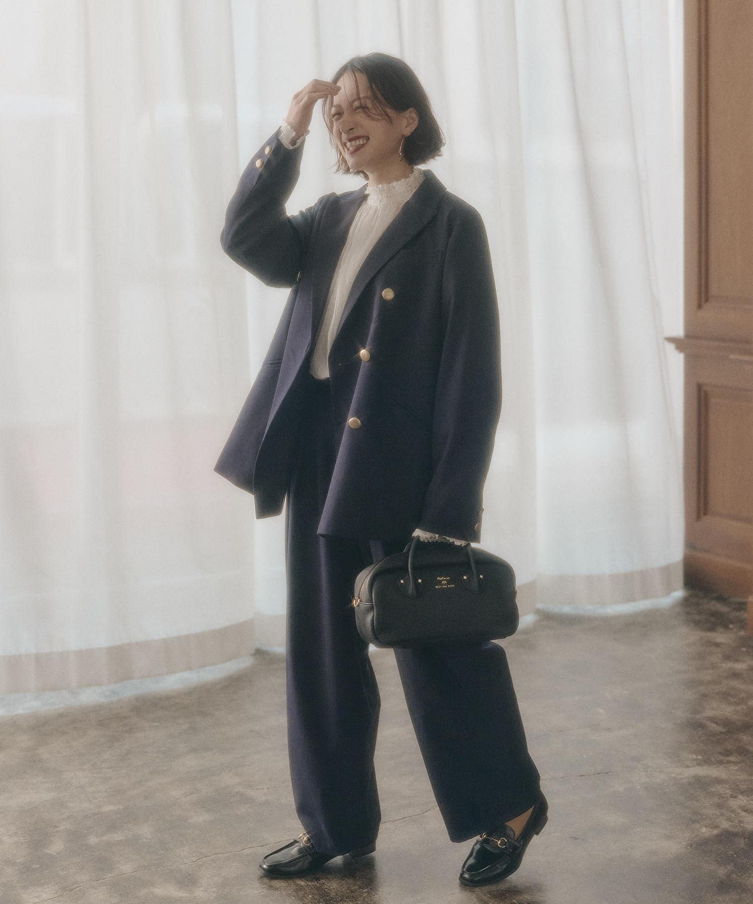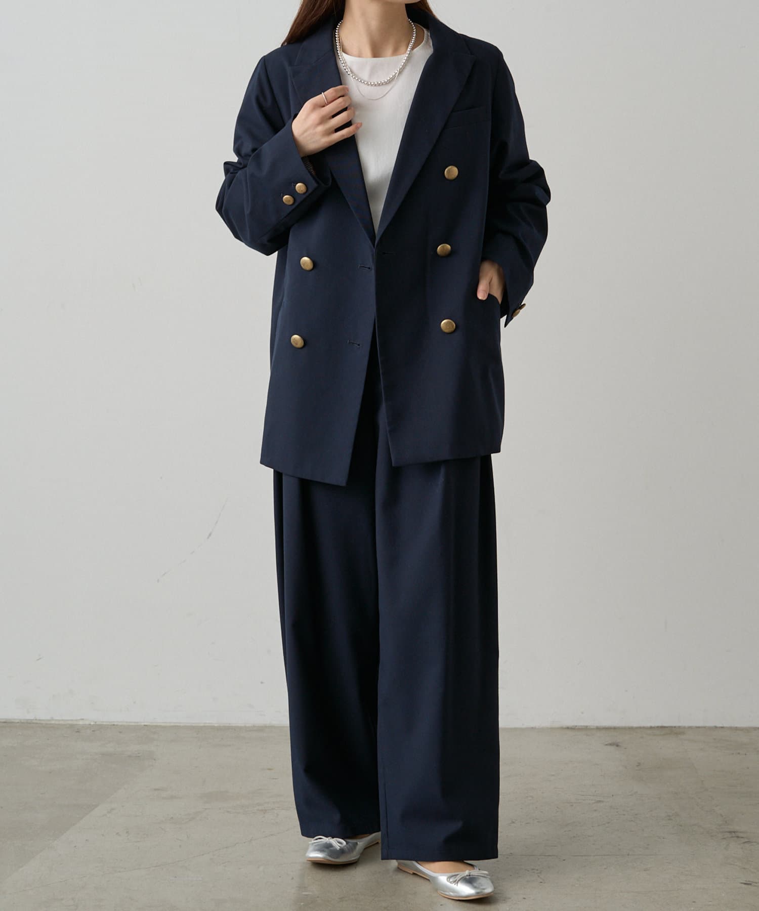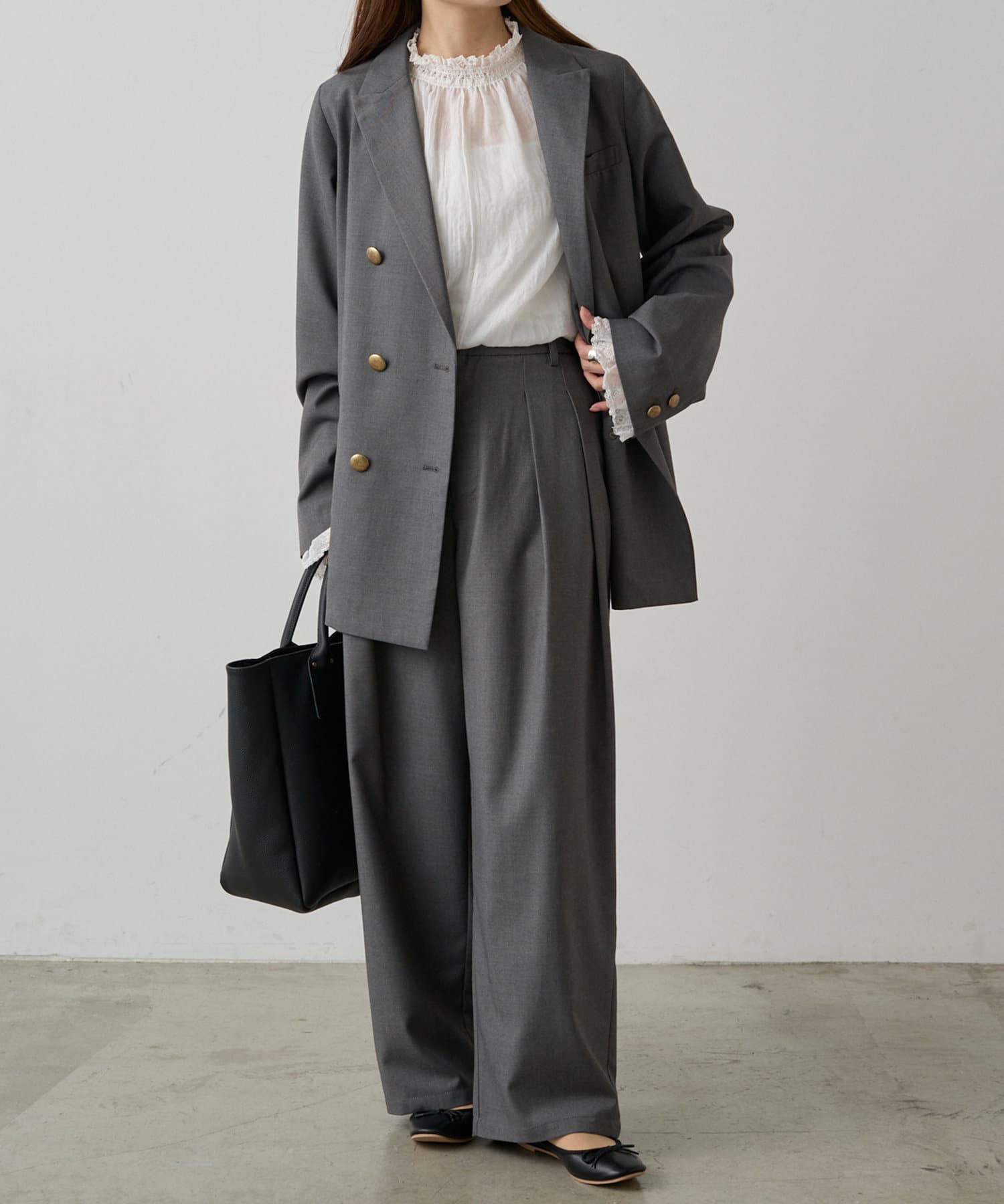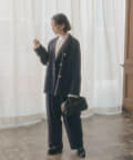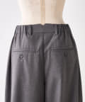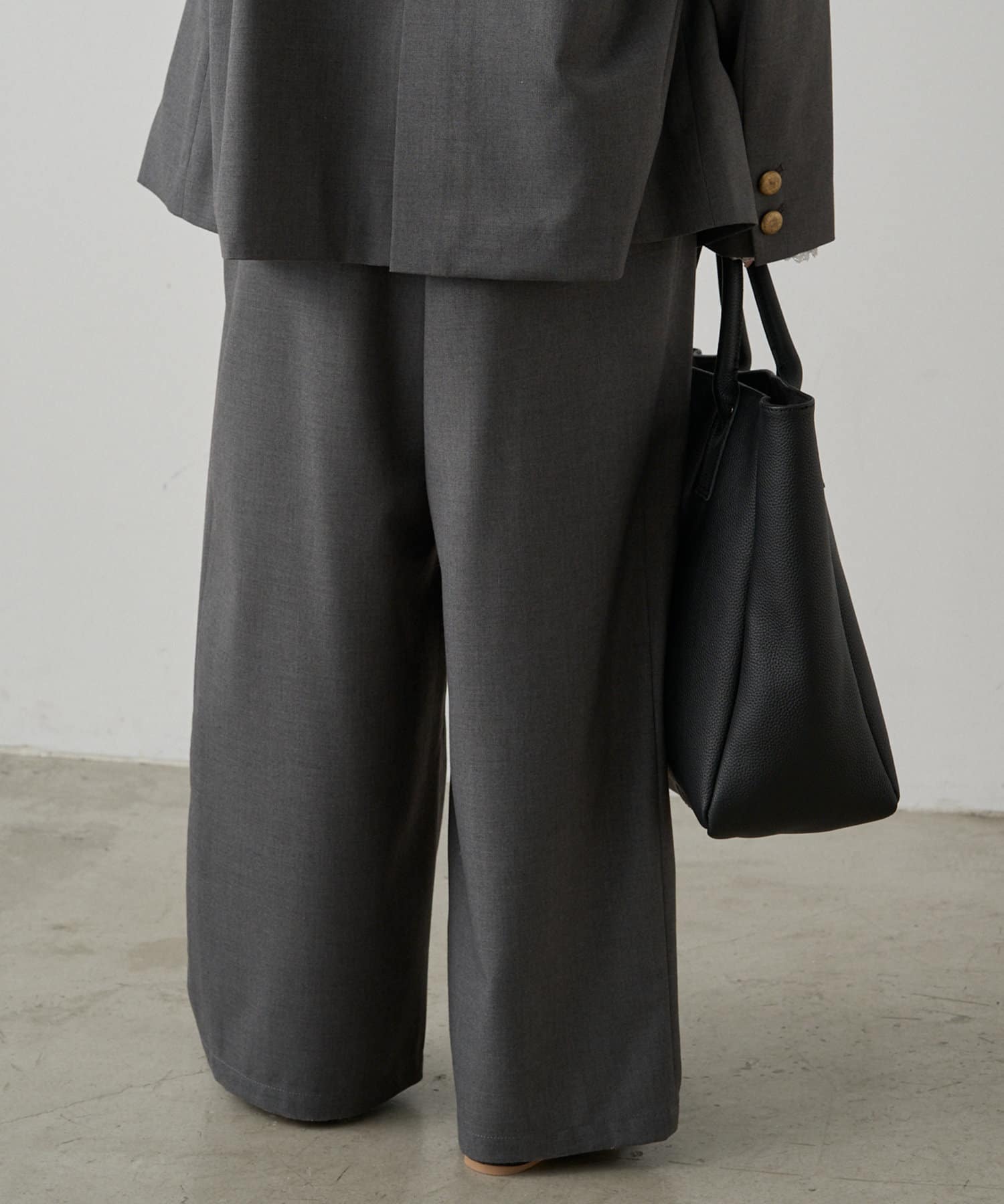 フロントタックのデザインとワイドシルエットでマニッシュな印象に仕上げた一着。