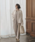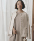 デコルテが覗きそうで覗かない絶妙な首の開きで女性らしい品の良さを演出。