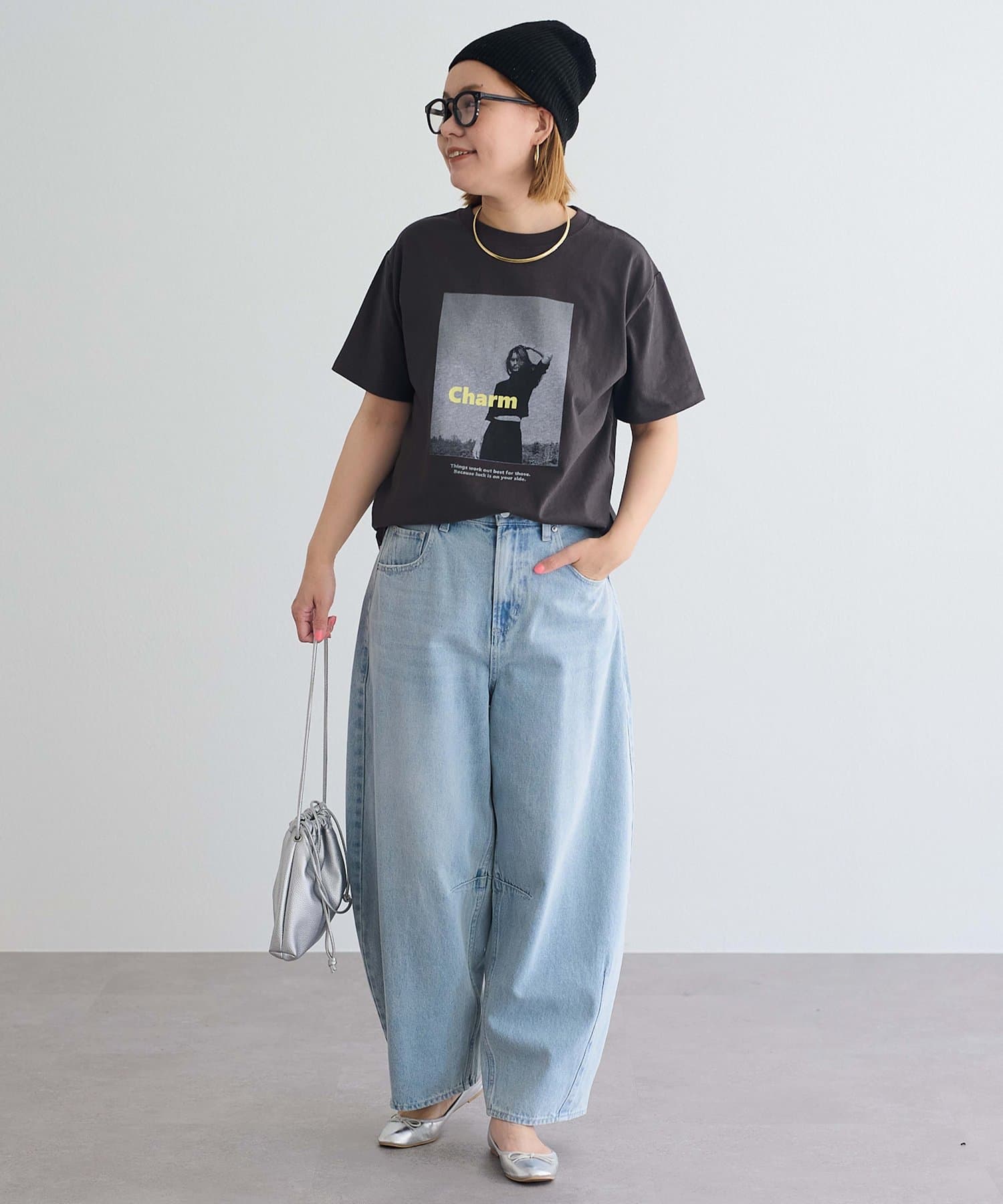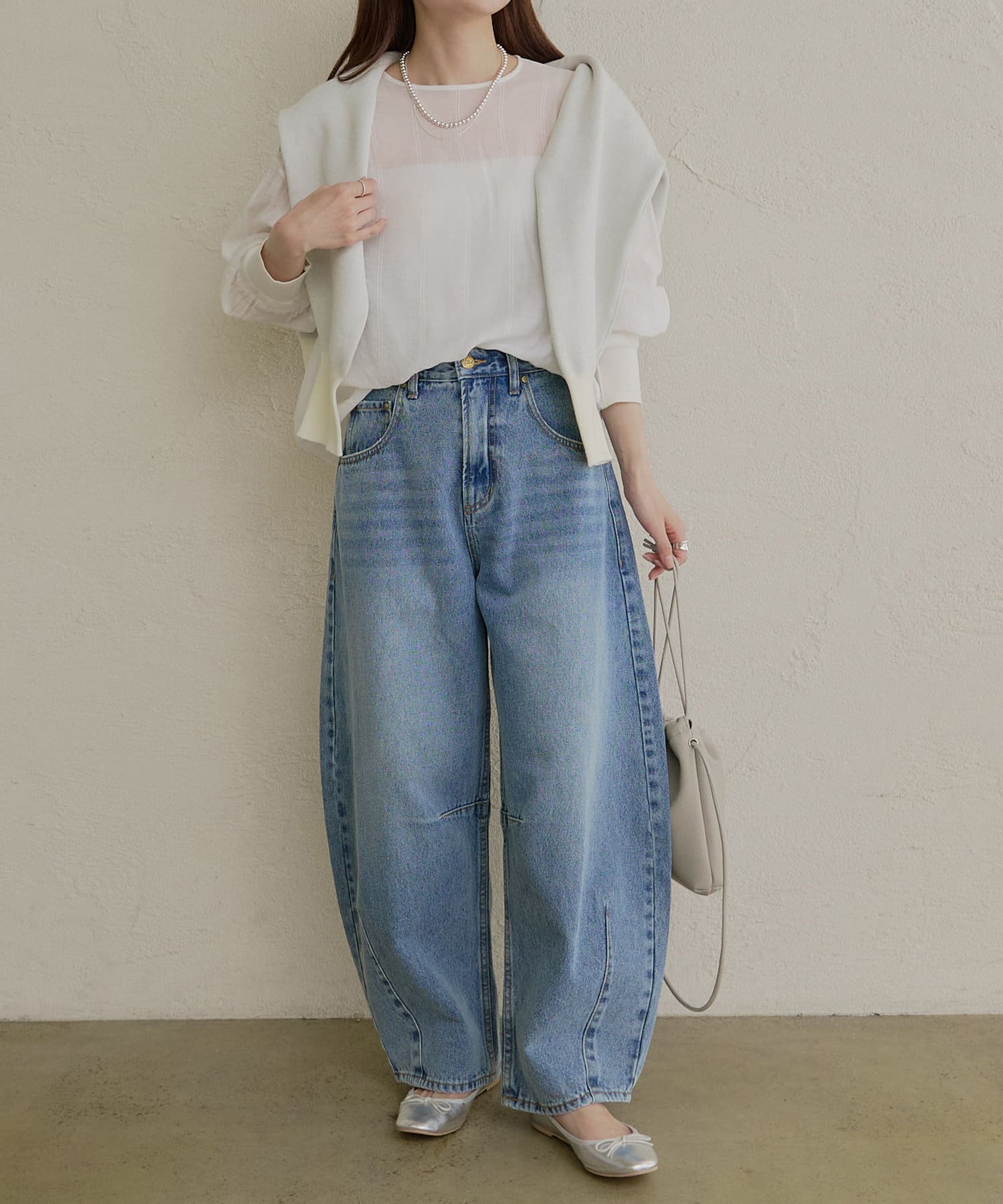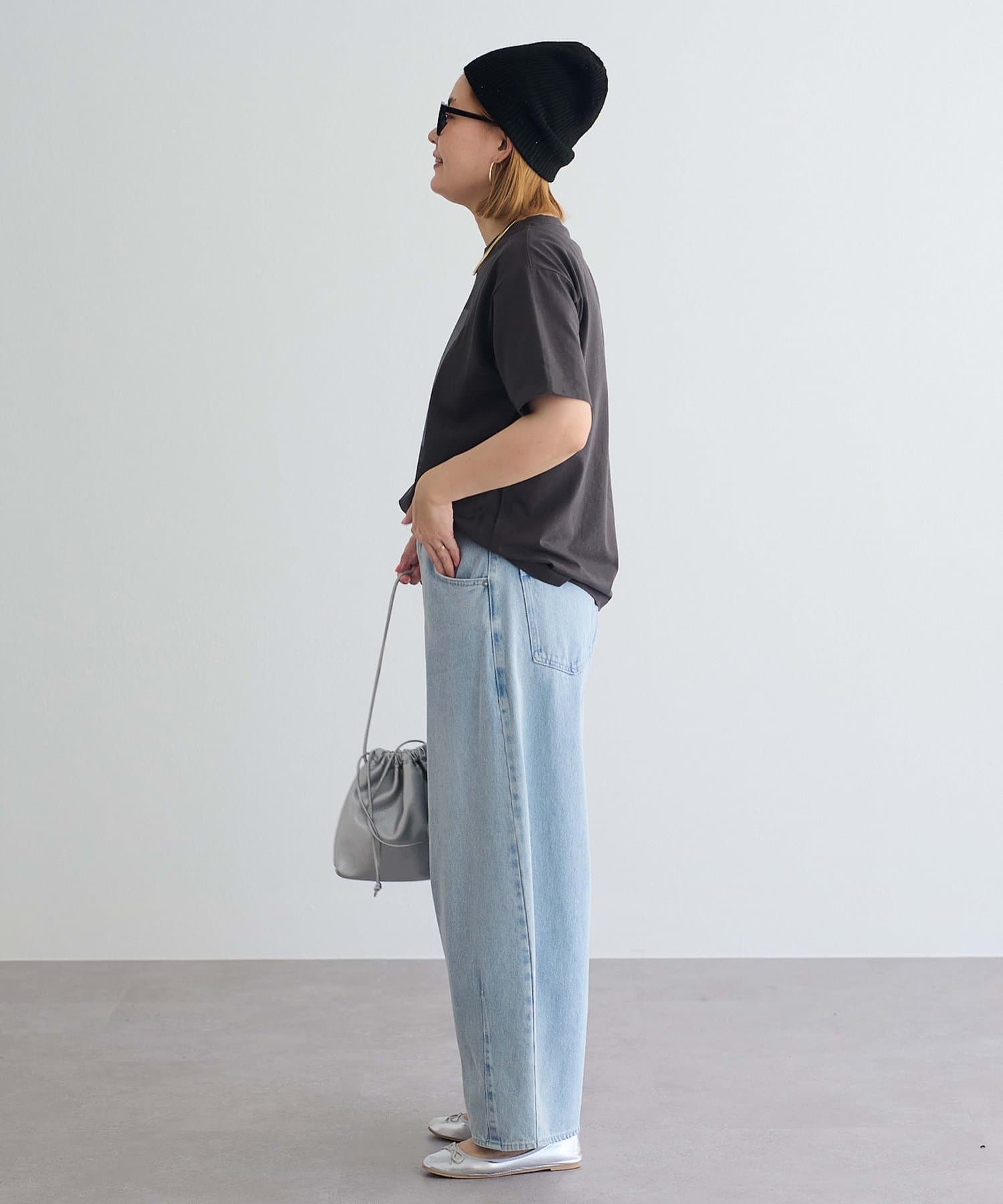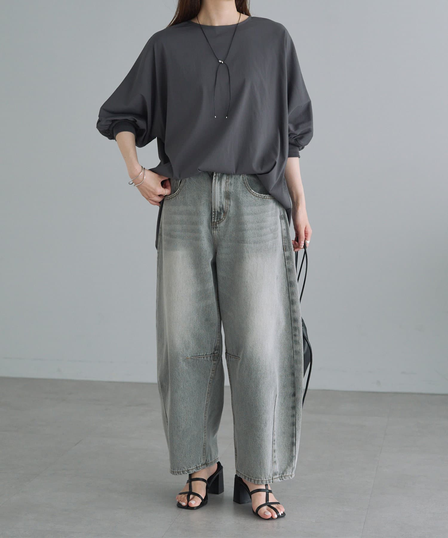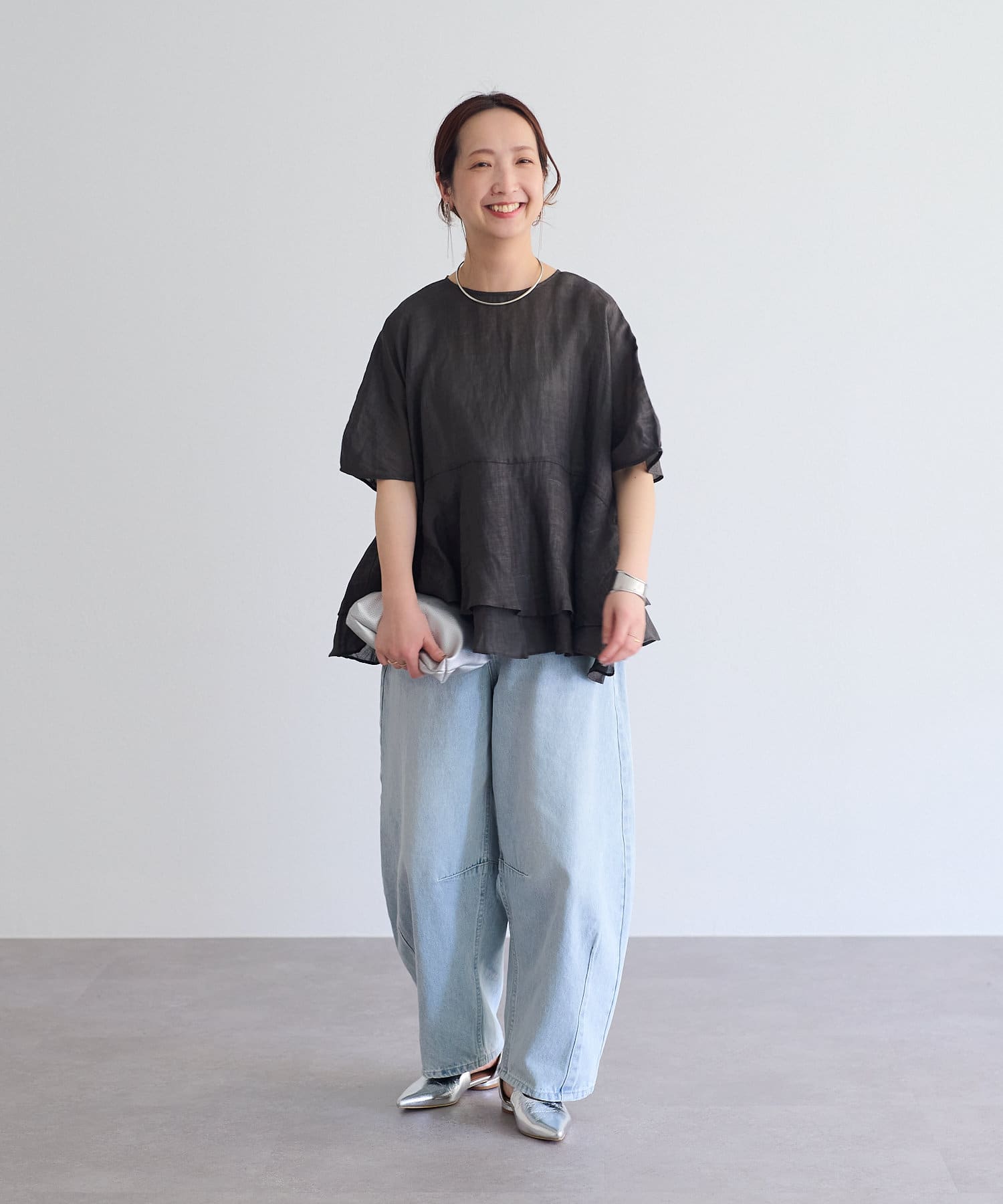 ややボリューム感のあるシルエットを活かして